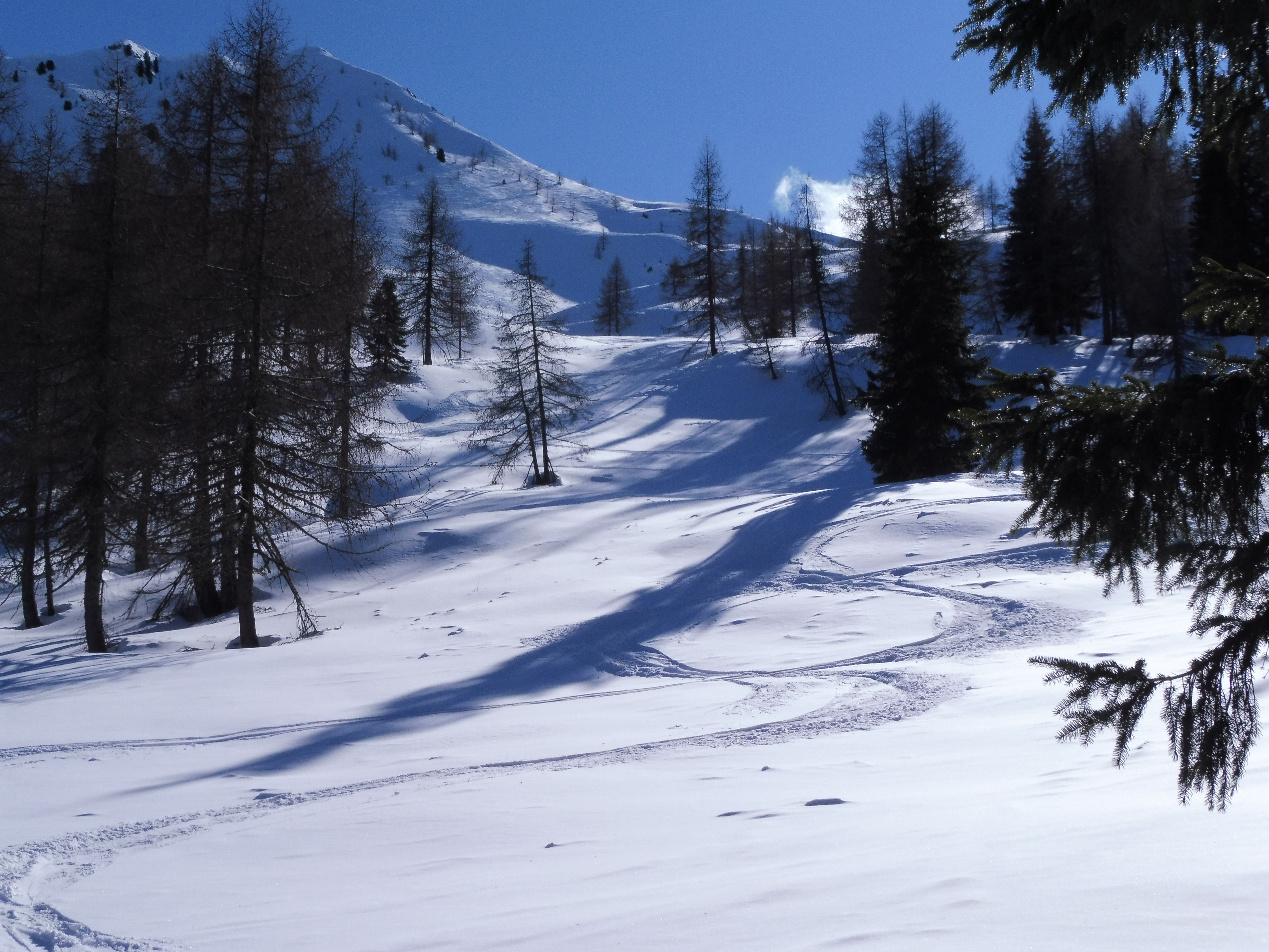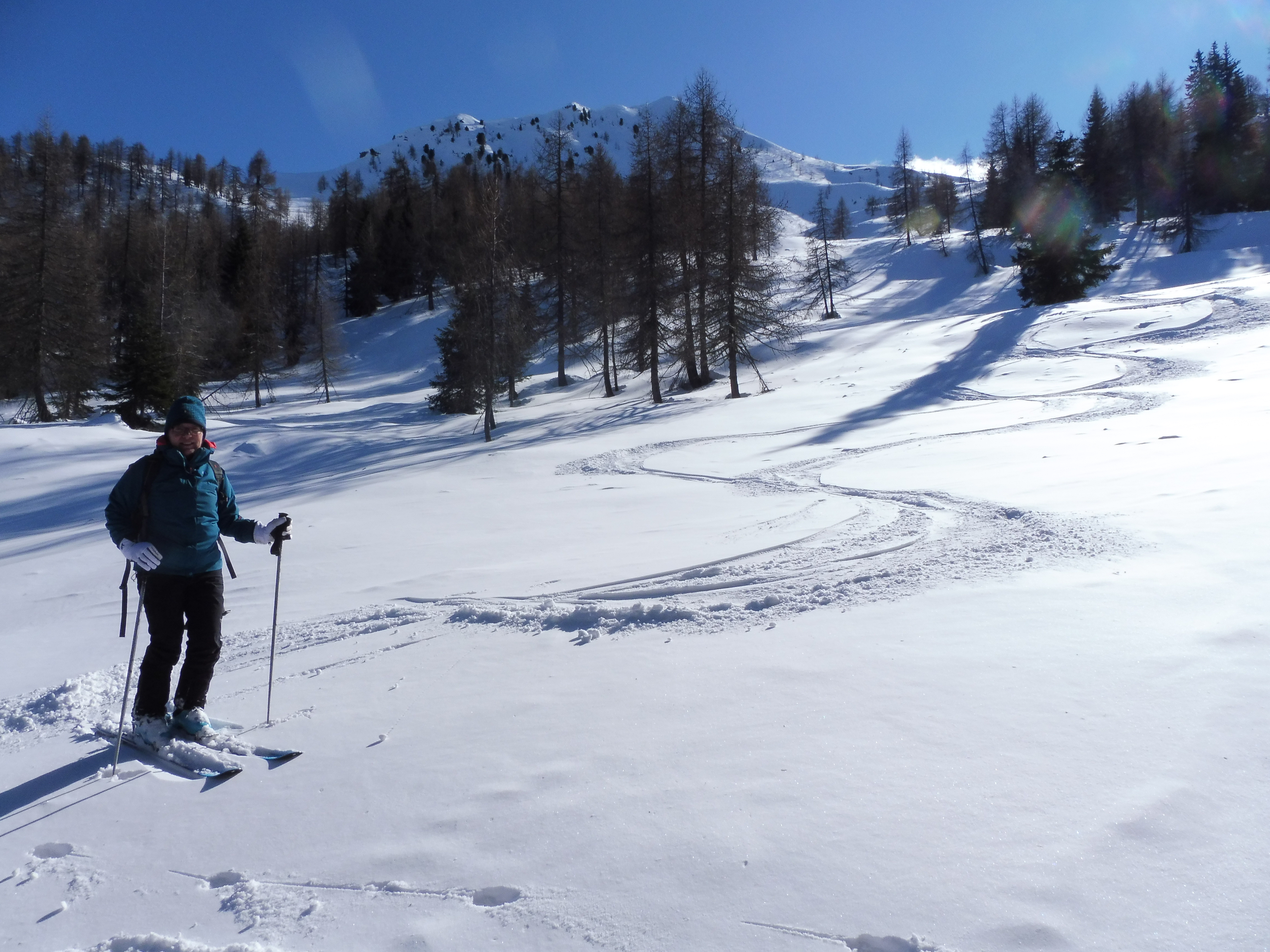 Tourenverhältnisse: Pulver....oben extrem abgeblasen und hart...deshalb Abbruch ...eisige Aufstiegspur