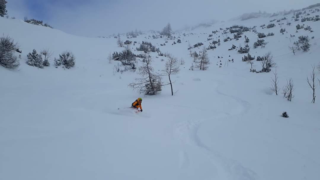 Tourenverhältnisse: toller Pulverschnee, unten 10cm, oben 20-30cm