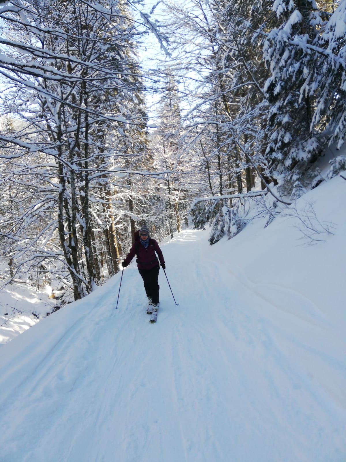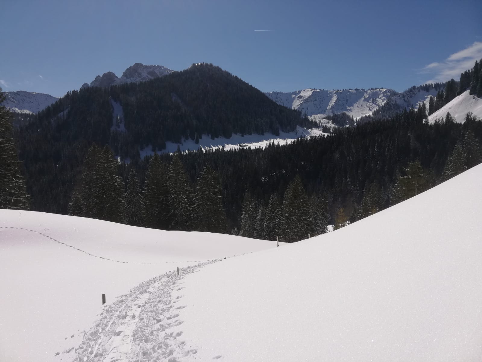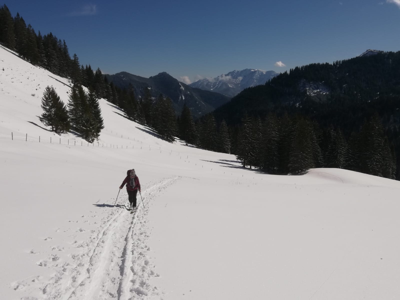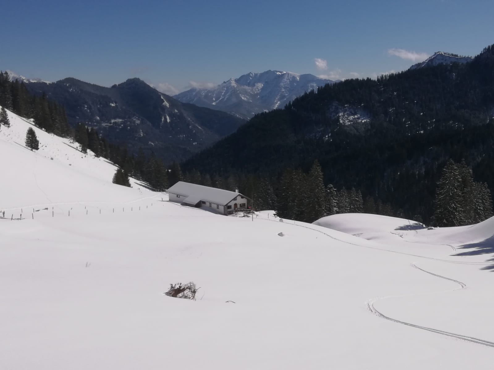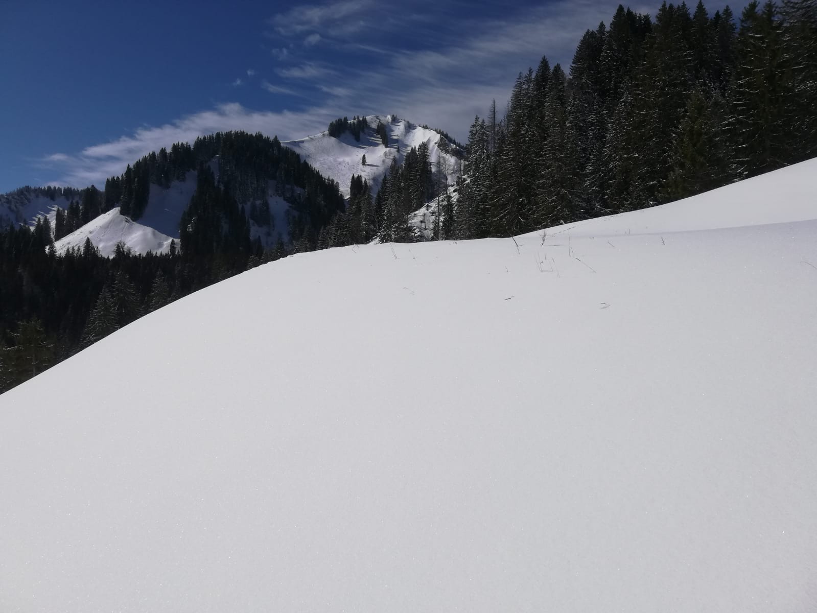 Tourenverhältnisse: Wieder kurz Winter. Morgens alles weiß, Schnee ab und nachmittags au h noch bis Parkplatz. Im Schatten bis in den Nachmittag Pulverschnee, auf den Südhängen des Wallberg allerdings schon wieder schwerer Schnee. Oben erwa 20-30cm Neuschnee, unten etwa 10cm. Das Tegernseer Tal ergrünte im Lauf des Tages wieder.