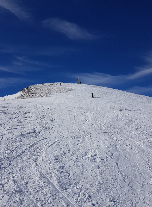 Tourenverhältnisse: Relativ wenig Neuschnee von den letzten Tagen, dafür ausreichend Altschnee. Nur die untersten Meter sind eine unangenehme Mischung aus Schnee/Eis/Wasser, das wird sich aber bald von selbst erledigen. Die eingefahrene Skipiste ist in der Mitte recht platt und gut abzufahren, auch direkt daneben hat es angenehmen, gut zu fahrenden Pulverschnee. Im Wald findet man sogar noch den einen oder anderen unzerfahrenen Pulverschnee.