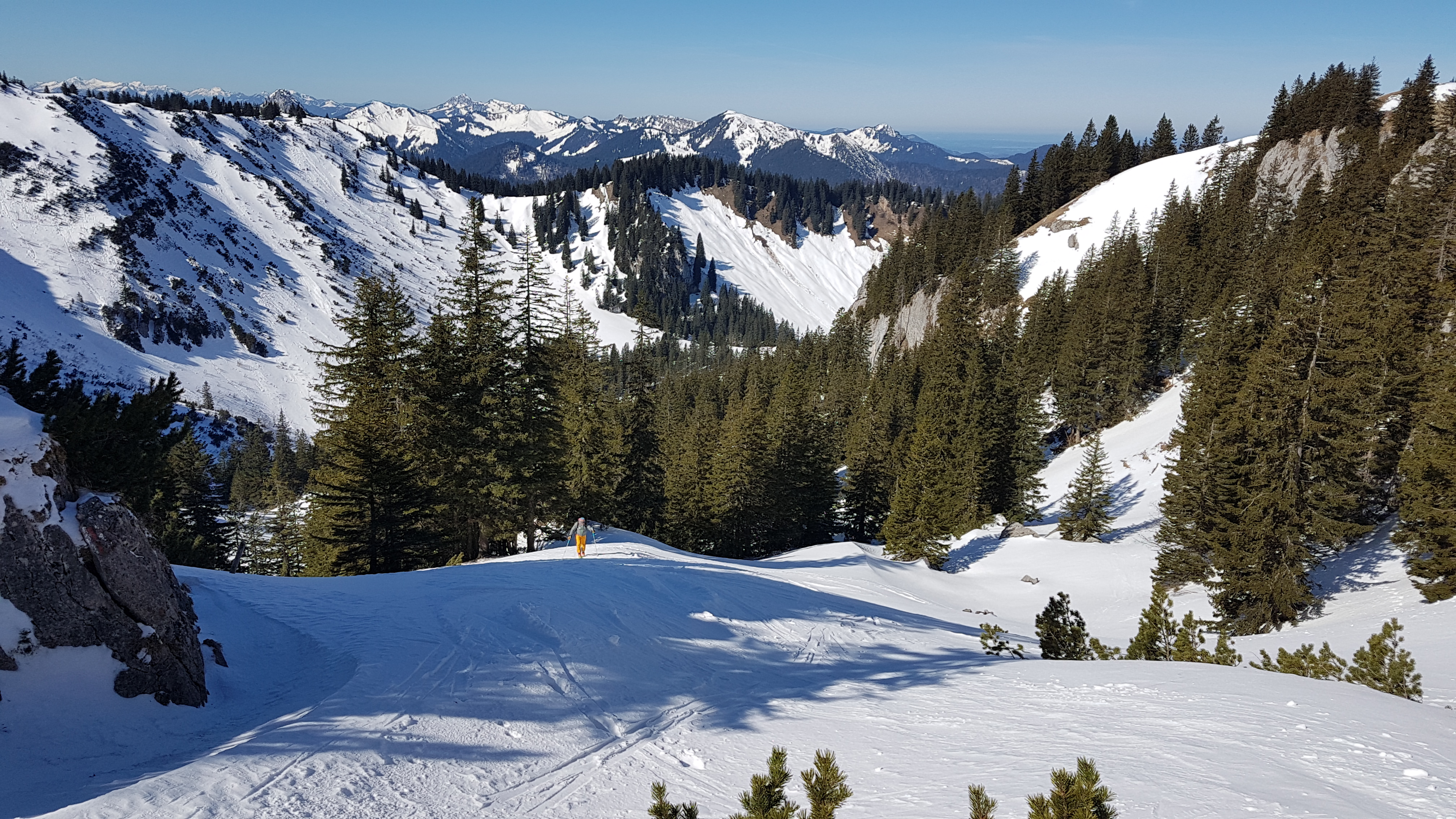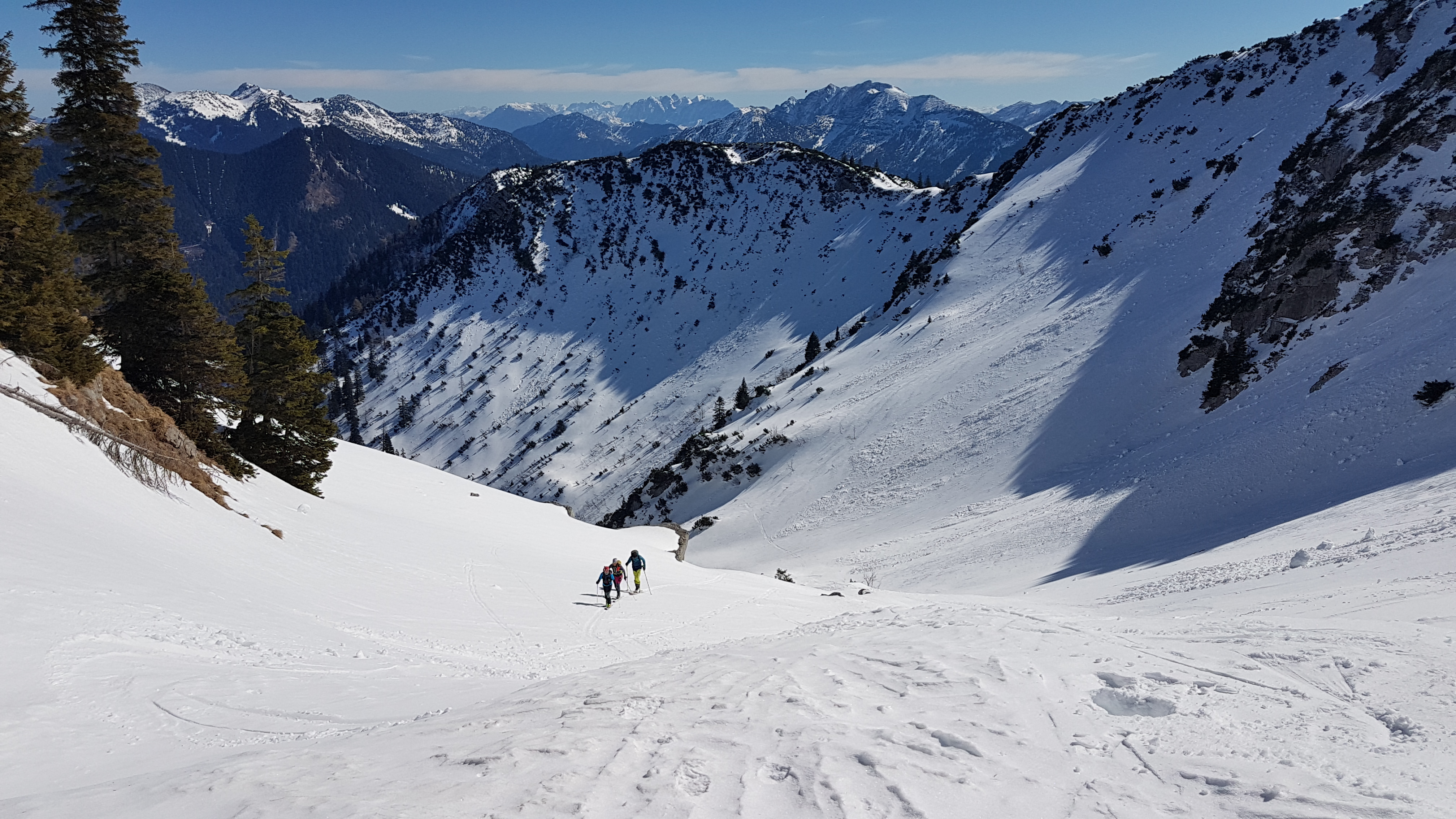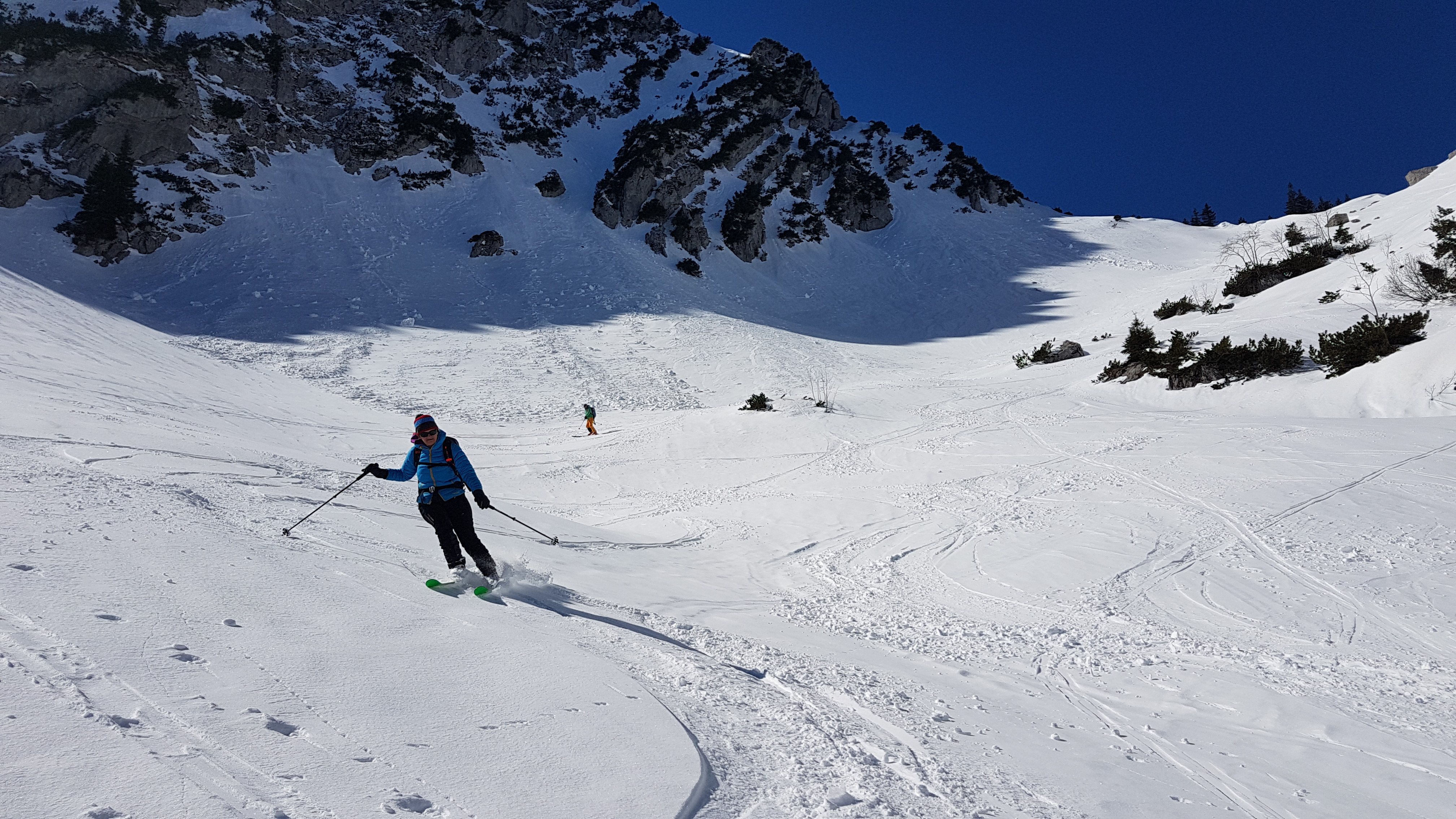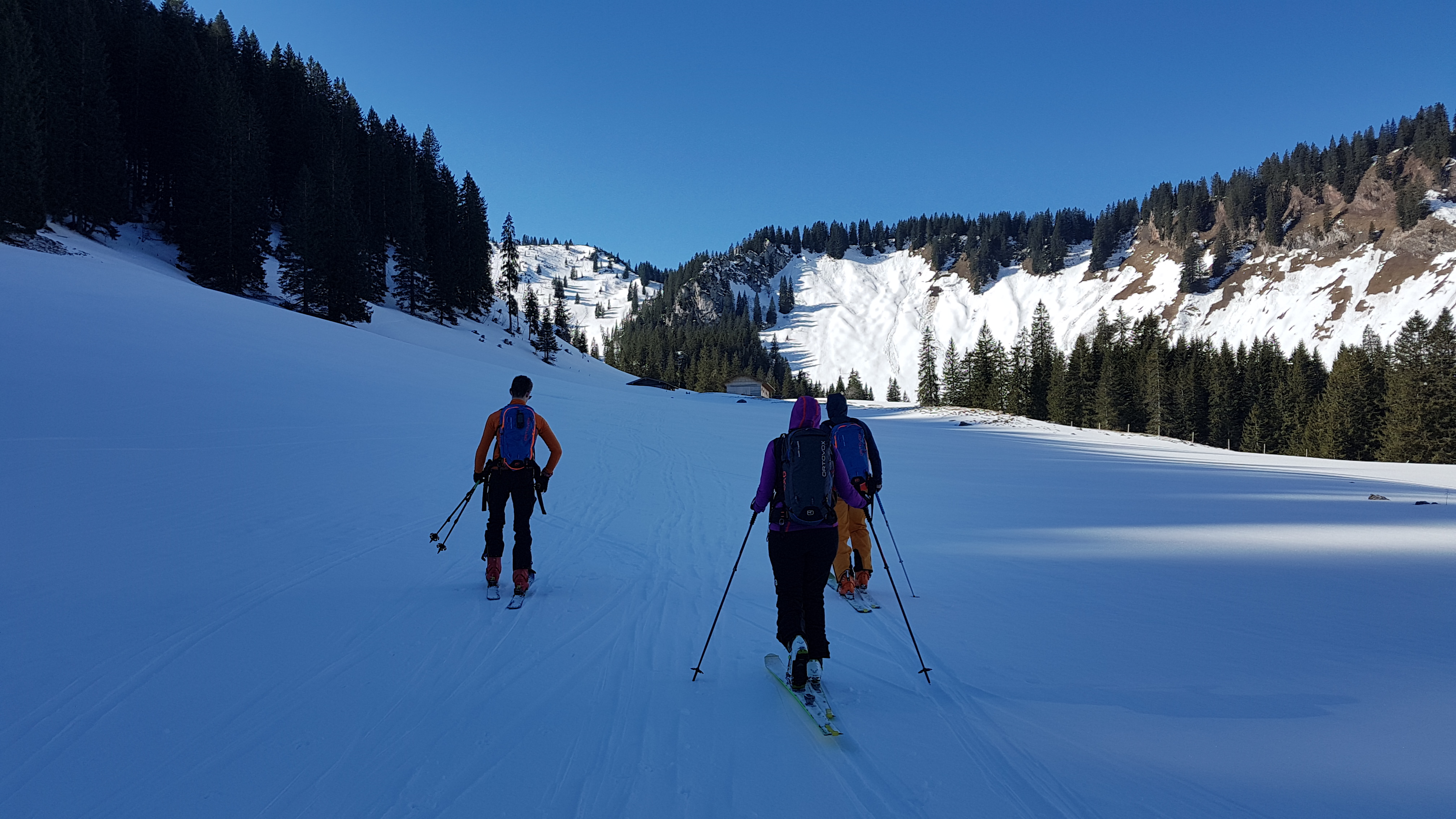Bei der Abfahrt haben wir in der Waldpassage kurz die Ski getragen (ca. 5 Min.)