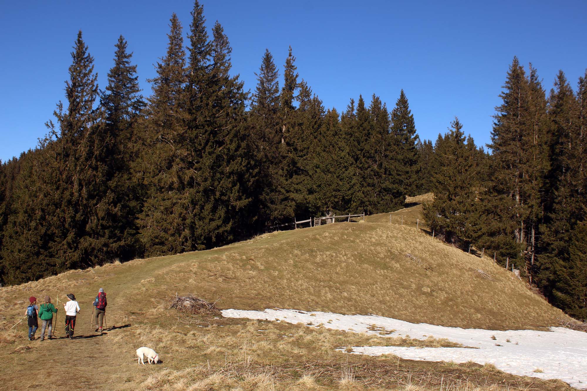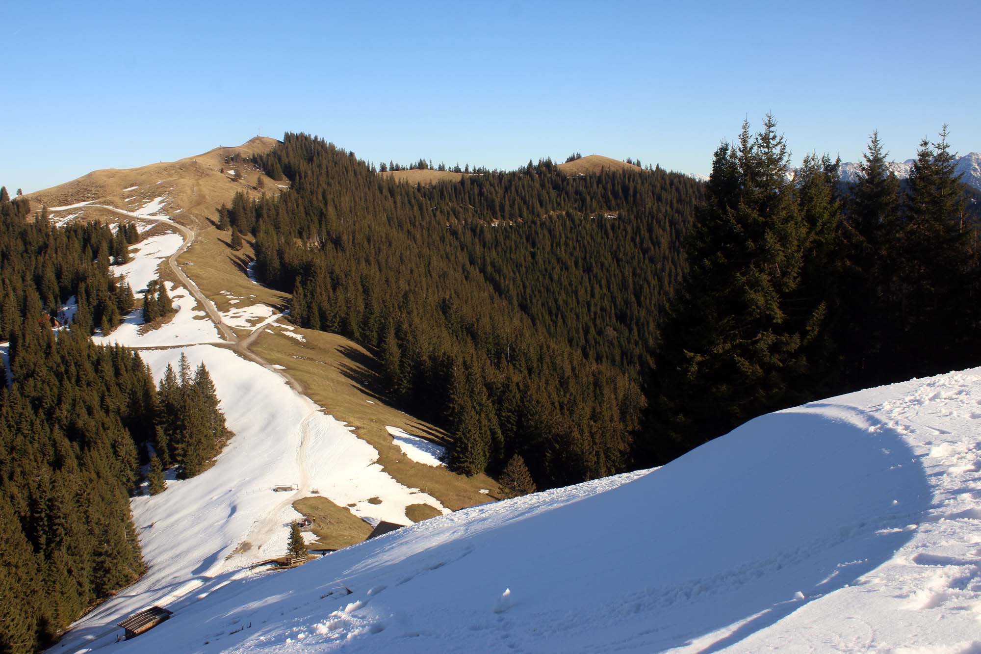 Tourenverhältnisse: Der südseitige Anstieg von Kappell ist komplett schneefrei. Zudem ist es kaum matschig. Der steile Nordhang ist zwar schneebedeckt, aber auch beim Übergang zum Hinteren Hörnle kommt man kaum mit Schnee in Kontakt.