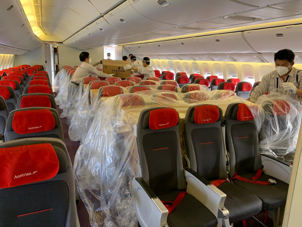 Die Wochenproduktion von 50.000 Masken und 800 Schutzmäntel half der Südtiroler Sanität über den ersten Engpass hinweg. Gleichzeitig haben wir über unseren SALEWA-Lizenzpartner in der chinesischen Stadt Xiamen insgesamt 20 Millionen medizinische Schutzmasken und 600.000 Schutzausrüstungen besorgt und in einer einzigartigen Zusammenarbeit mit Austrian Airlines und der Regierung Österreich über Wien eingeflogen. In einer außergewöhnlichen Aktion wurden dafür zwei Passagierjets Boeing 777 für den Warentransport verwendet, wobei auch alle Sitze des Passagierraums mit Kartonen befüllt wurden. Damit werden die stark betroffene Region Nordtirol in Österreich, das Land Südtirol sowie der italienische Zivilschutz in Rom mit dringend notwendigem Sanitärmaterial versorgt, das Menschenleben retten wird.