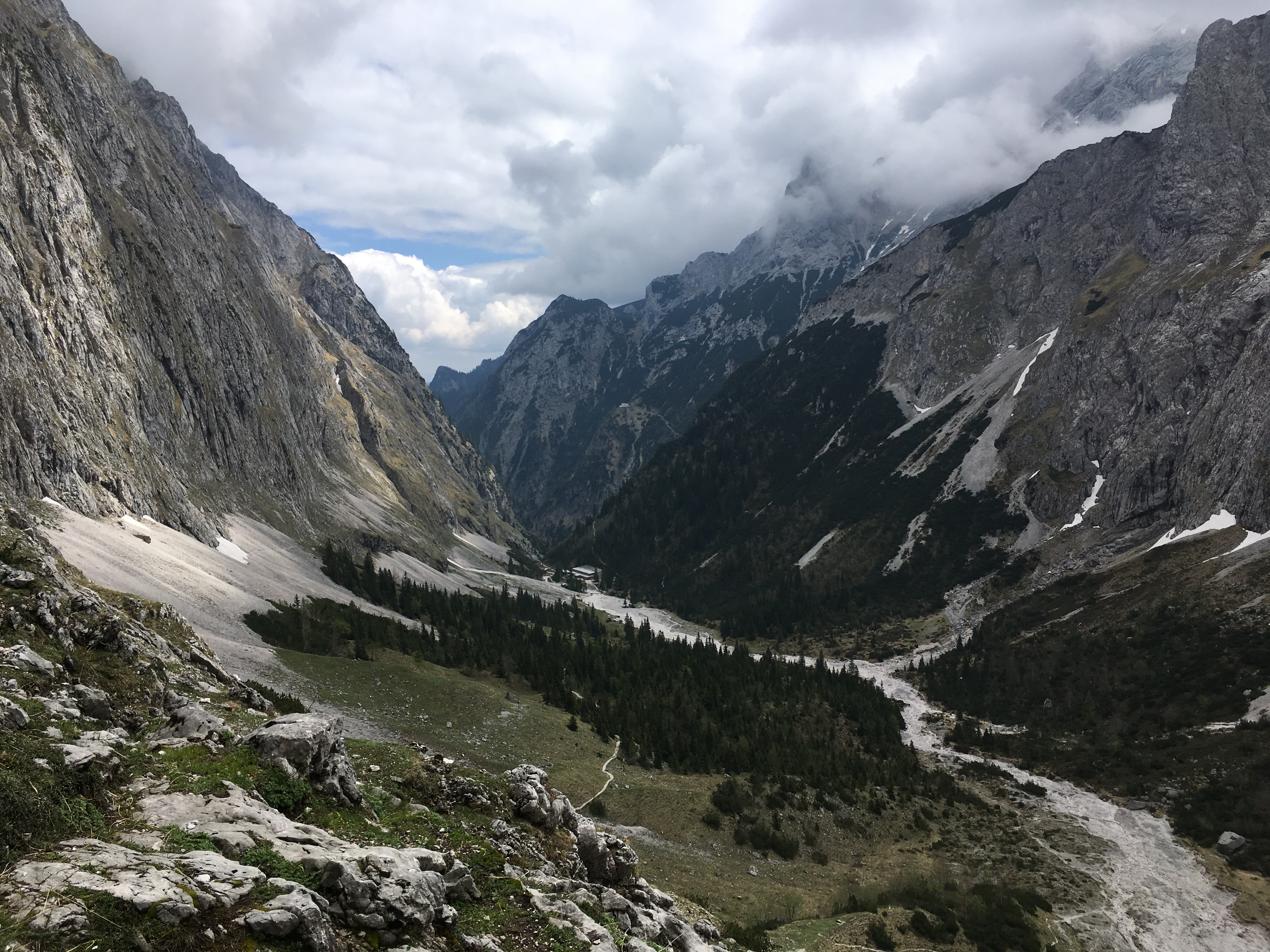 Bei der Höllentalangerhütte mit Blick in den Talschluss: