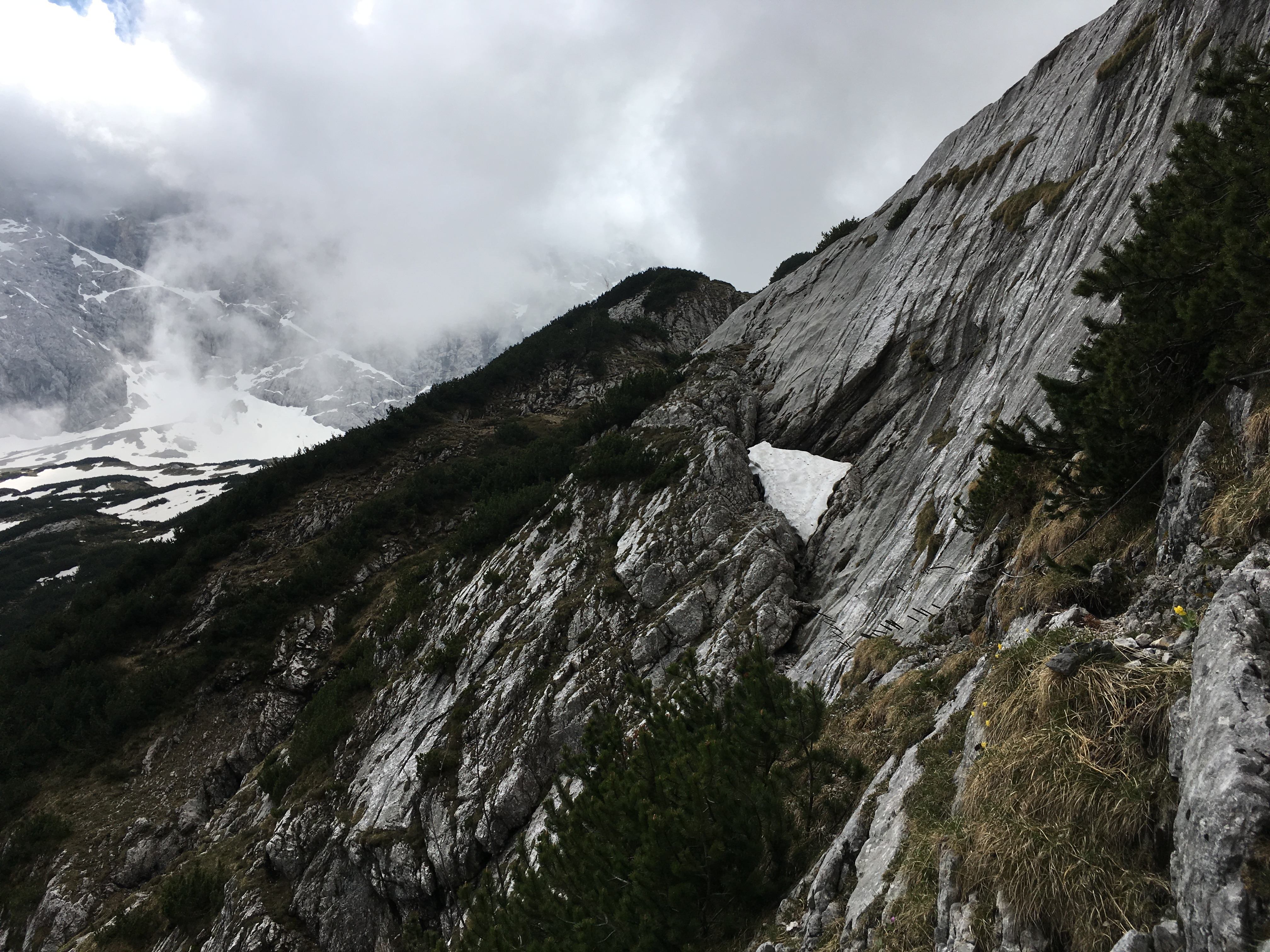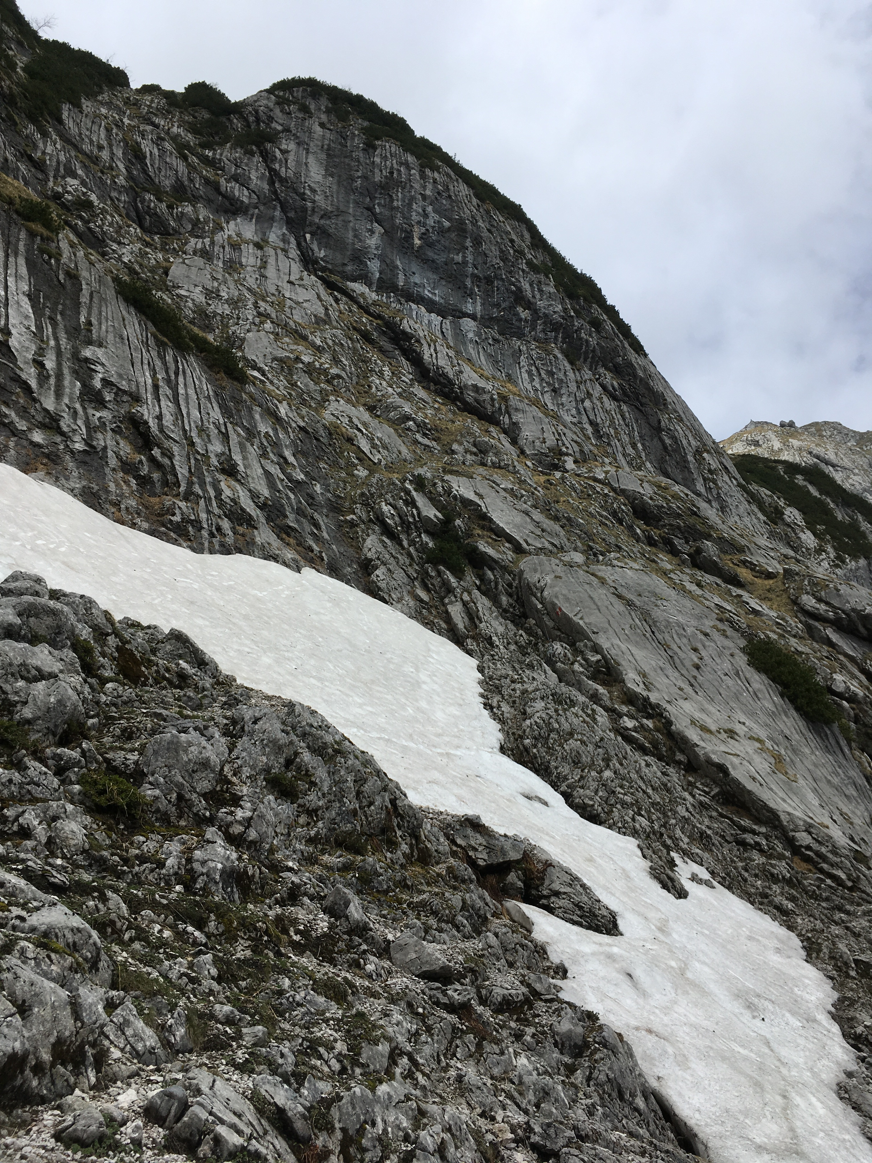 Kleines Schneefeld am Einstieg in die Klettersteigpassage: