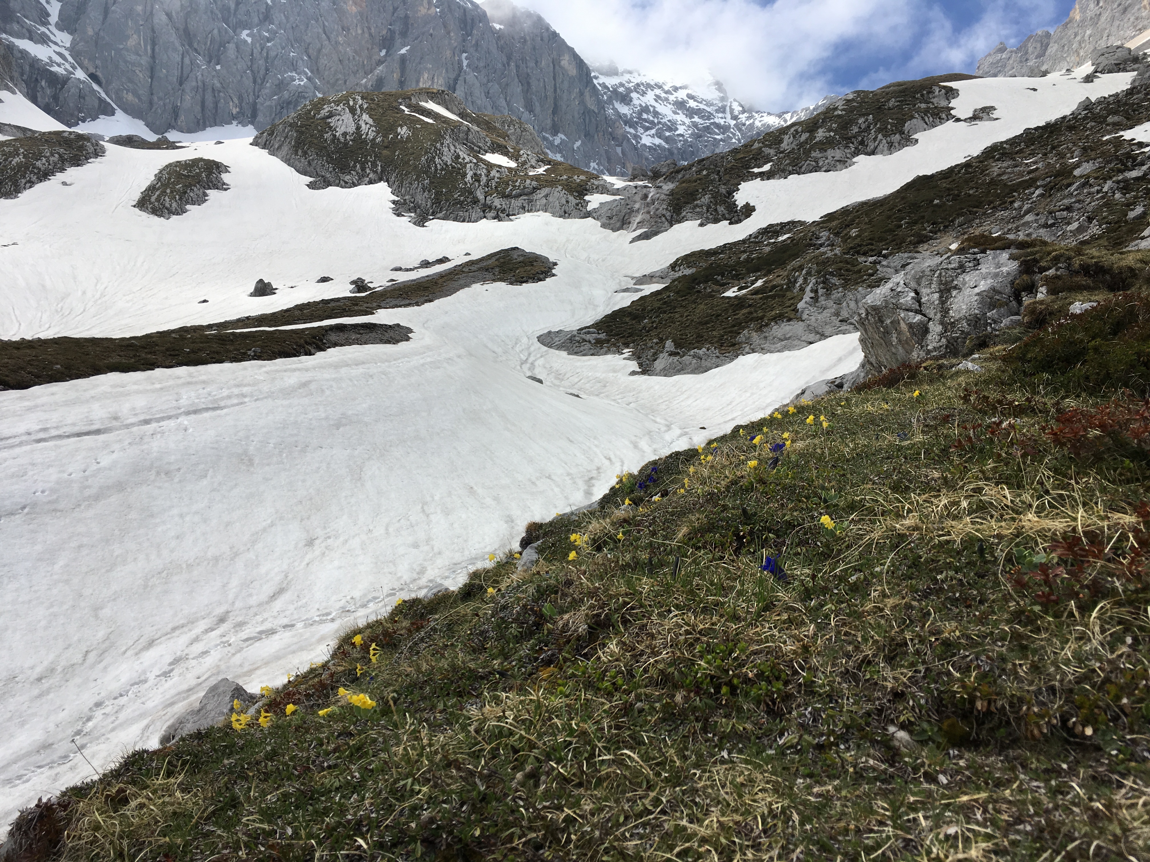 Auch im Höllentalkar macht sich der Sommer mit Blumen bemerkbar: