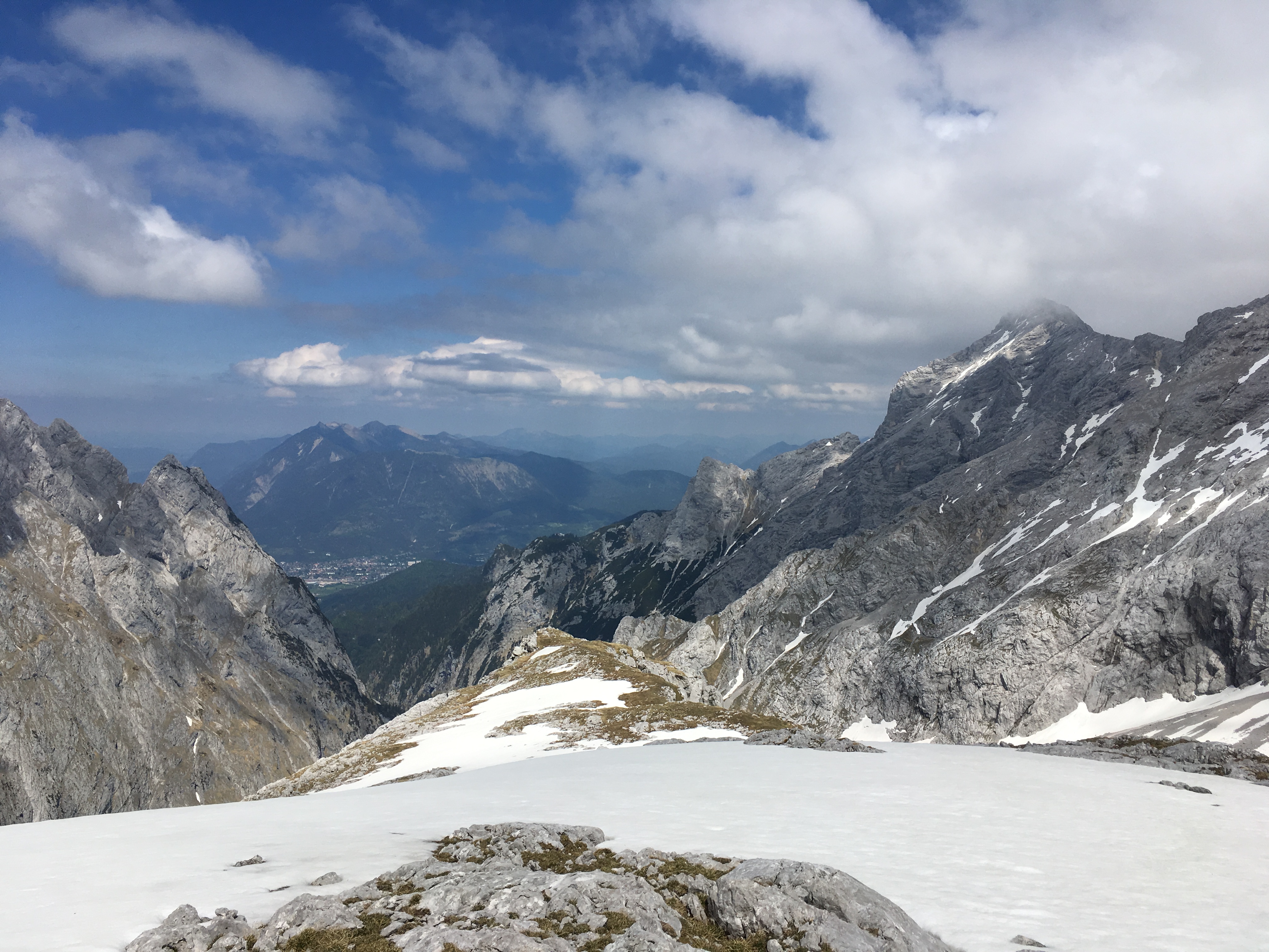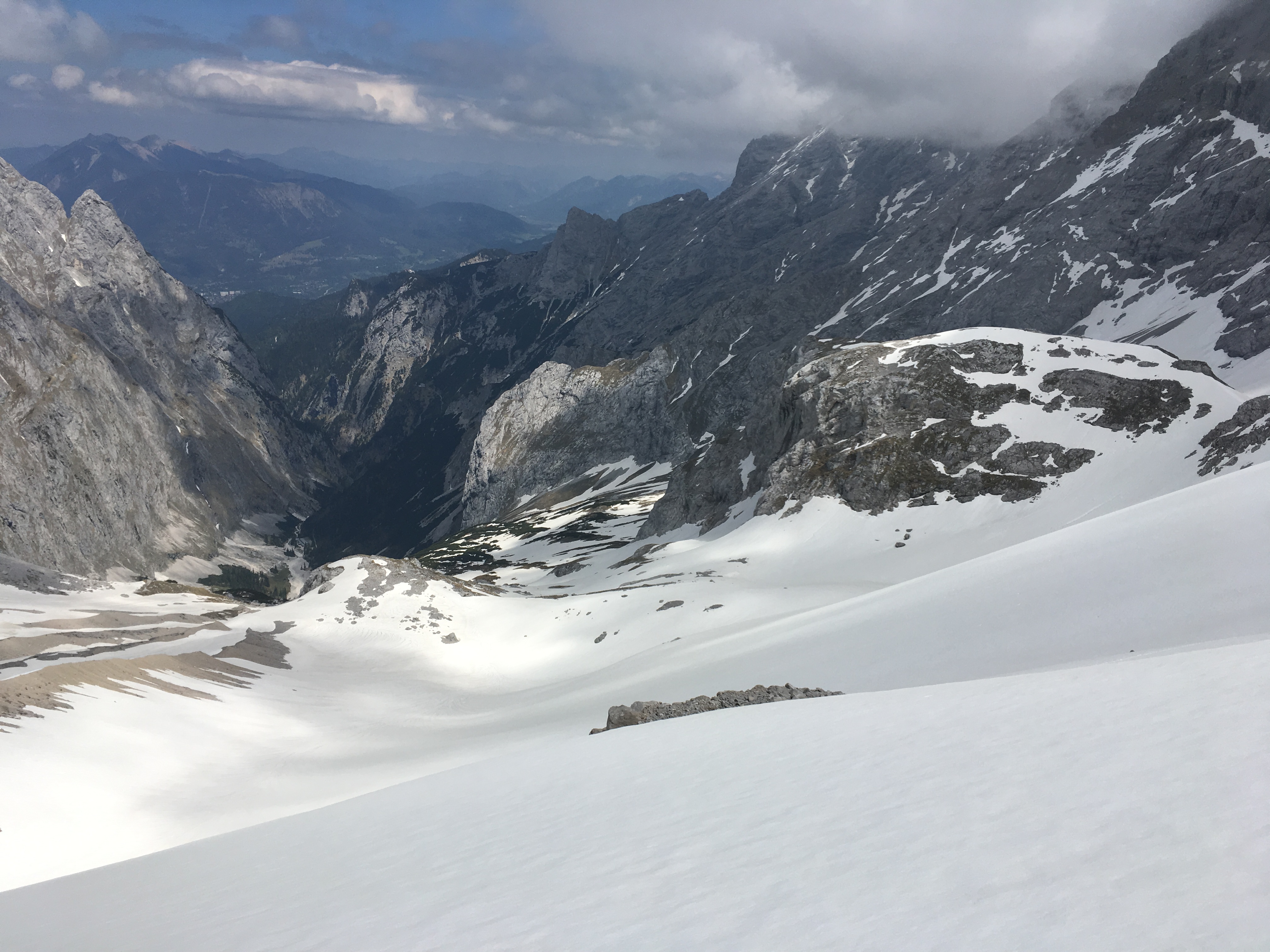 Ein paar Zugspitzaspiranten waren über den Höllentalferner auch unterwegs. Nach Aussage eines absteigenden Bergsteigers gab es ab etwa der Irmerscharte noch viel Schnee, unangenehme Querungen. Er hat umgedreht. Ob einer bis zum Gipfel durchgekommen ist, weiß ich nicht. Es sieht aber auch von unten nach Schnee in den Querungen aus, sicherlich nicht unheikle Verhältnisse. Ich würde da besser noch etwas zuwarten.