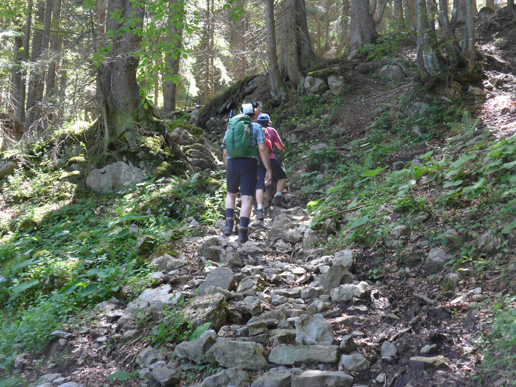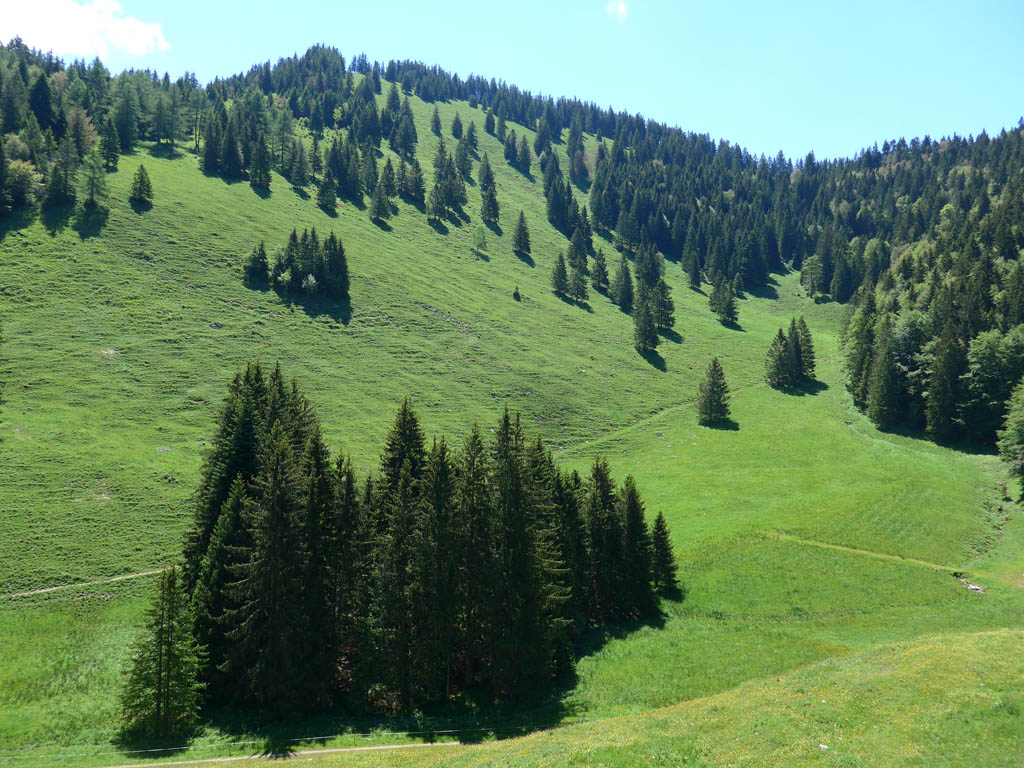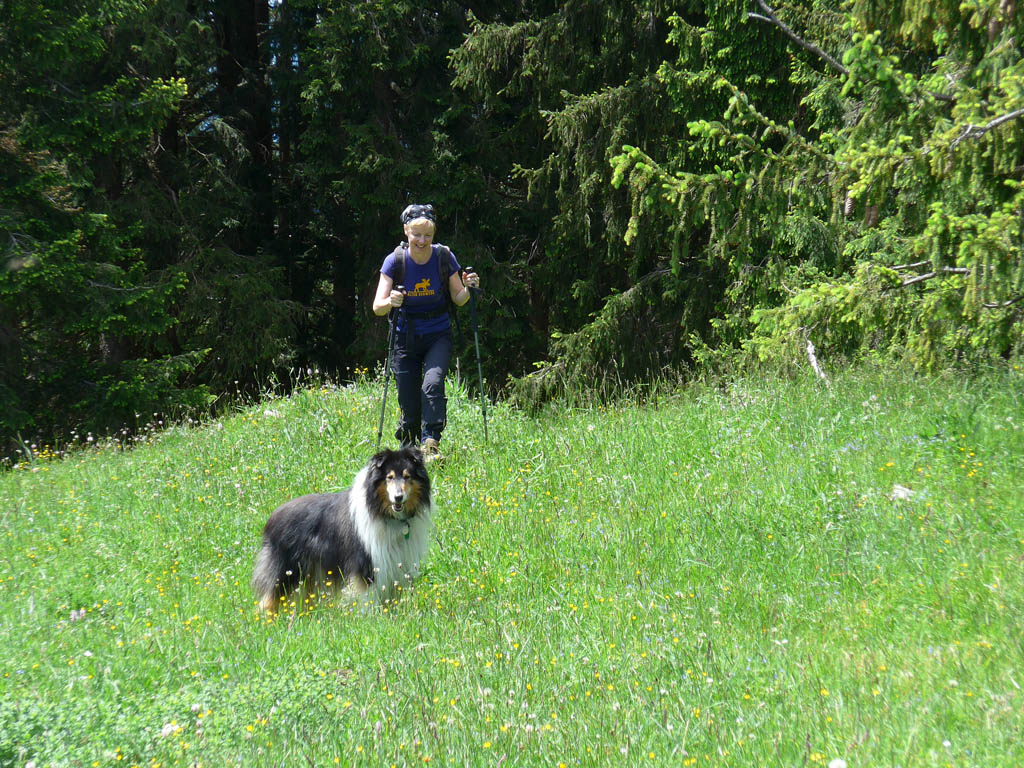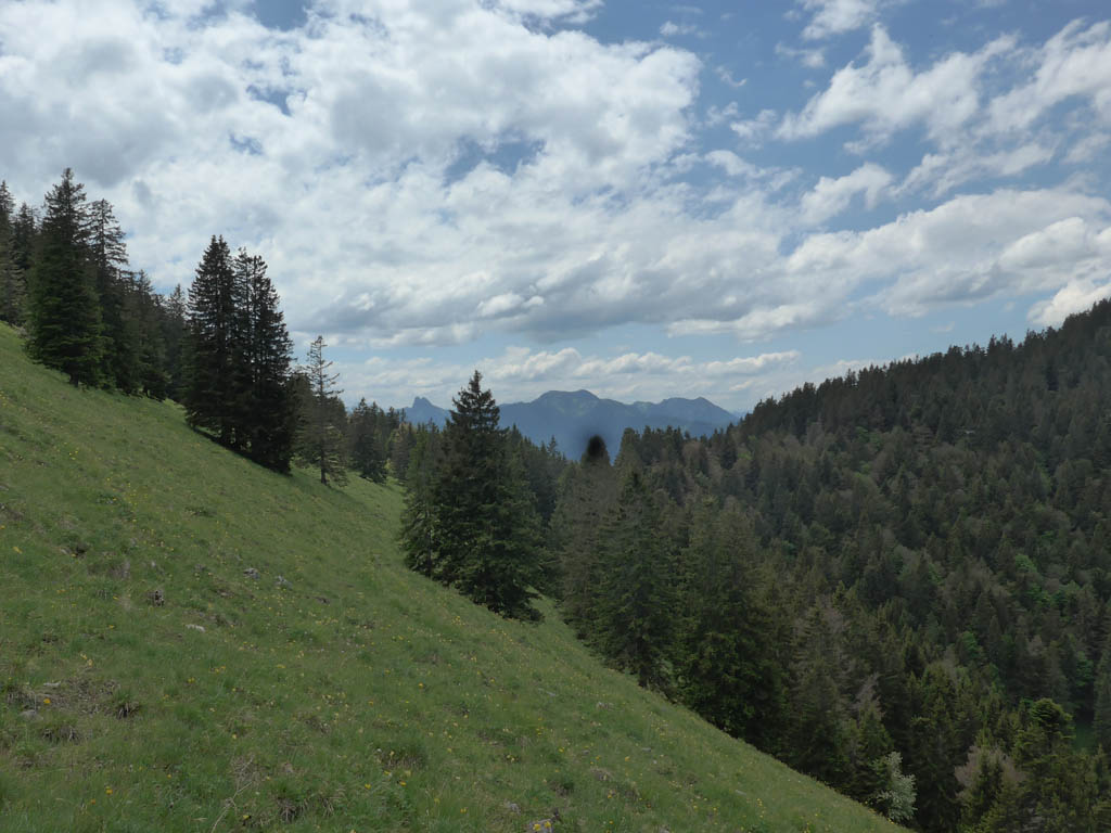 Tourenverhältnisse: Als Wanderung geht man die gleiche Route wie bei der Skitour (https://www.tourentipp.com/de/…tour-Schliersee_1574.html). Erst das Stadeltal hinauf, dann die zweite Forststraße links und nach 500m wieder rechts. Der den rechten Hang zur Krainsbergerhütte hinaufziehende Karrenweg scheint laut Karte aufzuhören, aber tatsächlich geht er als normaler, gut begangener Bergpfad weiter. Einige Moraststellen kann man auf sorgfältig verlegten, großen Baumscheiben überqueren. Auf dem Sattel zwischen Baumgartenschneid und Lahnerkopf angelangt geht man links des Zauns weiter bis an den Waldrand (rechts über den Zaun führt der Pfad zur Baumgartenschneid) und dann links auf der Kammhöhe Richtung Gipfel, immer im lichten Wald bis man auf die baumfreie Gipfelkuppe kommt.Runter sind wir weglos über die Wiese, was ohne Schnee und Ski dann schon recht steil ist und in die Knie geht. Es wäre sicher nicht ganz so steil, wenn man möglichst lange auf dem Nordkamm im Wechsel von lichtem Wald und Almwiese geht.