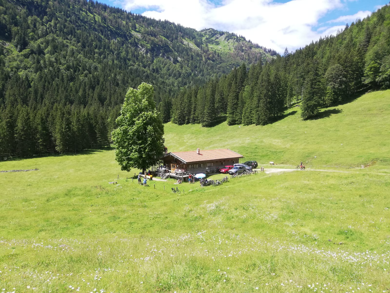 Sonstiges: Kein Busverkehr mehr zwischen Monialm und Valepp, weil die neuerdings vorgeschriebenen Abstände beim Überholen von Fußgängern und Radlern nicht eingehalten werden können. Autos, die das meist auch nicht können oder jedenfalls nicht tun, dürfen aber noch fahren.