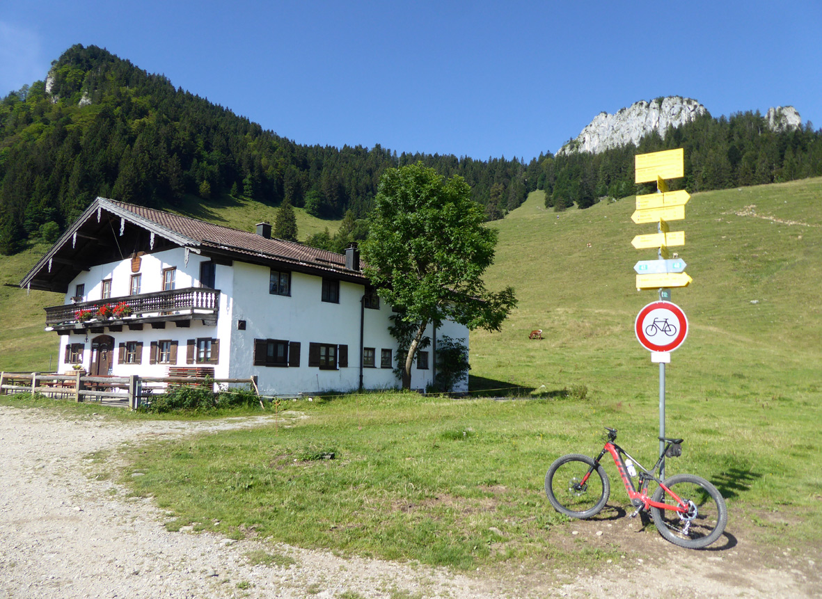 Tourenverhältnisse: Mit dem MTB zu den Daffnerwaldalmen; dort Bikedepot, zu Fuß erst auf die Wasserwand mit der kleinen Kraxeleinlage und dann zum Heuberg. Mit den Mountainbikes sind wir ab der Daffnerwaldalm eine alte Moser-Tour gefahren mit teils etwas abenteuerlichen Trails, die bisweilen ewas matschig waren. In der Summe knapp 1000 Höhenmeter. Der zu-Fuß-Aufstieg von den Daffnerwaldalmen war im Wald ein bisschen batzig, aber gut zu gehen. Die kurze Klettereinlage zur Wasserwand, gut mit einem Drahtseil abgesichert, ist stellenweise schon ziemlich abgespeckt.
