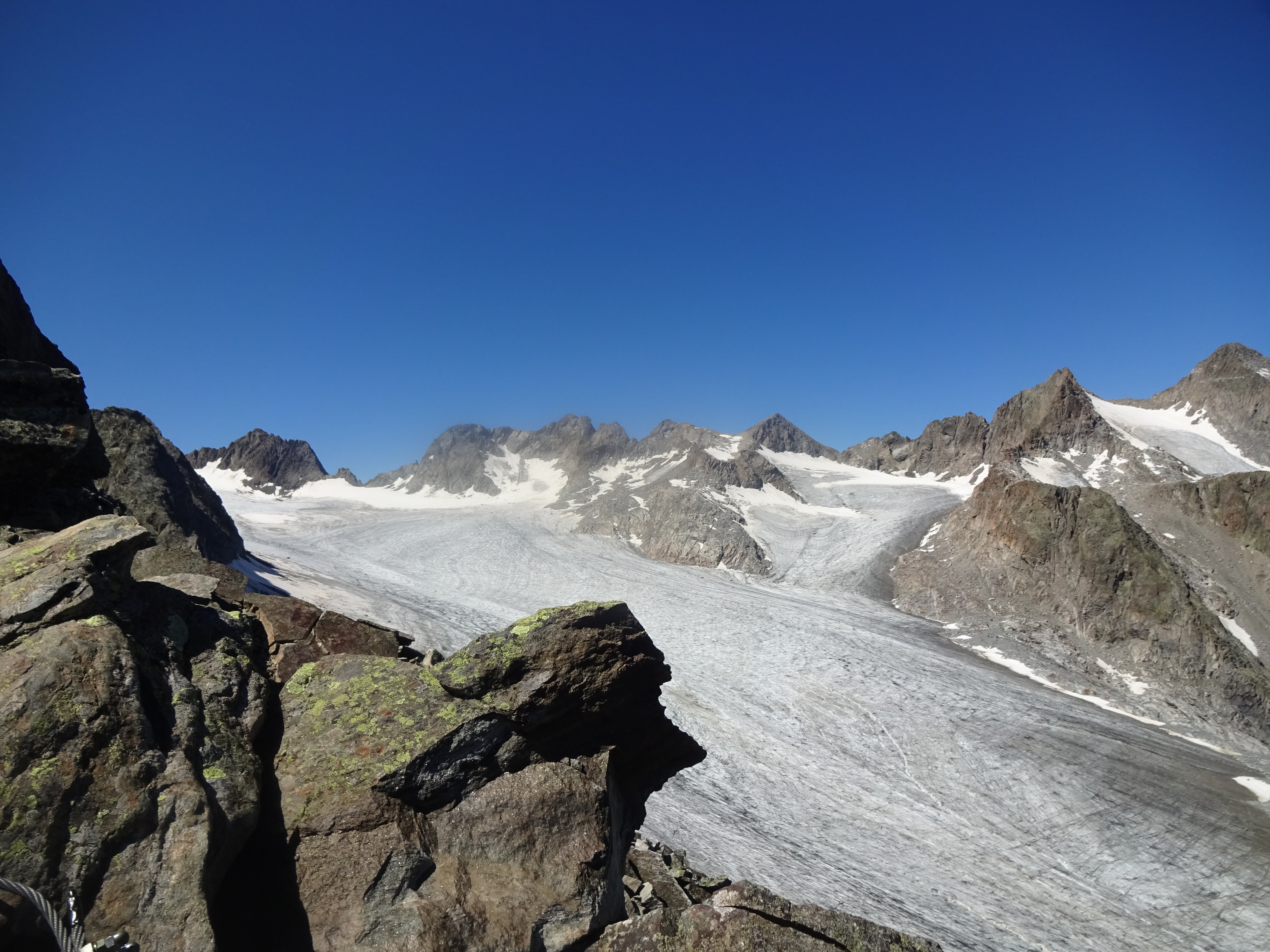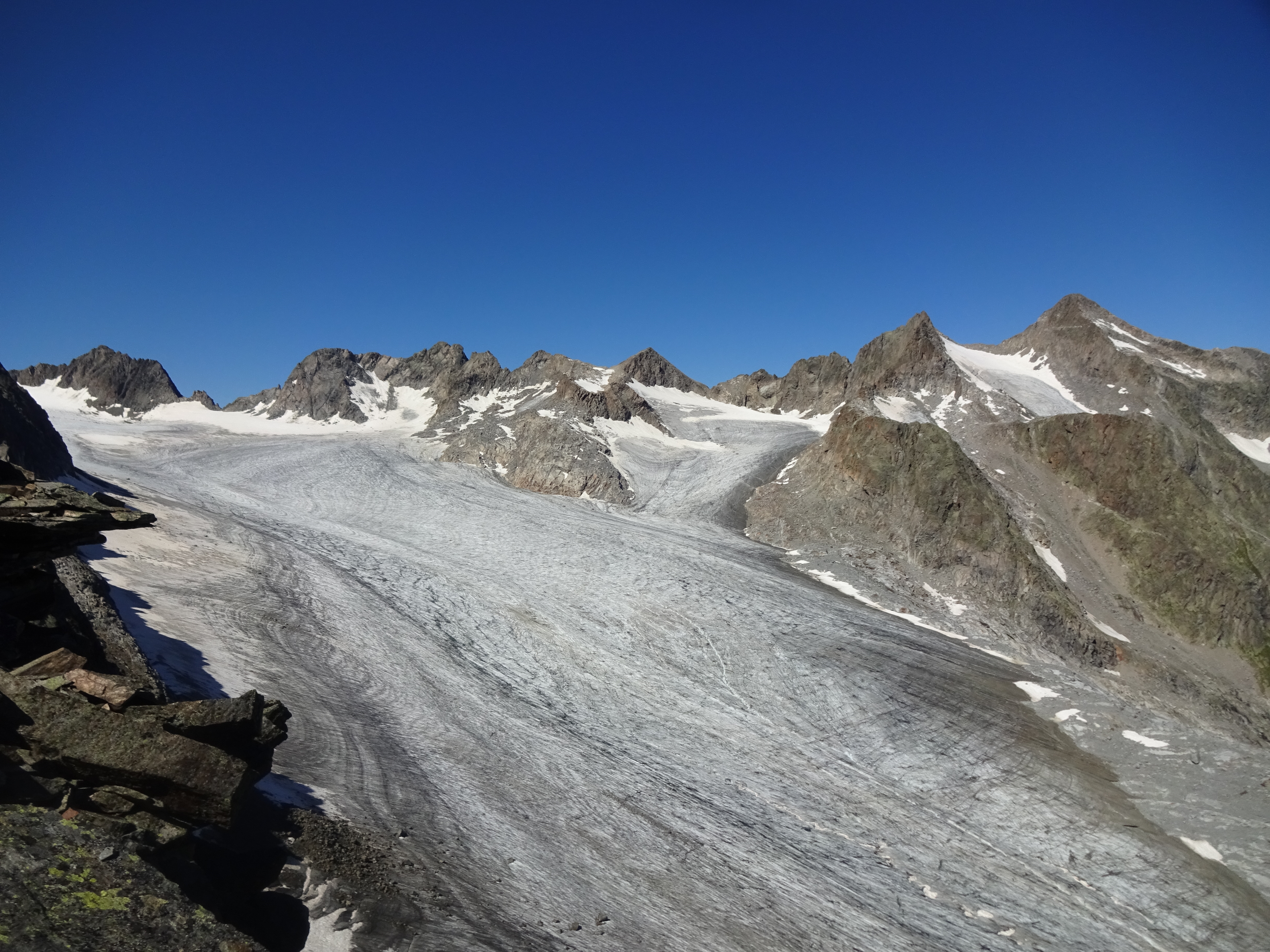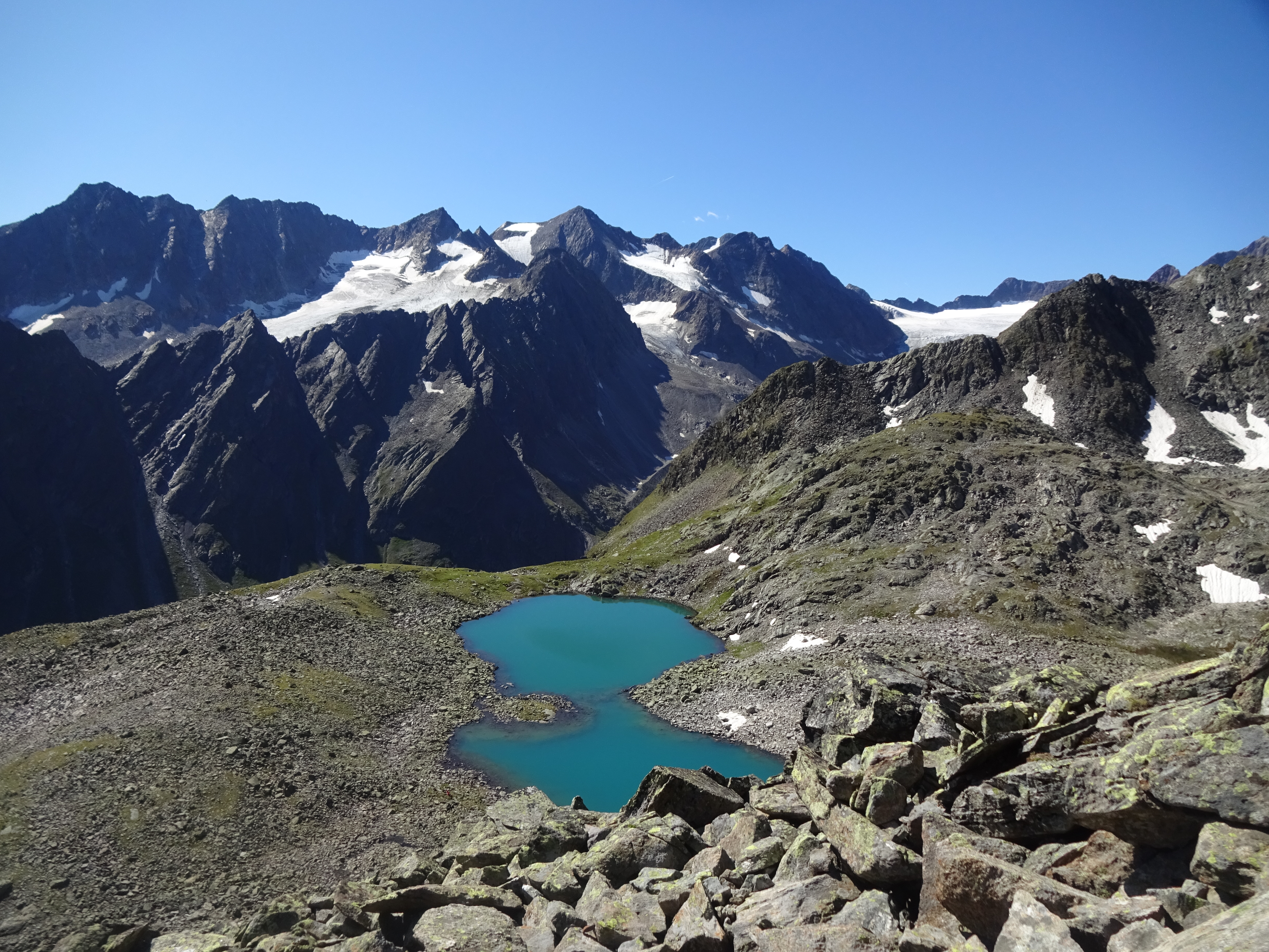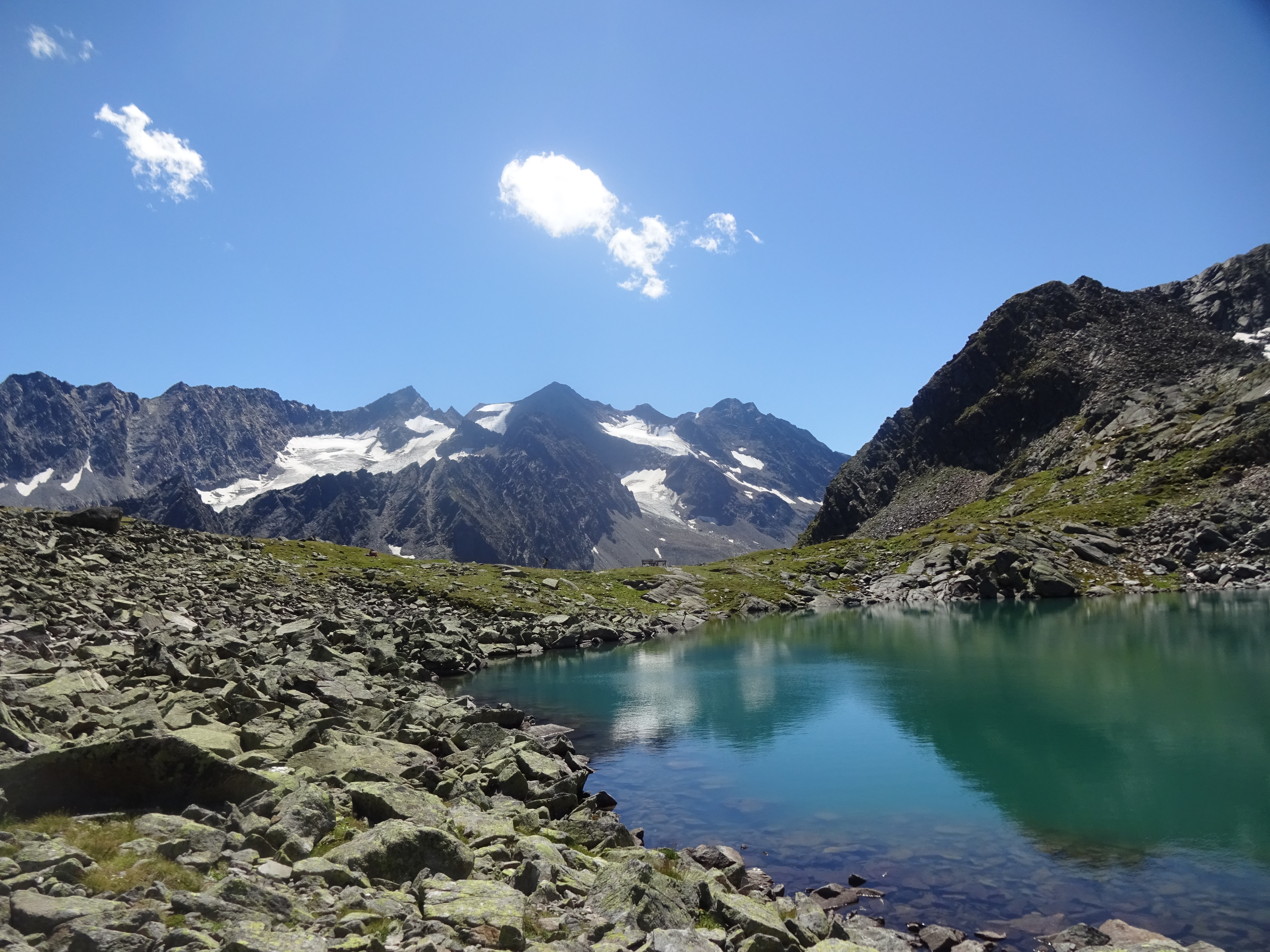 Tourenverhältnisse: Perfekt, der Schnee ist auf der Route schon wieder ganz weggeschmolzen (Nordseitig liegt generell noch ein bisserl was oberhalb von etwa 2800 Metern, aber das betrifft diese Tour ja nicht.) Aufstieg über die Franz Senn Hütte, alles gut beschildert und markiert.