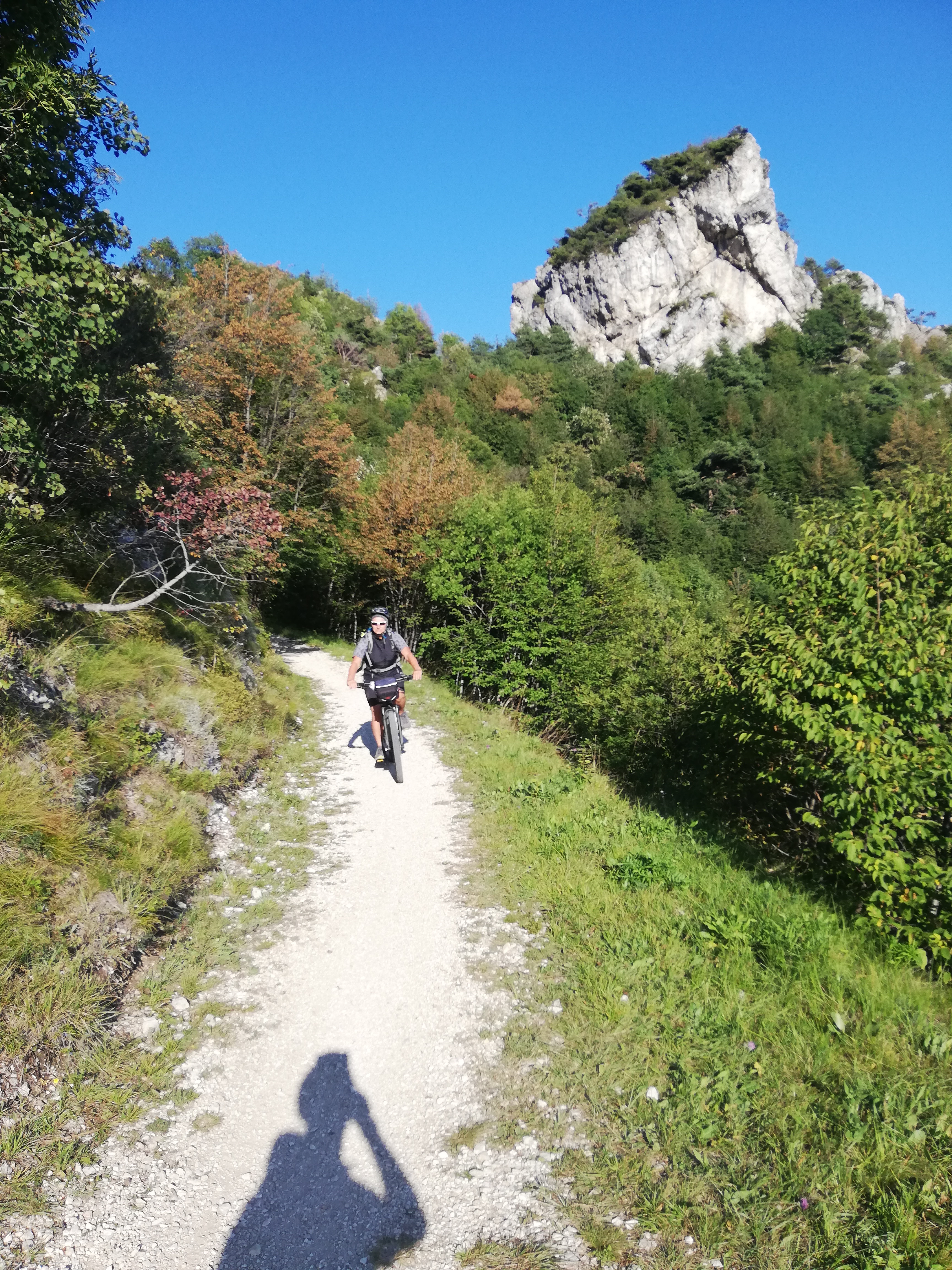 Tourenverhältnisse: Perfekt. Auf dem Radweg von Arco nach Riva, auf der Ponalestraße einfach nach Pregasina und weiter über die Malga Palaer zum Passo Rocchetta. Nach der Malga Palaer erwischten wir dummerweise den Fußweg statt der Radroute und mussten ca. 150Hm einen steilen Hohlweg schieben