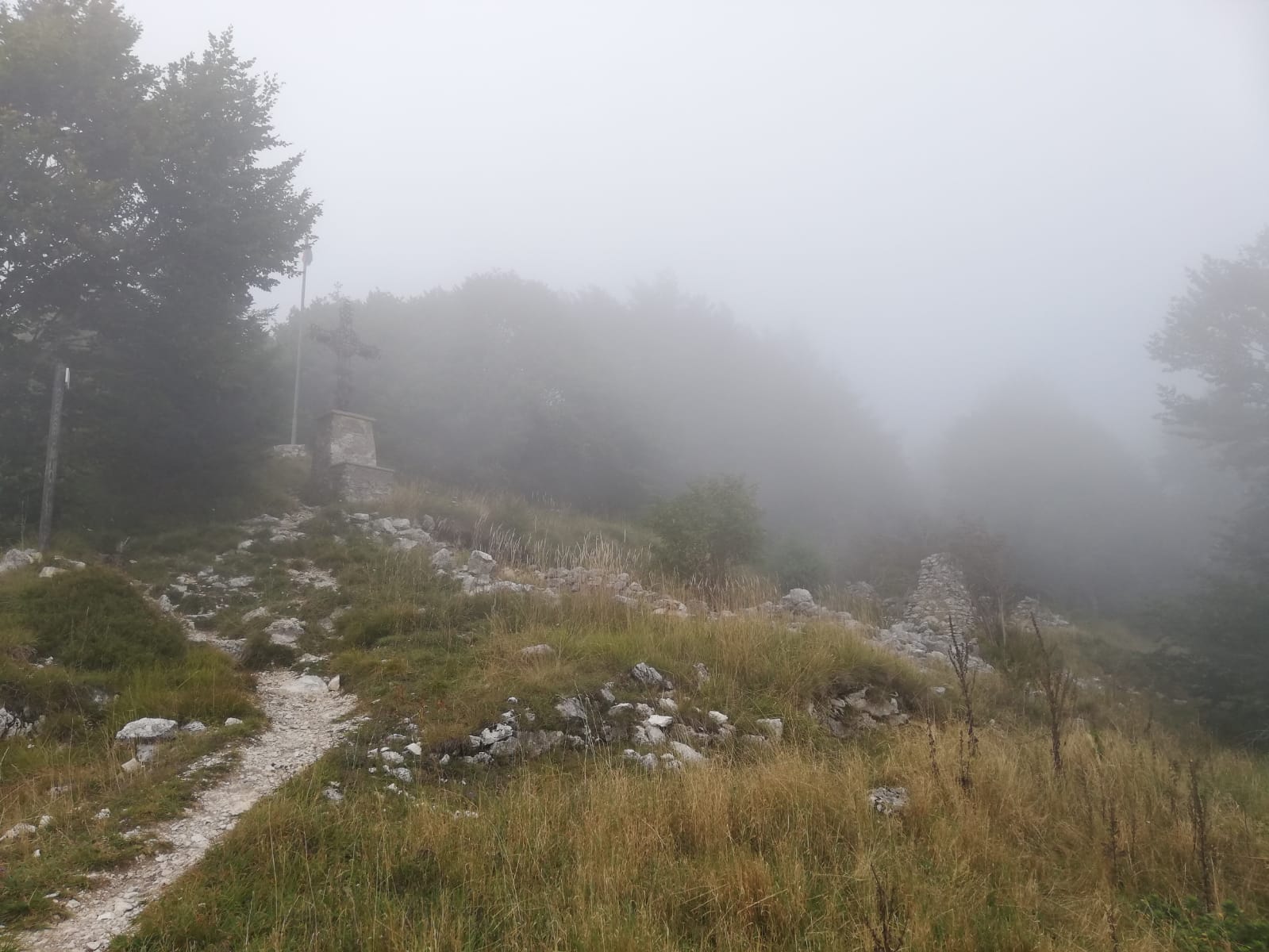 Man kommt am Croce Carone raus, von hier führt ein Abstecher in fünf Minuten zum höchsten Punkt, der aus Bäumen auf Bunkerresten besteht.