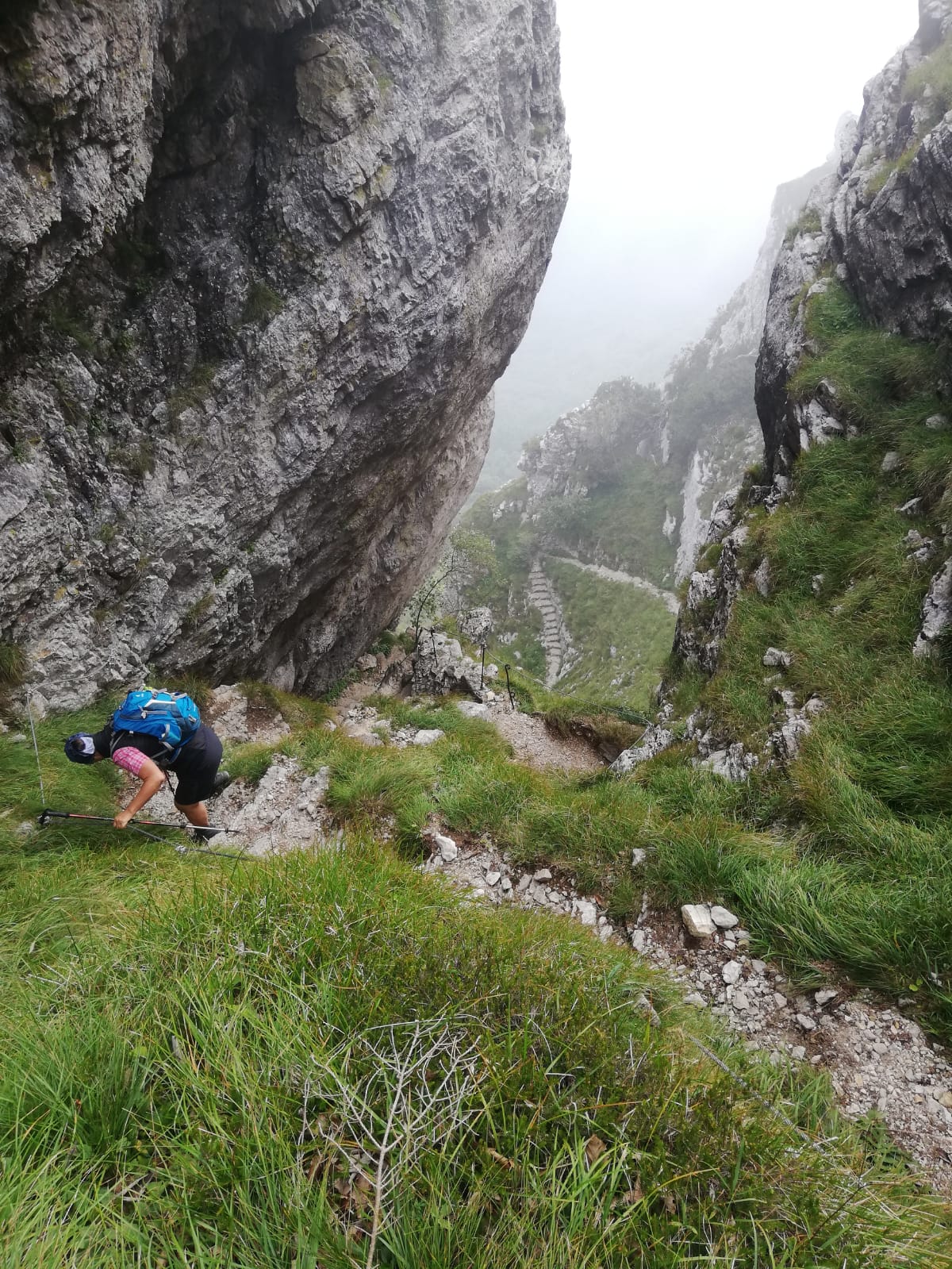 Tourenverhältnisse: Gut. Von Vesio (Wanderparkplatz am Beginn des Val di Bondo) auf kleiner Teerstraße, die (leider) auch für Autos erlaubt ist, in angenehmer Steigung zum Passo Nota. Weiter mit kurzzeitig steilem Auf und Ab über den Passo Bestana bis zur Bocca dei Fortini. Bis hierher mit dem MTB. Ab der Bocca oder einem Rastplatz kurz danach (Casa Carola) auf Wanderweg durch Wald weiter (Wegweiser). Nach ca. 30 Minuten Wegteilung. Links zweigt der "Cresta" ab, der nicht empfehlenswert ist, rechts der "Camino". Wer aber die Überschreitung machen will, sollte den "Cresta" dann im Aufstieg begehen. Die Route ist zwar markiert, es handelt sich aber nur um einen wenig ausgeprägten Steig durch steilen Wald, von Cresta/Grat keine Spur.