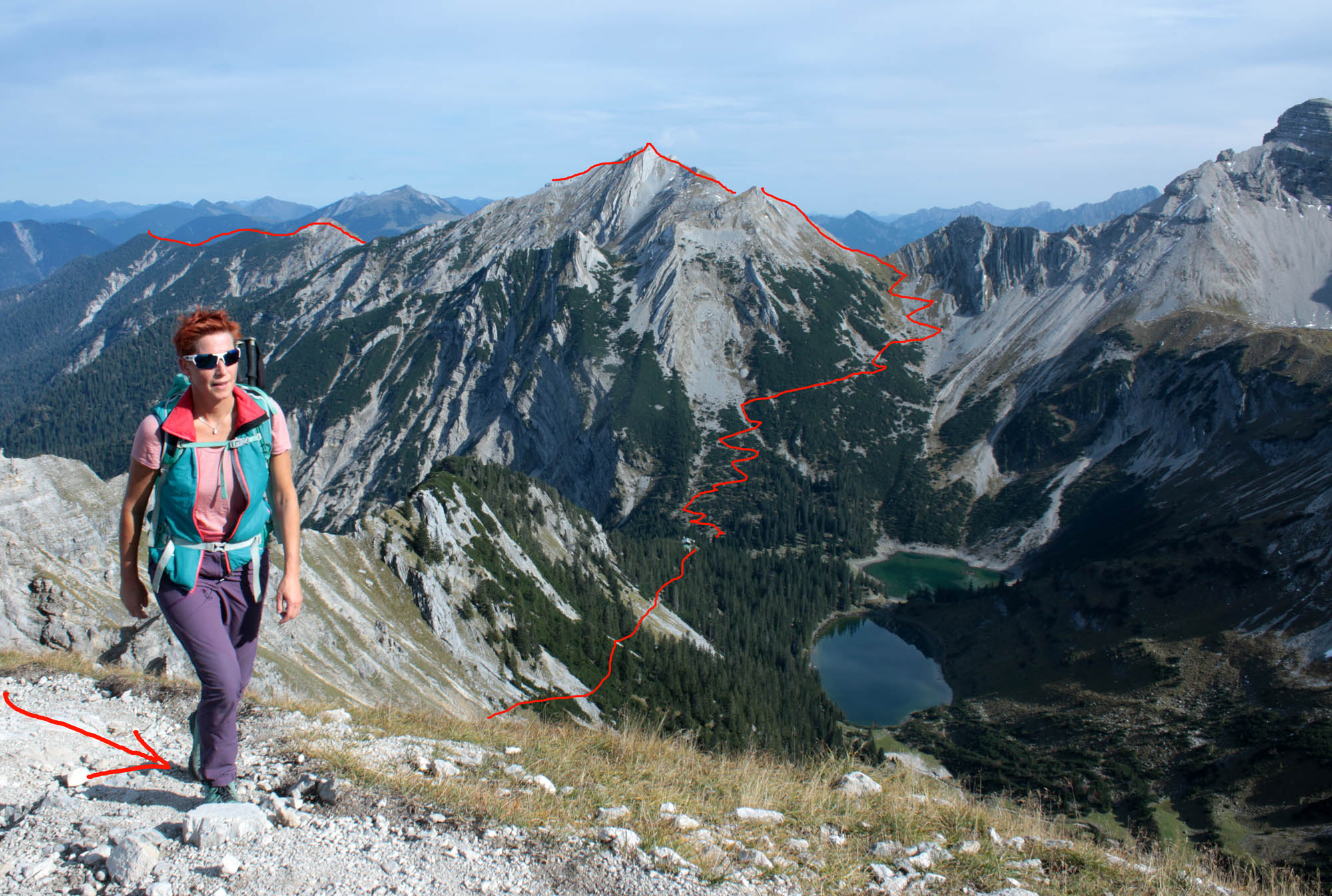 Gipfel und Höhe: Galgenstangenjoch - Baierkarspitze - Krapfenkarspitze (2109 m) - Gumpenkarspitze - Schhöttelkarspitze - Seinskopf