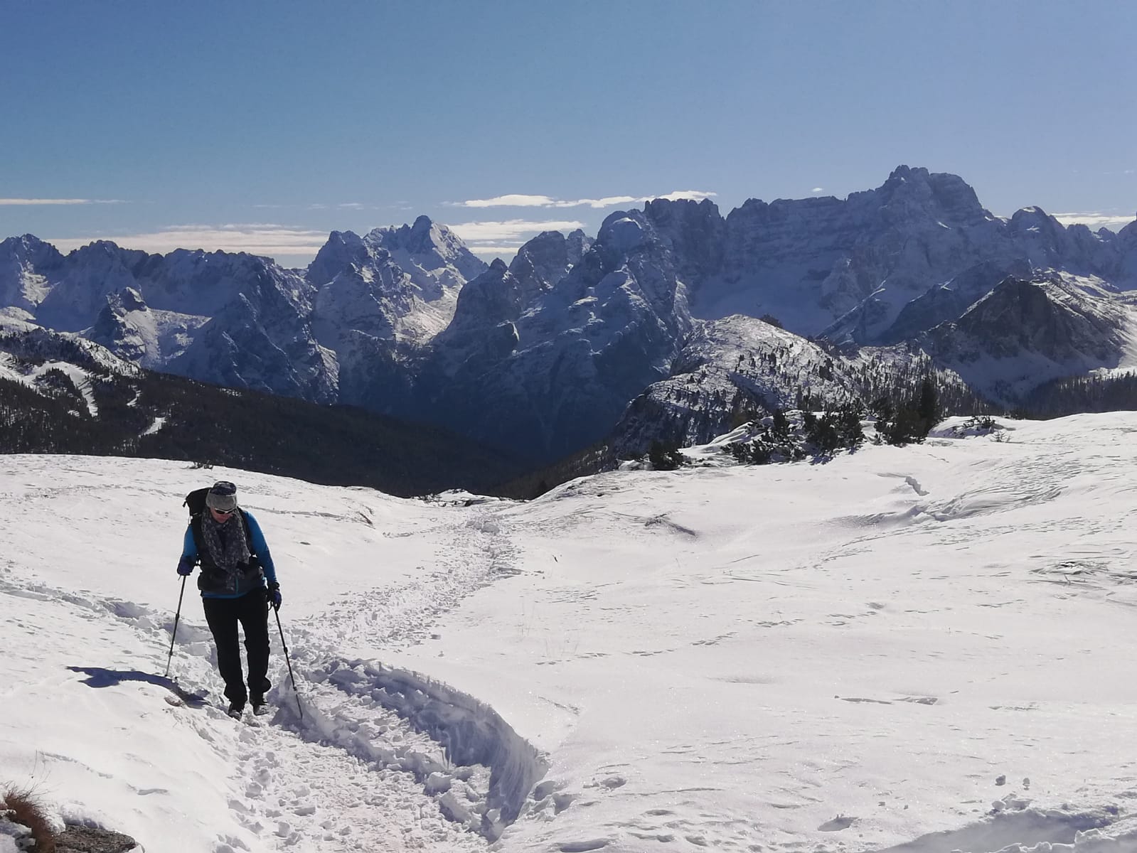 Tourenverhältnisse: Winterlich. Wenige Meter nach dem See zweigt der Weg 122 nach links in den Wald ab. Stapfspur. Später auf Forststraße (geräumt, teilweise vereist) bis zur Teerstraße, die zum Rifugio Bosi führt. Die Teerstraße ist geräumt und trocken. Das Rifugio ist geschlossen. Ab Hütte auf Weg 122 weiter zum Gipfel. Stapfspur. Der historische Rundweg ist nicht machbar.