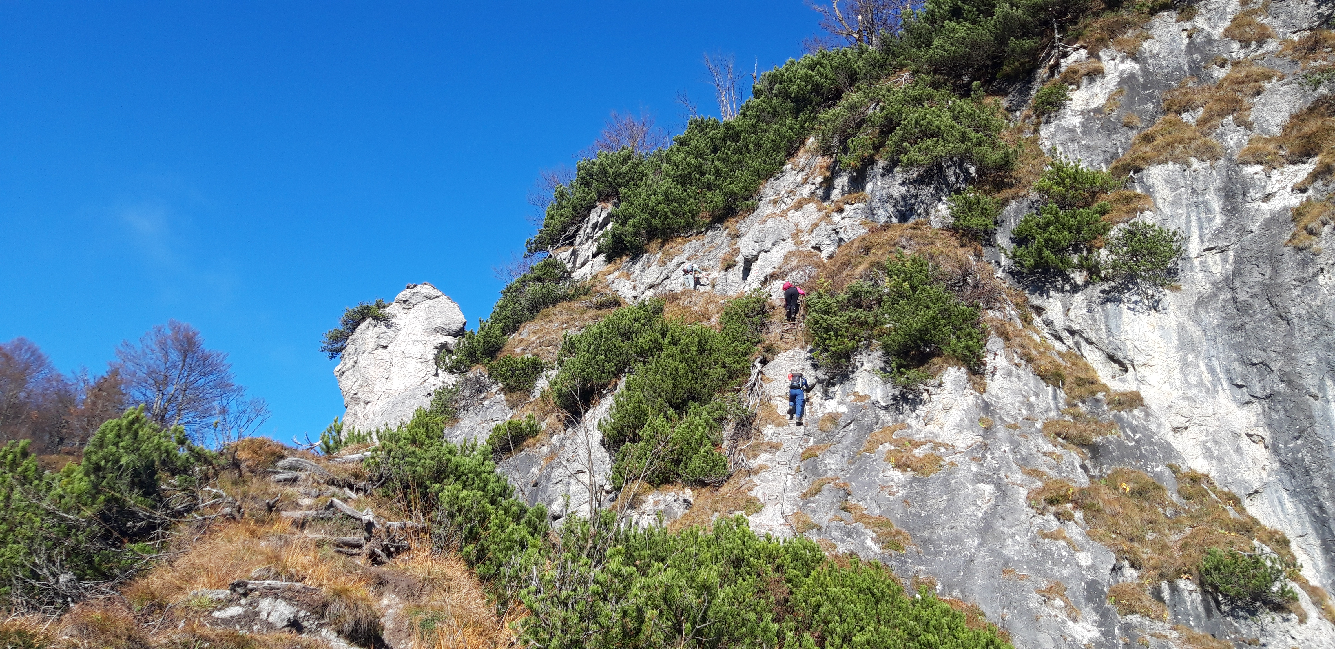 Gefahreneinschätzung: Meist gering. Ein kurzes Stück des Maiklsteiges ist klettersteigartig ausgebaut (B) und ziemlich ausgesetzt. Auch sonst gibt es die eine oder andere exponierte Stelle/Querung, aber wirklich nichts Gröberes.