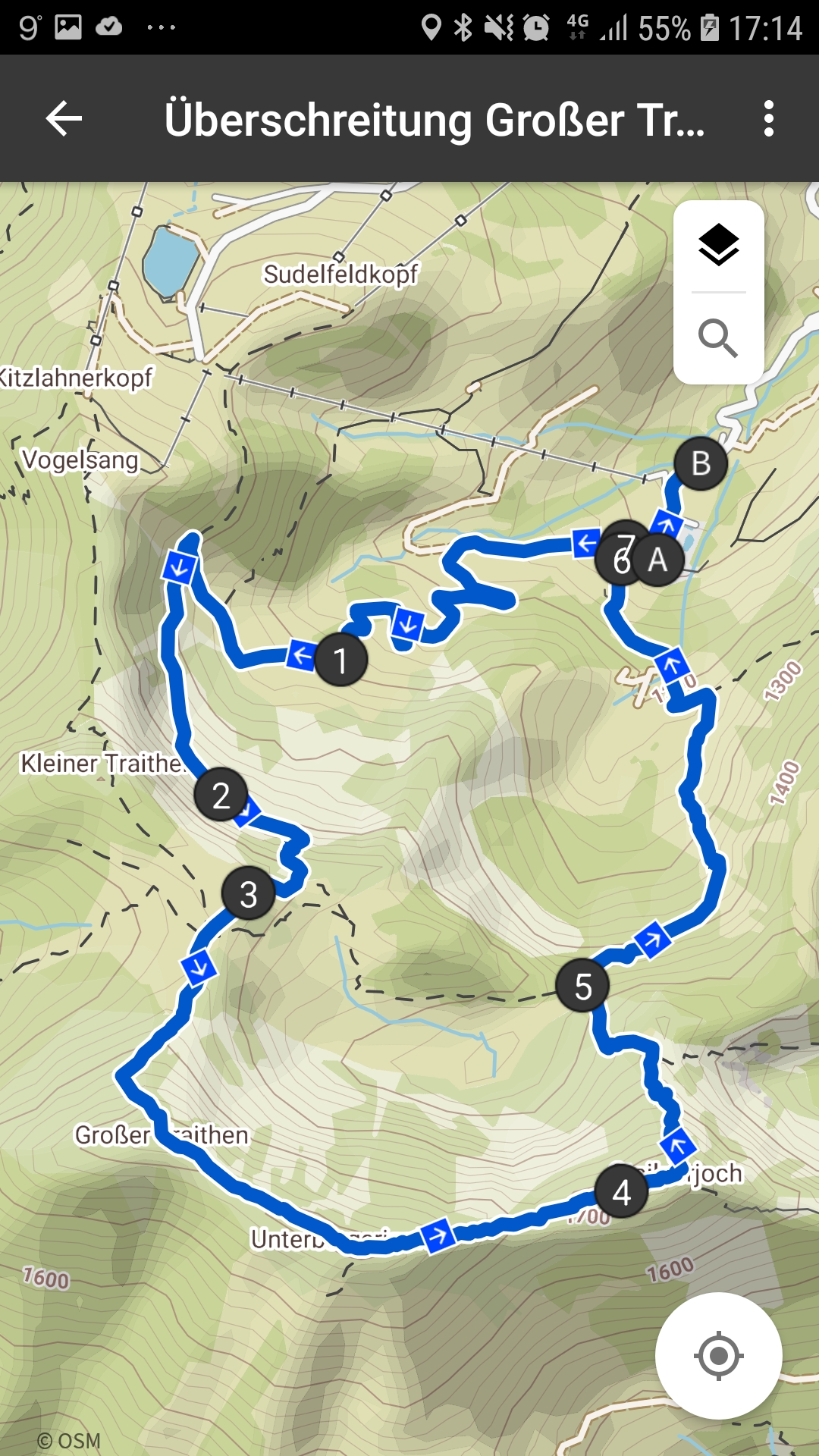 Sonstiges: Aufstieg zum Steilner Joch, auf dem Grat bis zum Gipfel. Abstieg zum Sattel zwischen Großem und Kleinem Traithen, von dort aus Querung unterhalb des Kleinen Traithen bis zur SO-Flanke des Vogelsang und Abstieg bis zur Rosengasse.