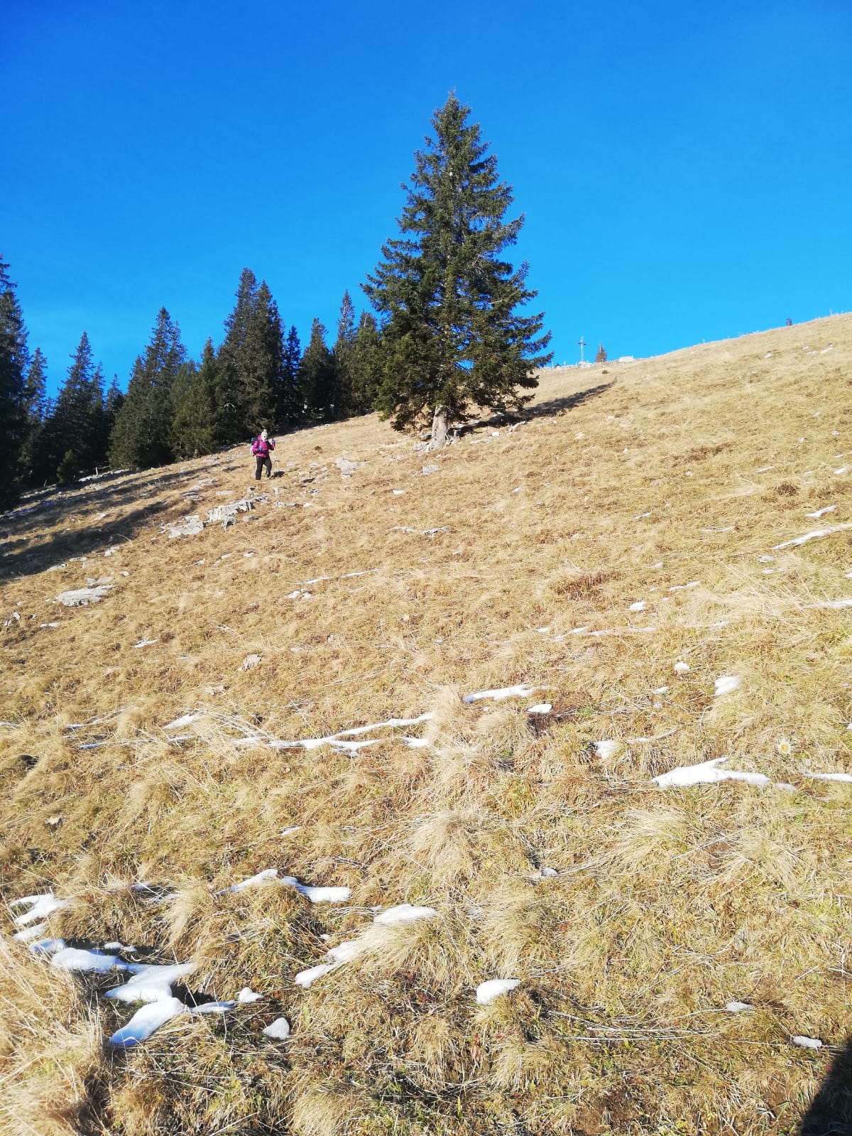 Tourenverhältnisse: Eisig nur ganz am Anfang etwa 200m auf der flachen Forstraße. Ansonsten so gut wie keine Schneeberührung. Teilweise bazig.