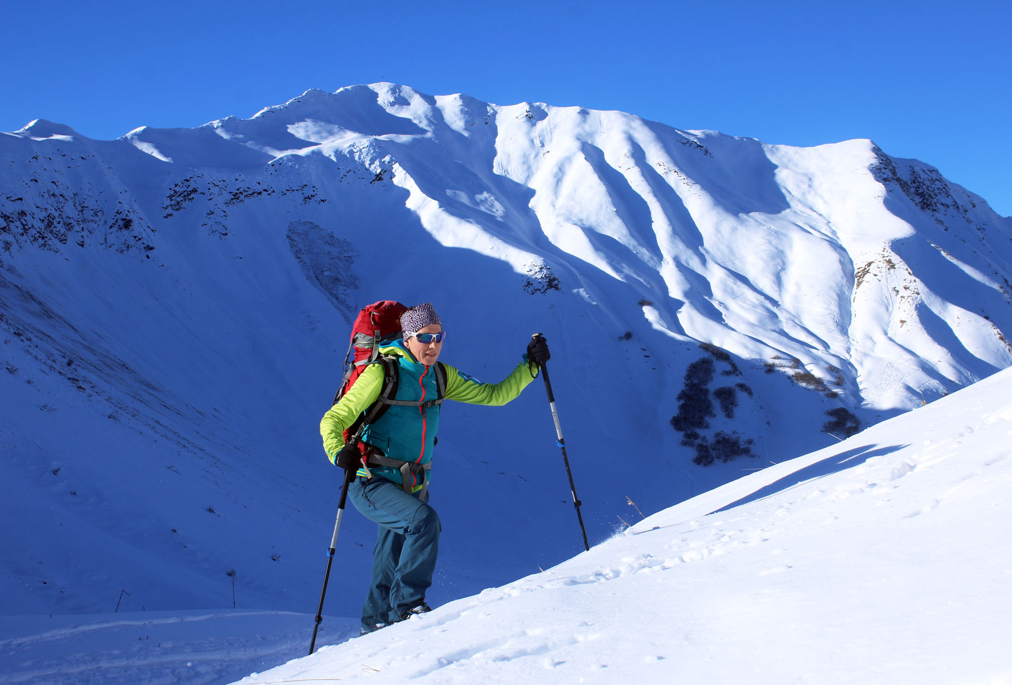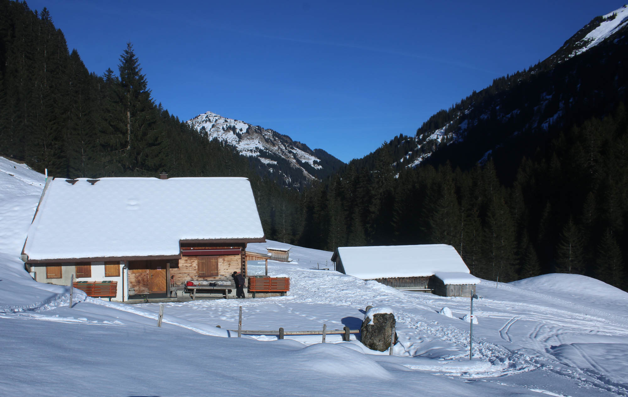 Tourenverhältnisse: Ab Baad genug Schnee im Bärgunttal zum Skifahren. An den Steilstufen am Talschluss muss man aber sowohl der Ski als auch der Vegeation zuliebe sehr umsichtig fahren. Auf dem Sommerweg gibt es zudem ein paar apere Stellen. Abfahrtsfreuden eher mäßig da meist ungemütlicher Bruchharsch.
