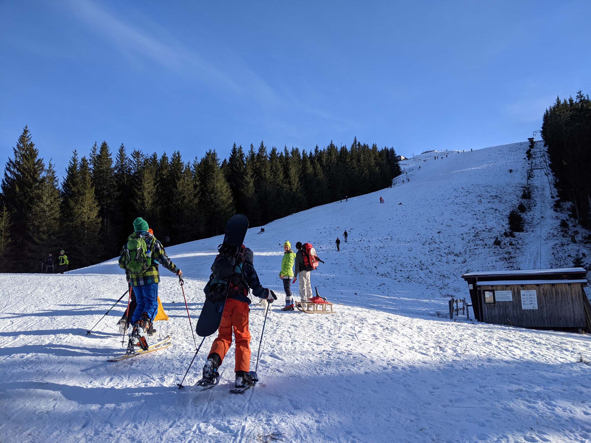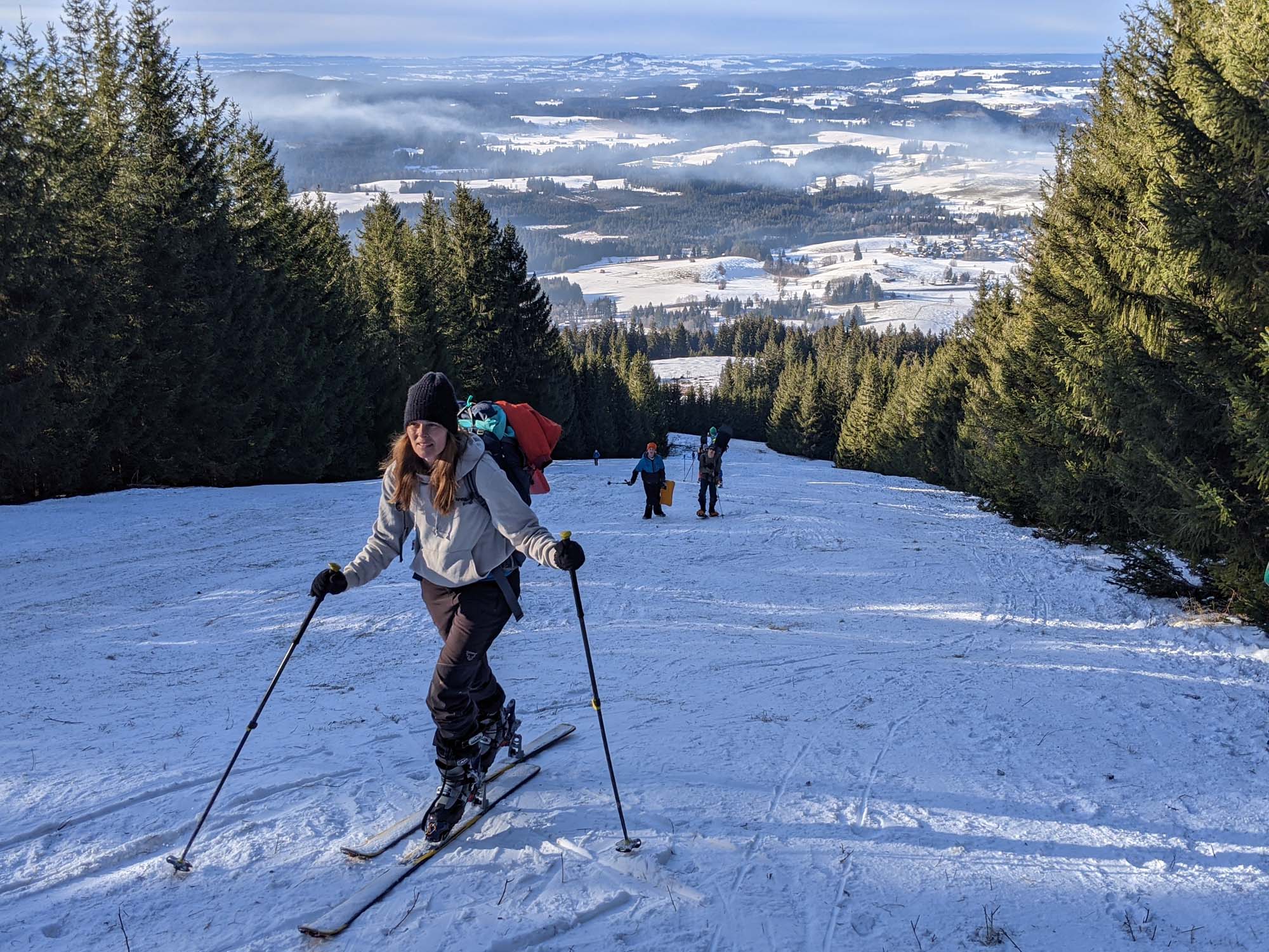 Tourenverhältnisse: Der Aufstieg über die (beim Hörnle ja nicht beschneite) Skipiste war gut möglich ... die Abfahrt gerade so noch möglich. Aber immer wieder Bodenkontakt. Man muss sehr gut auf Steine achten!