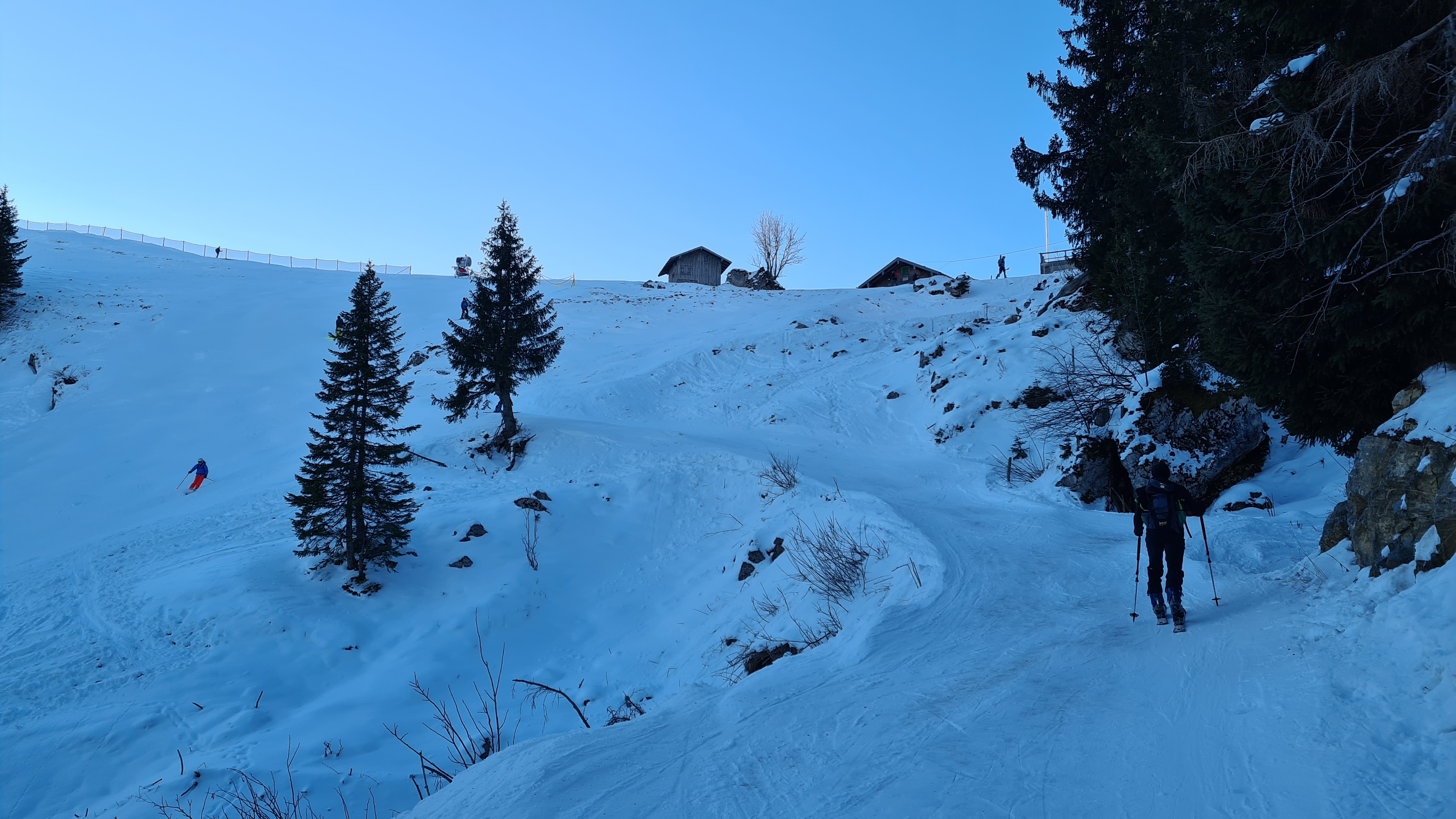 - Bis zur Jaga-Hüttn (1483 m) auf ziemlich gutem Schnee, dank beschneiter Piste.