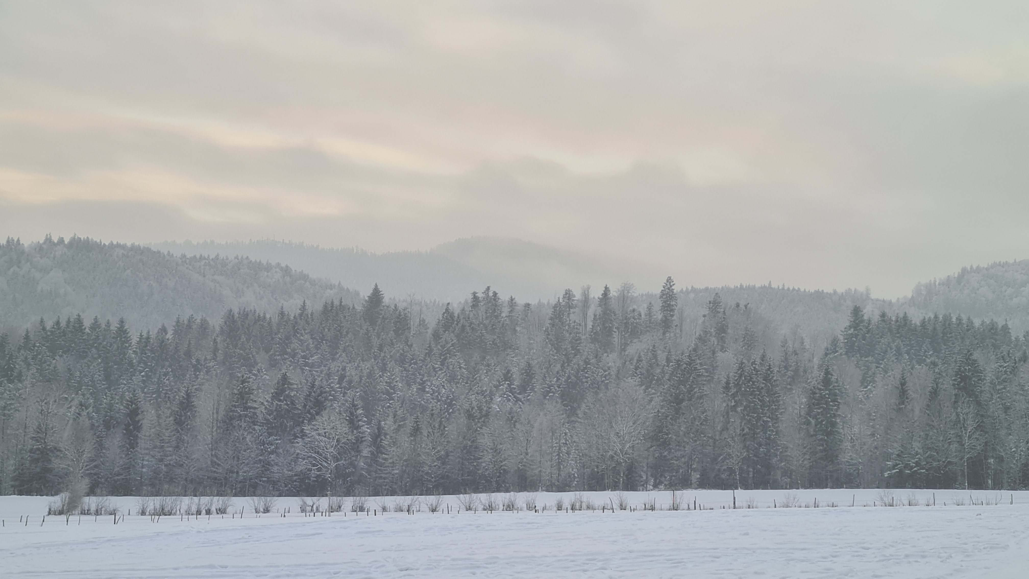 Prognose: Es hat am Vormittag nur ganz unergiebig geschneit - teilweise kam sogar die Sonne raus. Gegen Mittag dann wieder ein paar Flocken, aber das sah nicht so aus als würde es noch mehr schneien.