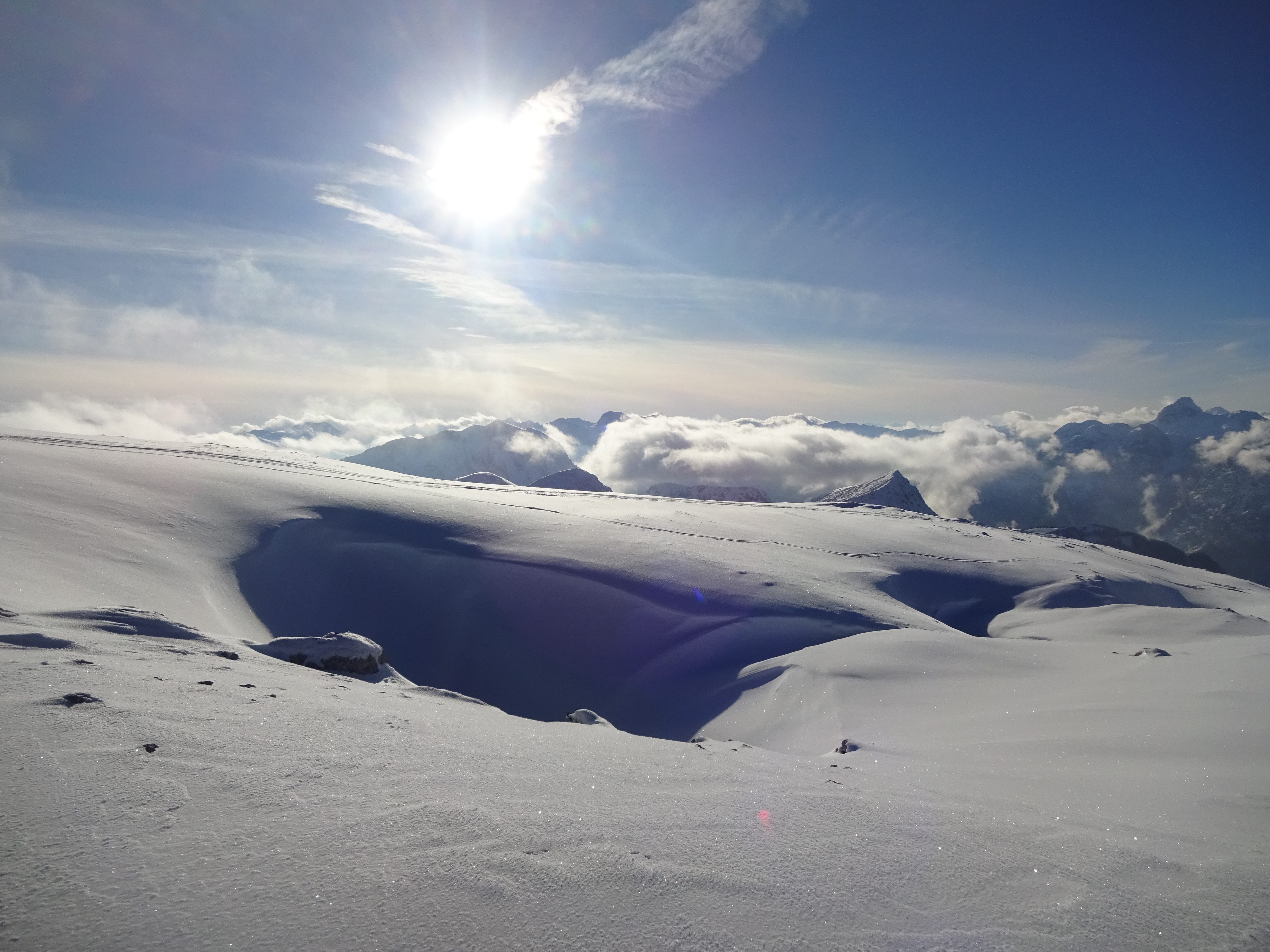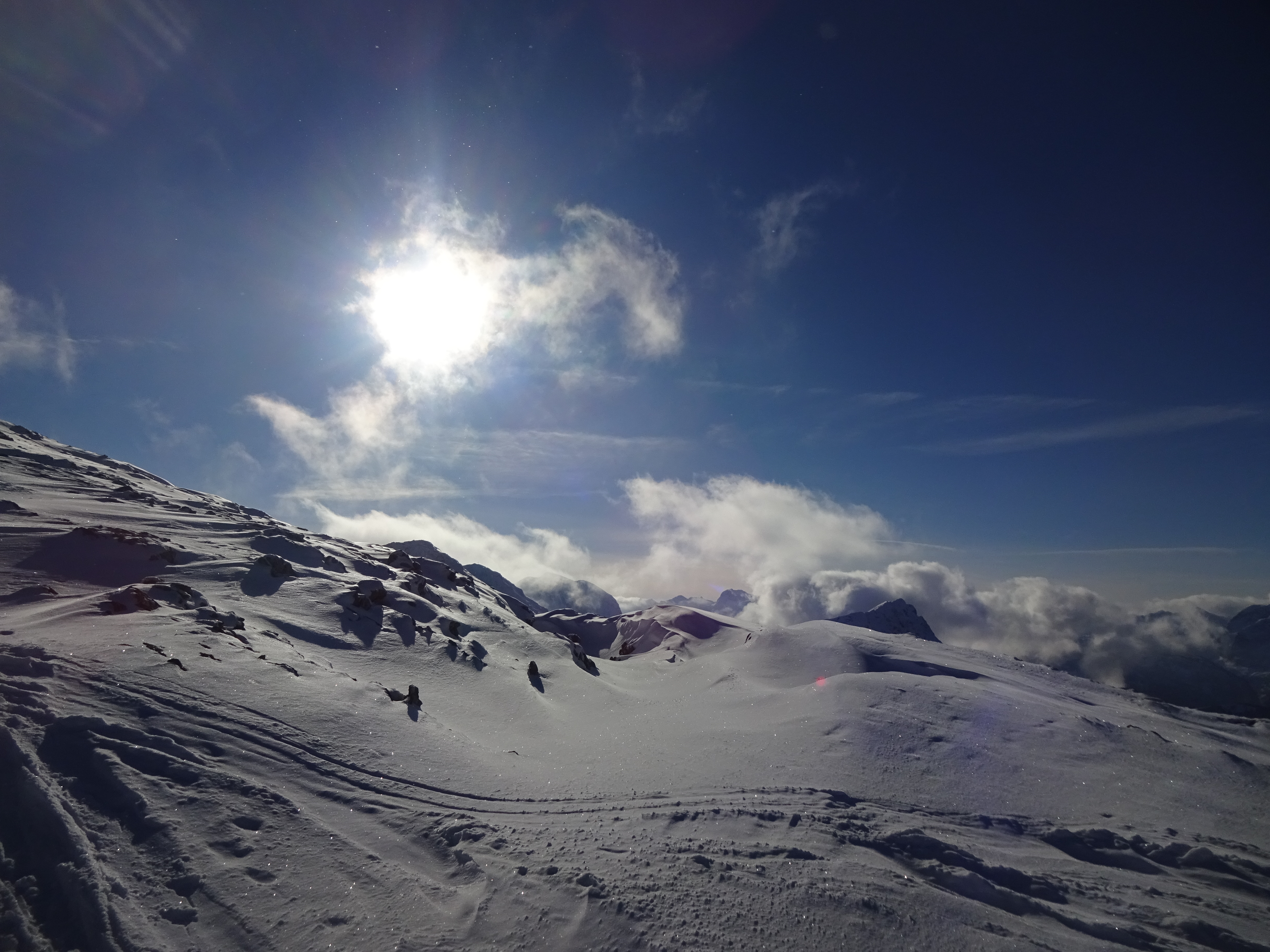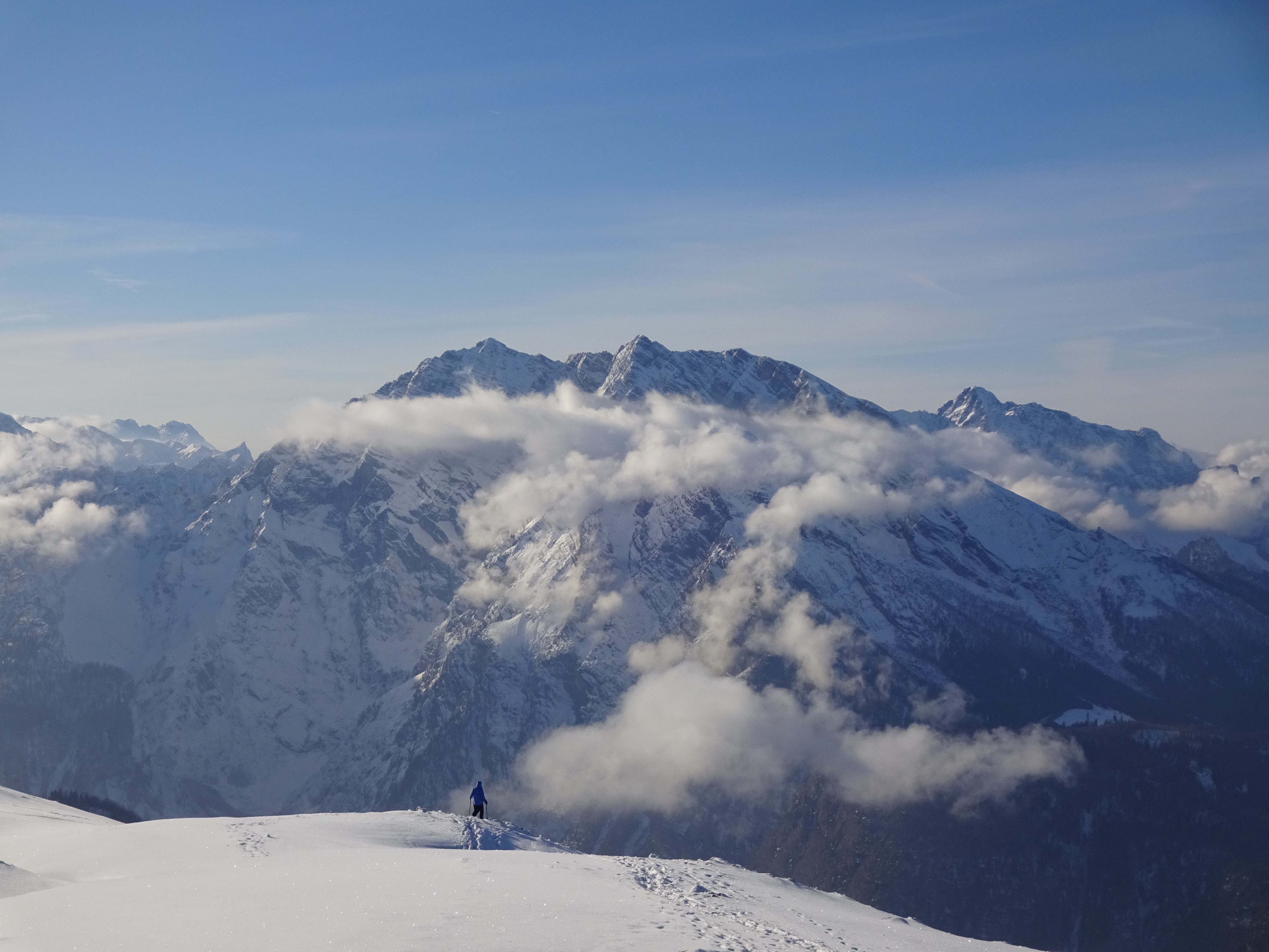 Sonstiges: Während im Umfeld des Jenner und des Stahl-Hauses einiges los war (Pistenskitouren-Geher, Rodler, Wanderer, Hunde), waren wir am Schneibstein fast ganz allein. Am Gipfel waren heute über den Tag verteilt maximal 7 Leute (uns eingerechnet).