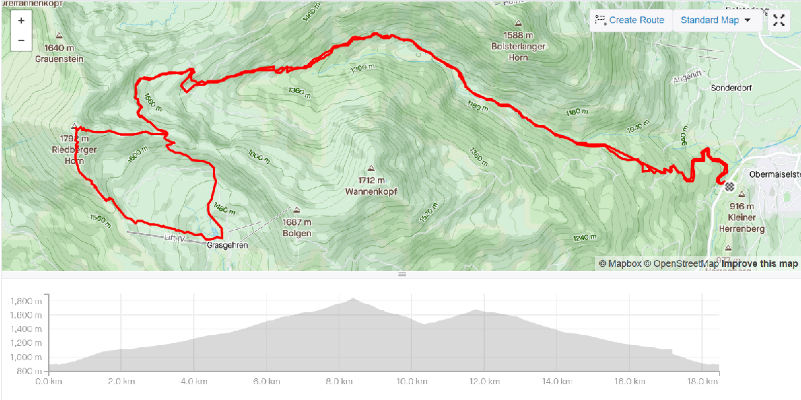 Gipfel und Höhe: Riedberger Horn (1700), ca. 1200 hm, ca. 20 km