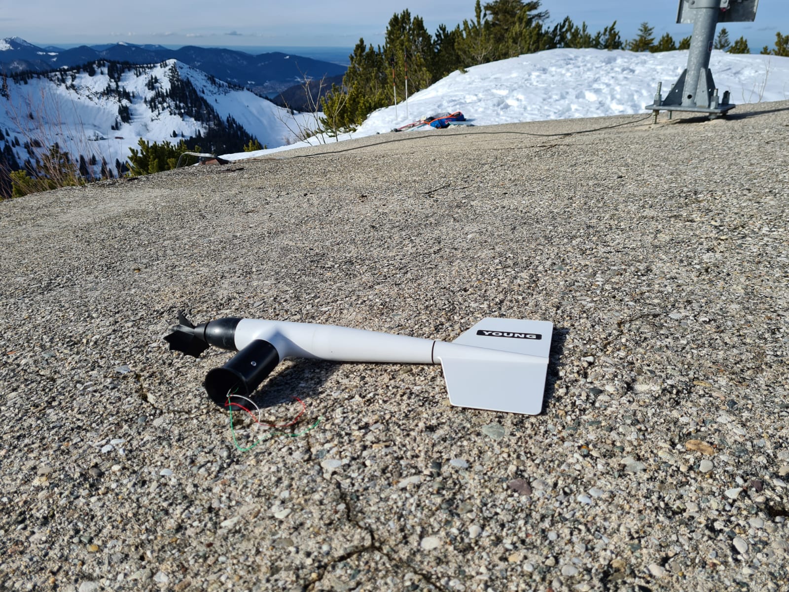 Sonstiges: Die Windmessstation am Gipfel ist defekt. Das Teil mit dem Rotor lag abgerissen am Boden - siehe Bild