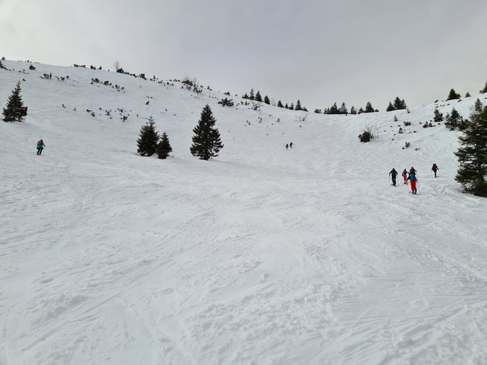 Tourenverhältnisse: Sehr gut. Wir sind spät gestartet, weil wir am Morgen Hartschnee befürchtet hatten. Da aber die Nacht nicht klar war, und so die Abstrahlung fehlte, war es wohl am morgen schon weich, wie andere Tourengeher berichteten.