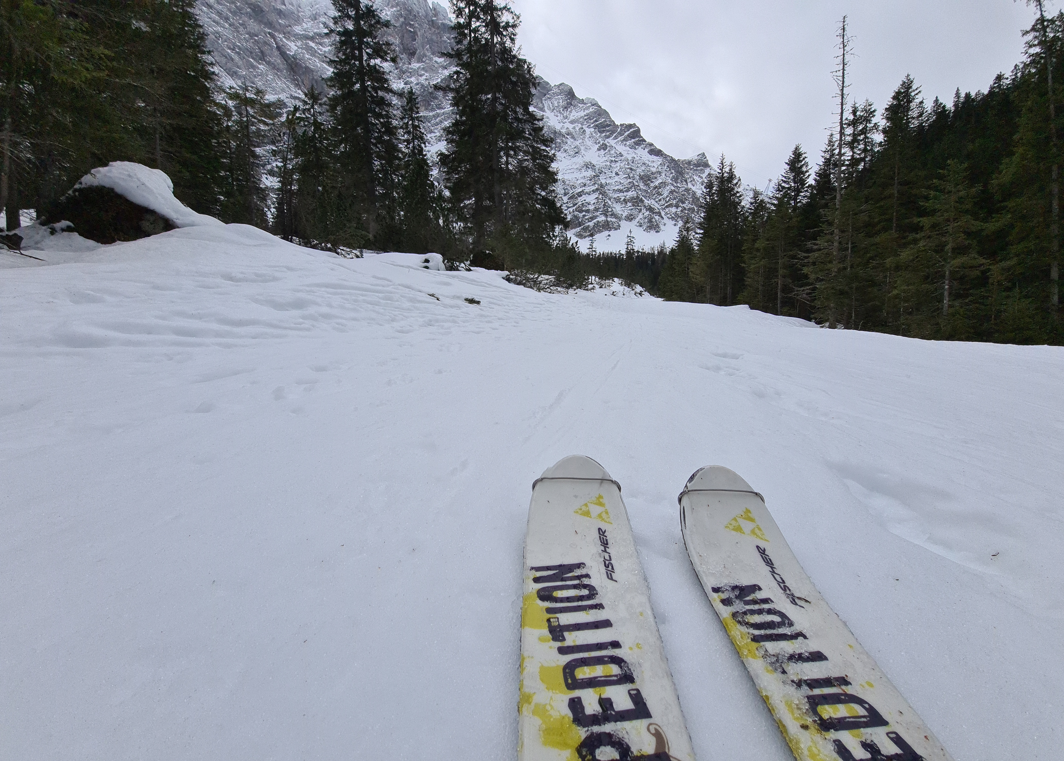 Die Tour liegt vollkommen im Schatten der Zugspitze. Sehr schöne Tour wenn man sowieso nicht mit Sonnenschein rechnen kann.