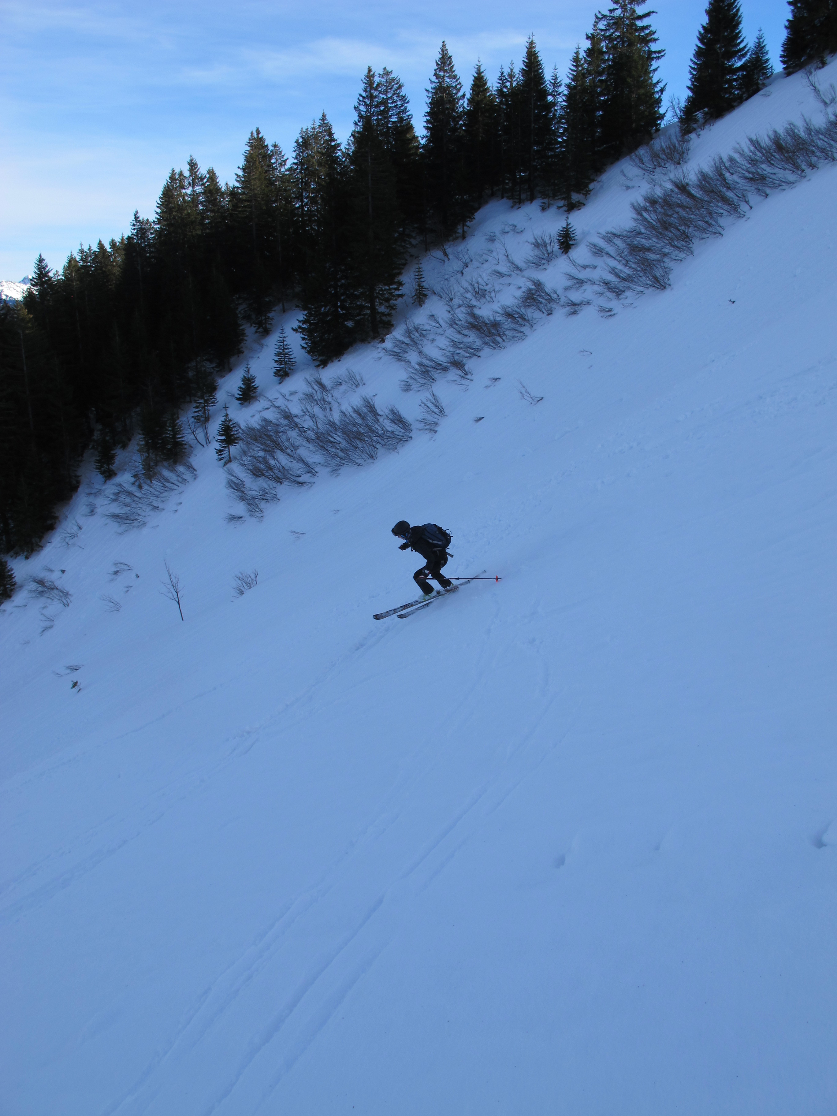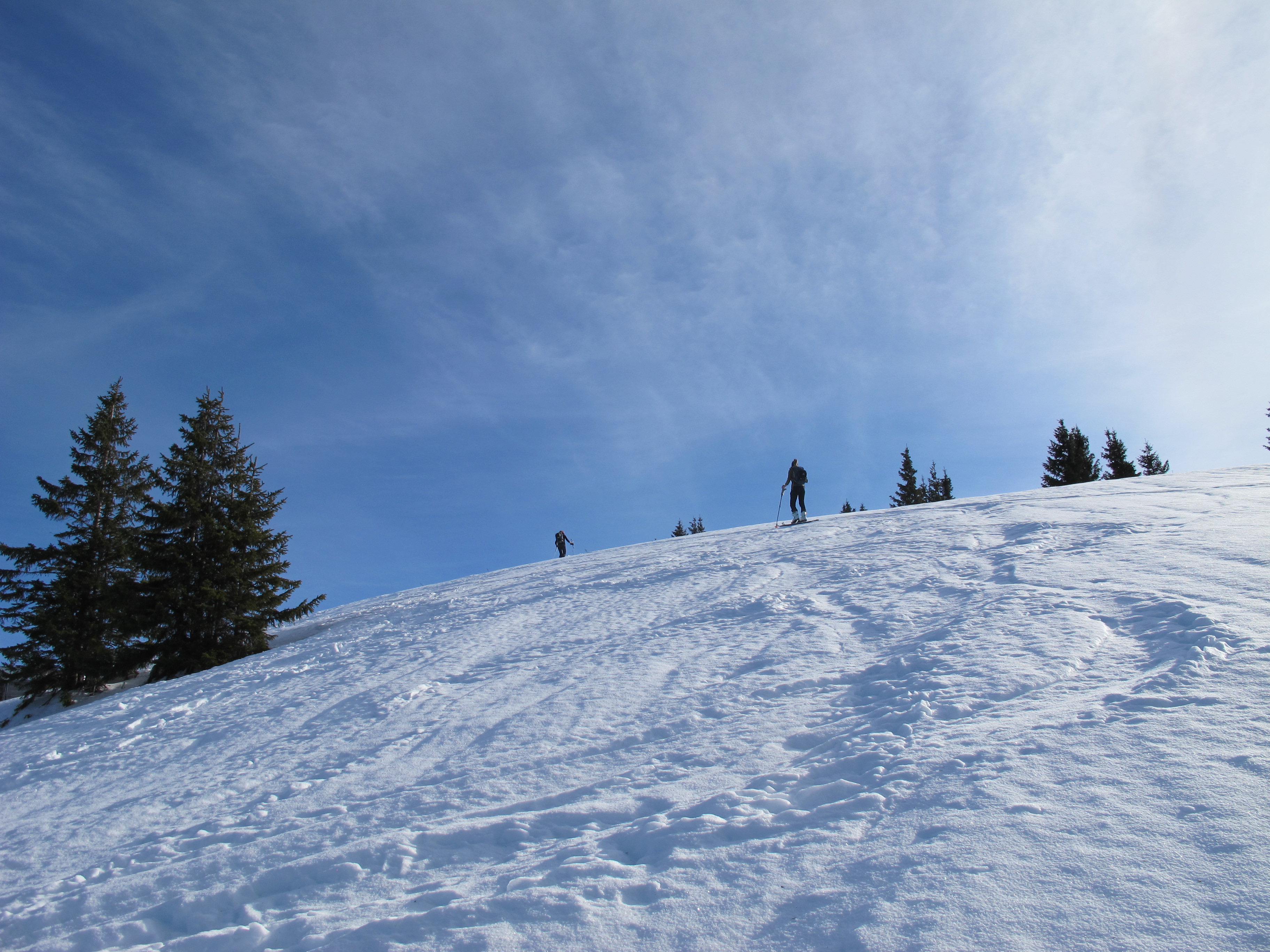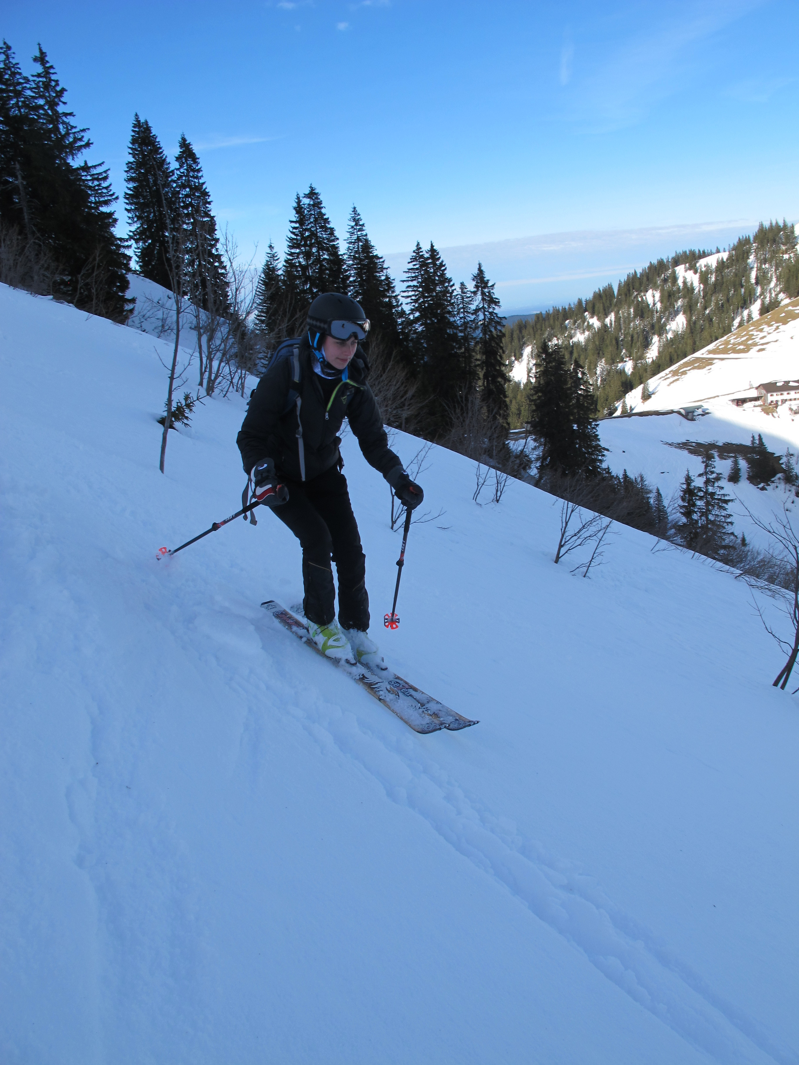 Sonstiges: von der Hufnagelstube die Forststraße, dann rechts über Portnesalm zum Alten Wallberghaus und über Bergstation zum Wallberggipfel, Skidepot kurz unterm Gipfel, Abfahrt über Kircherl zurück zum Wallberghaus und Aufstieg zum Setzberg. Abfahrt zuerst den Rücken nach Osten um dann nordseitig einen steilen Hang zurück zur Aufstiegsspur.