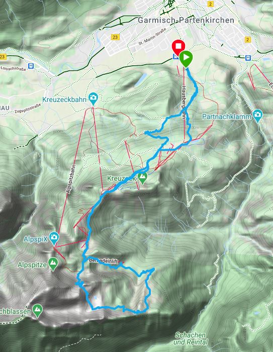 Ausgangspunkt: Parkplatz Hausbergbahn 733m