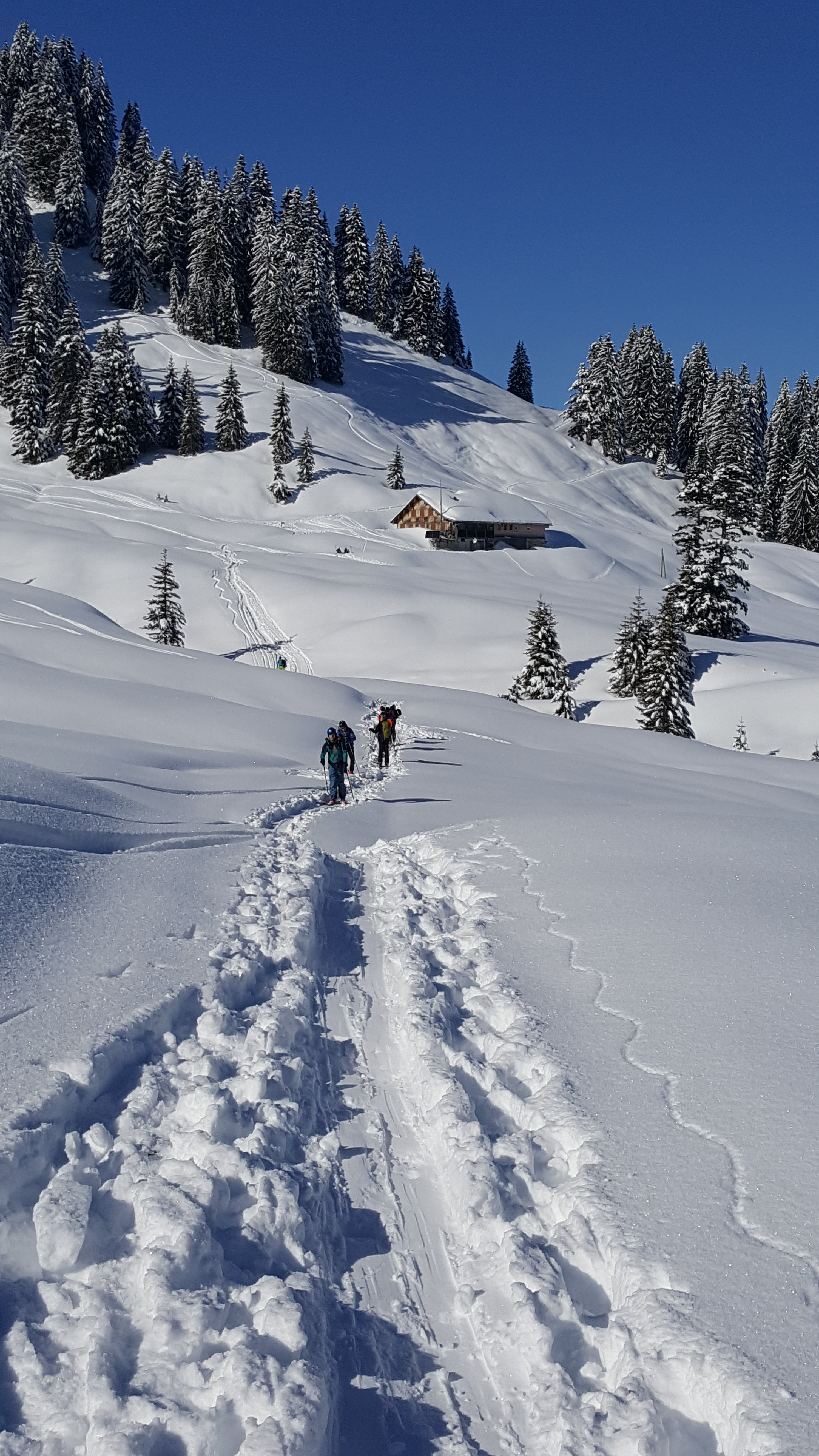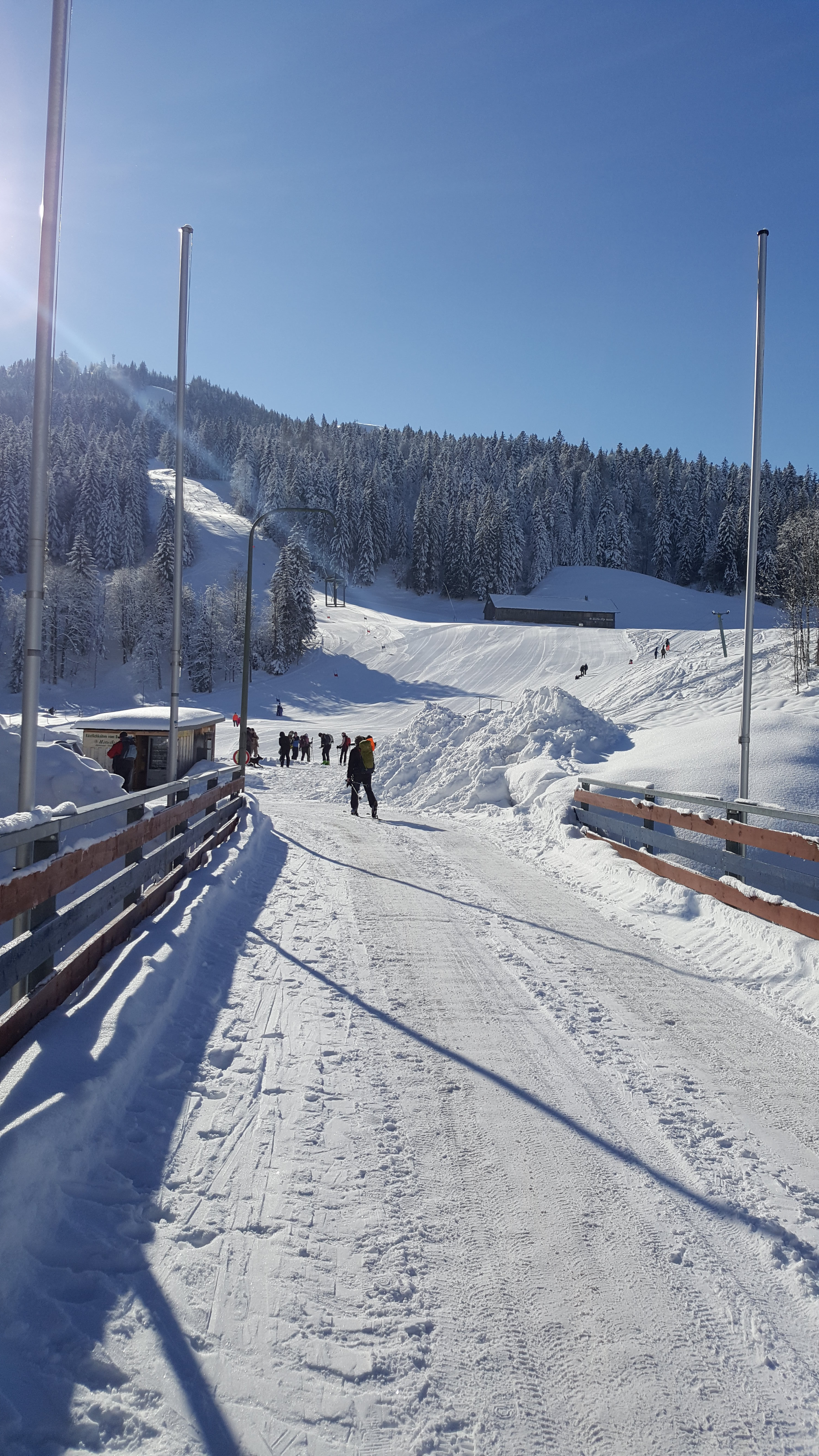 Tourenverhältnisse: Endlich wieder Zeit für eine Skitour. Die geschlossenen Skigebiete bieten da einige Möglichkeiten, die sonst ja nicht zur Verfügung stehen. So haben wir uns für eine kleine Rundtour am Balderschwanger Skigebiet entschieden. Ab PP Schelpenbahn auf gespurten Wegen zur Bodenhütte und weiter aufwärts zur Käsehütte (beide Hütten mit Ausserhausverkauf!). Weiter über die Bergstation des Schwarzenberglifts und am Kamm entlang bis zur Bergstation der Hochschelpenbahn. Hier alles tief verschneit und noch lange nicht alles verspurt.