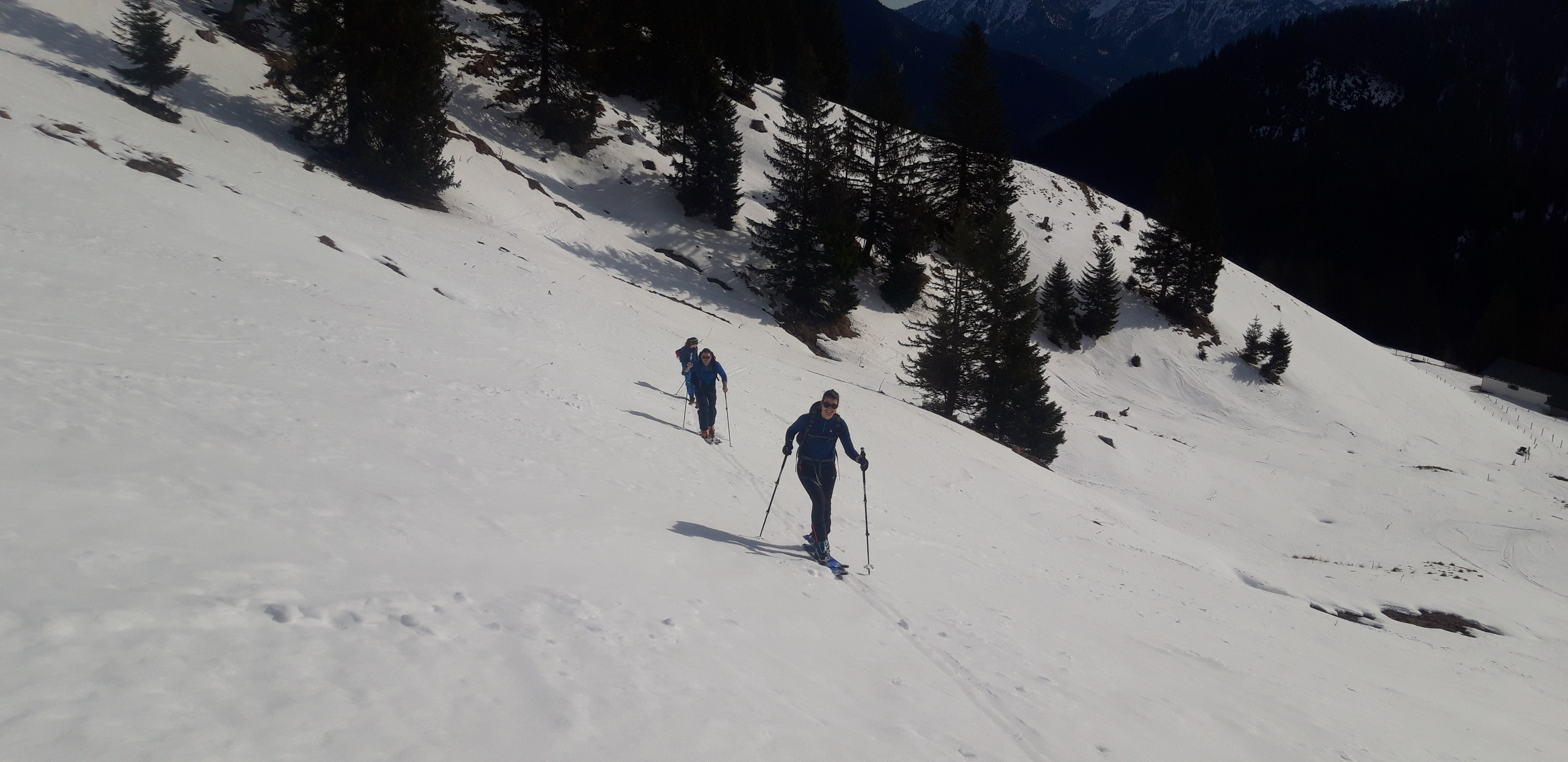 Prognose: Heute konnte man gerade so noch zum PP mit den Skier "fahren" (eher rumstopseln), aber unten wird es wohl morgen schon Tragepassagen geben. Oberhalb der Siebli-Diensthütte (beim Wasserfall) ist die Schneelage aber noch gut und wird auch ein paar warme Tage überstehen.