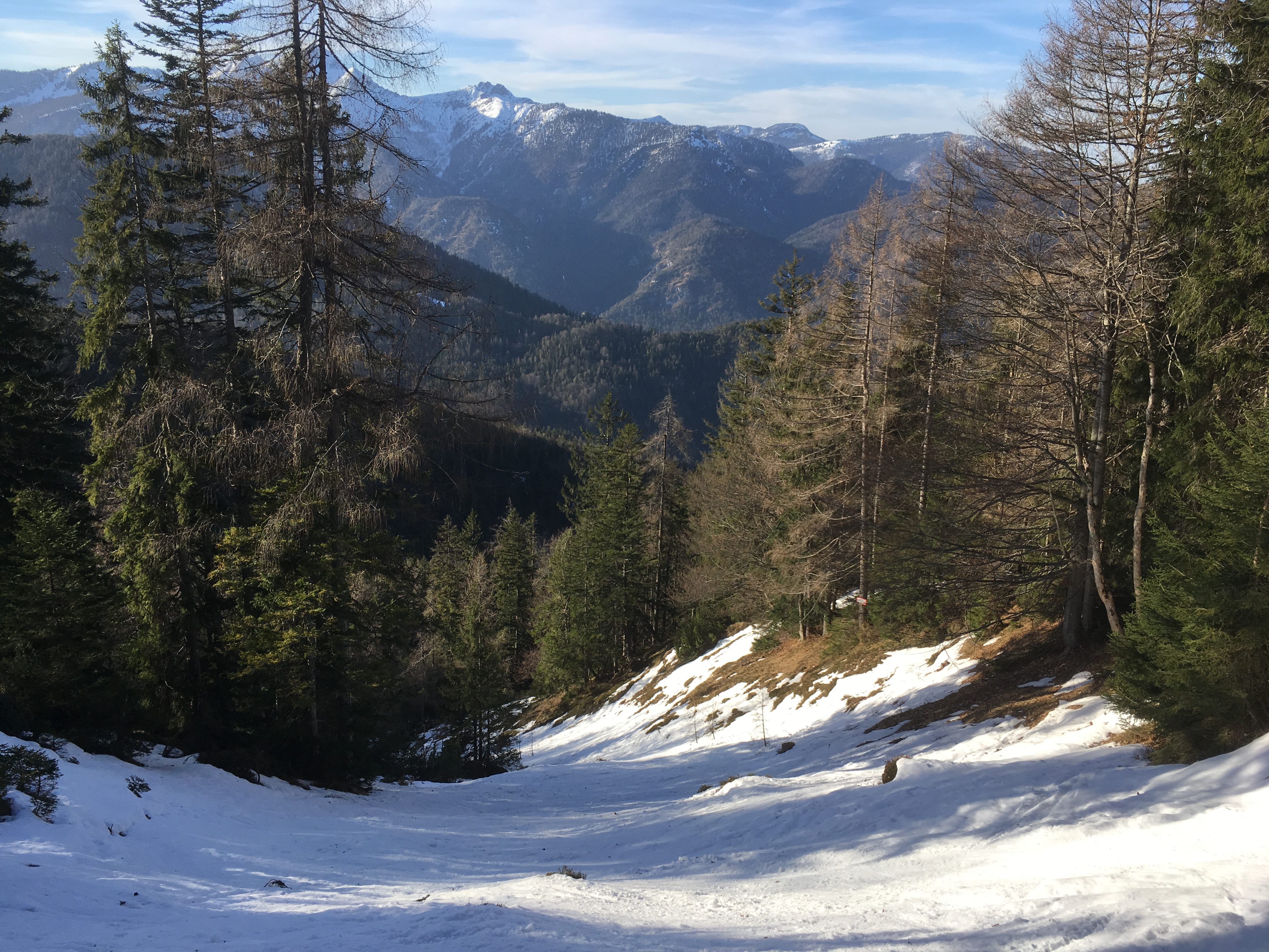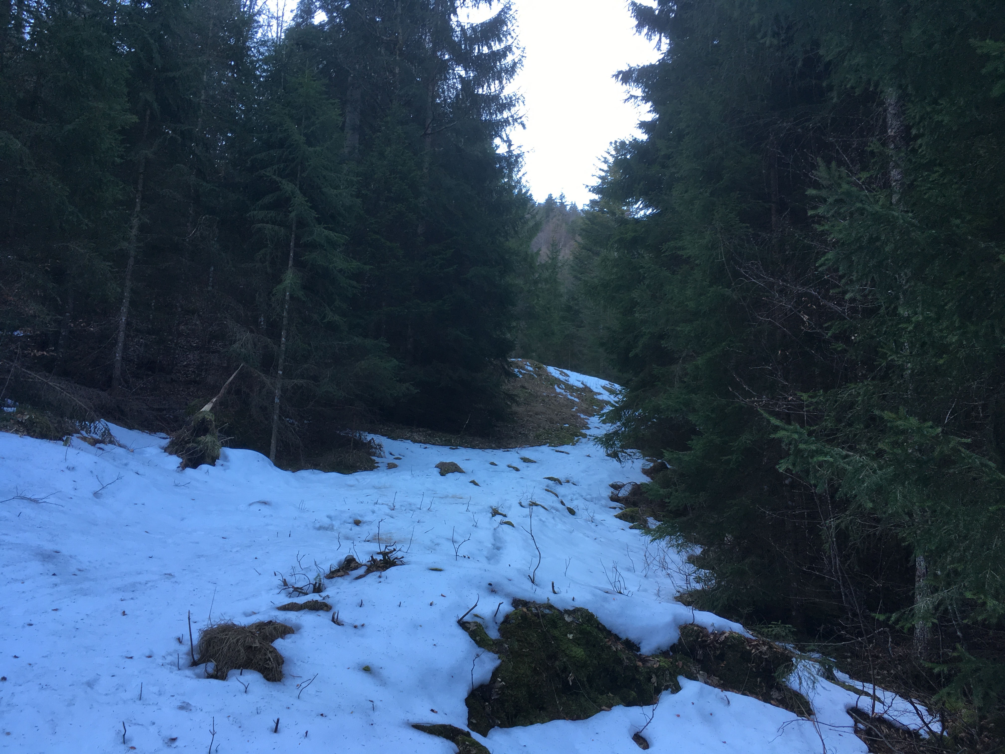 Prognose: Straße dürfte weiter rasch ausapern, oben die Skischneise aber leider auch --> Tragestrecke wird noch deutlich weiter