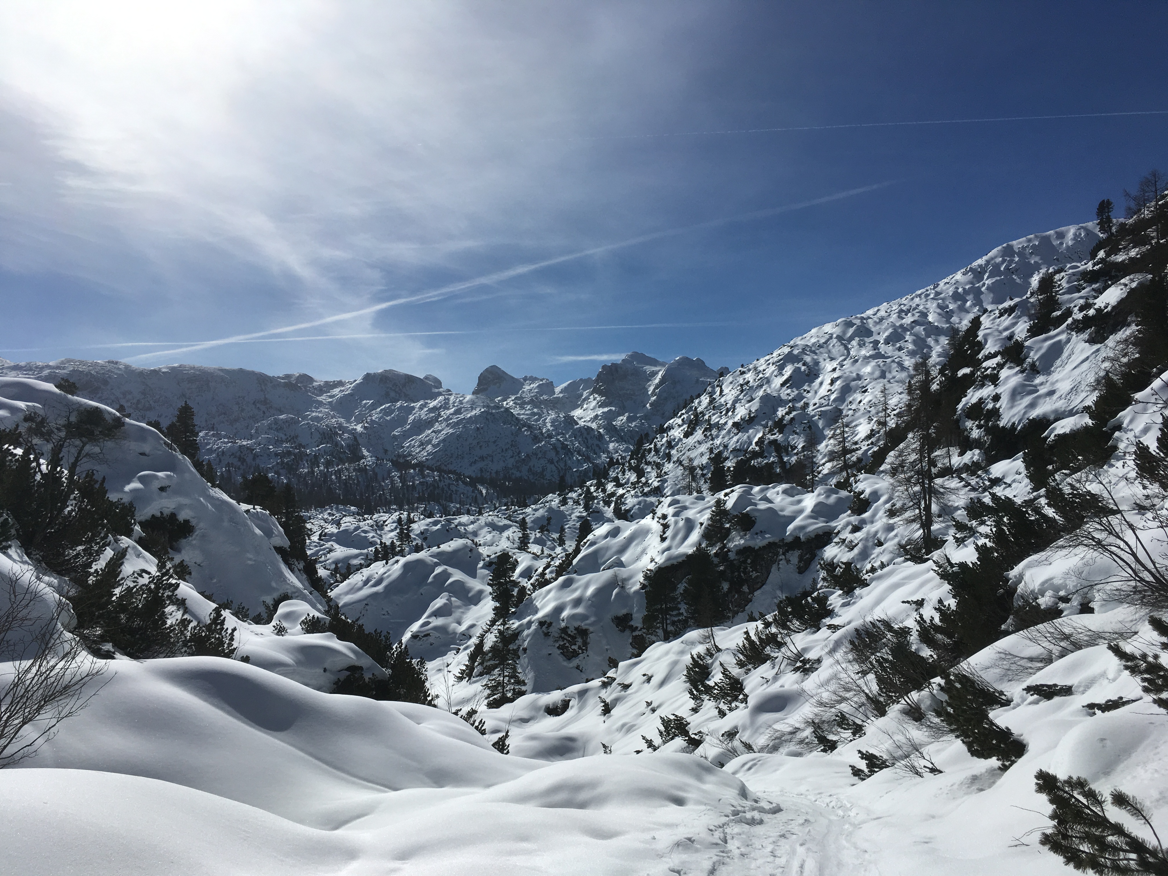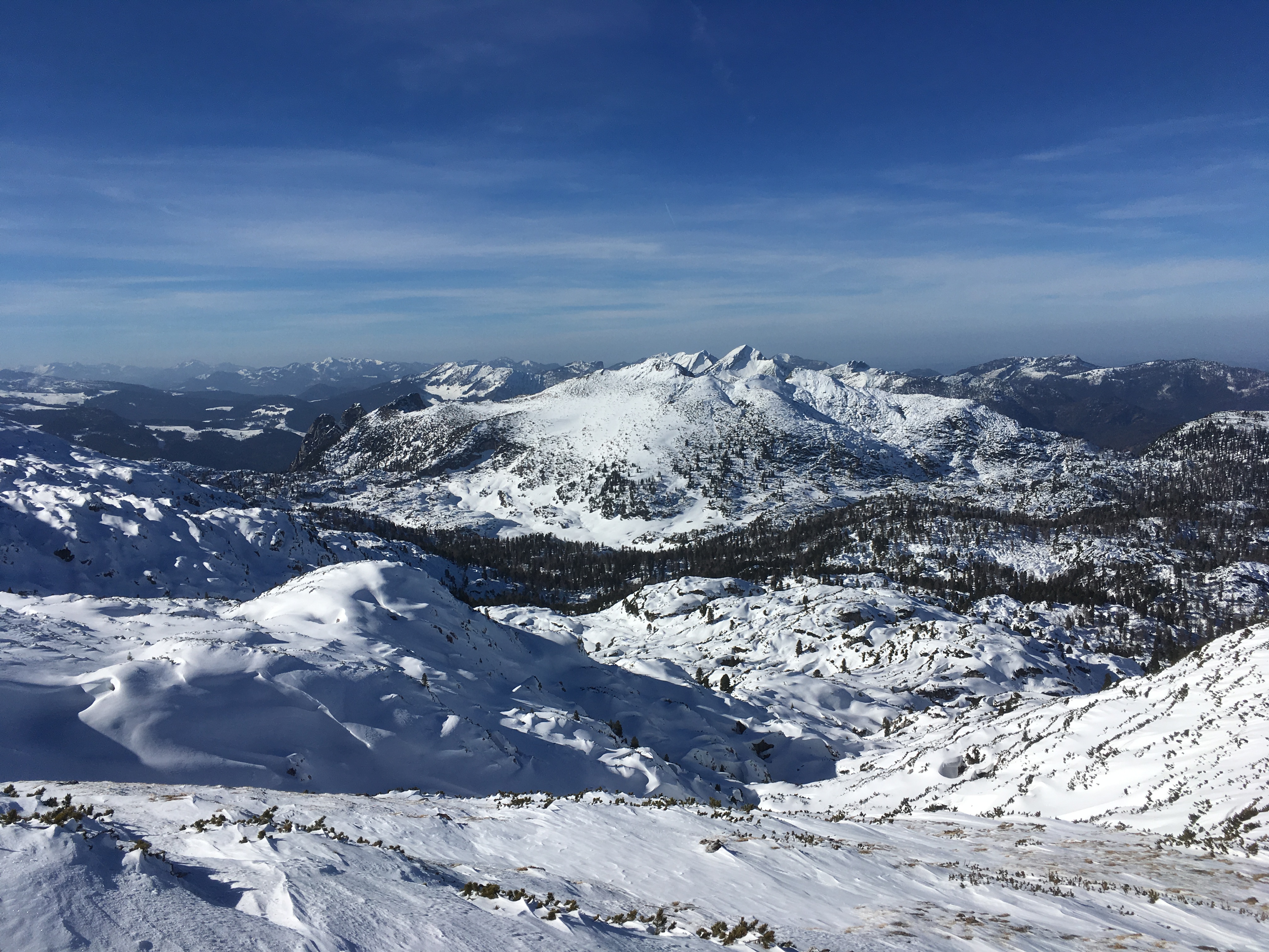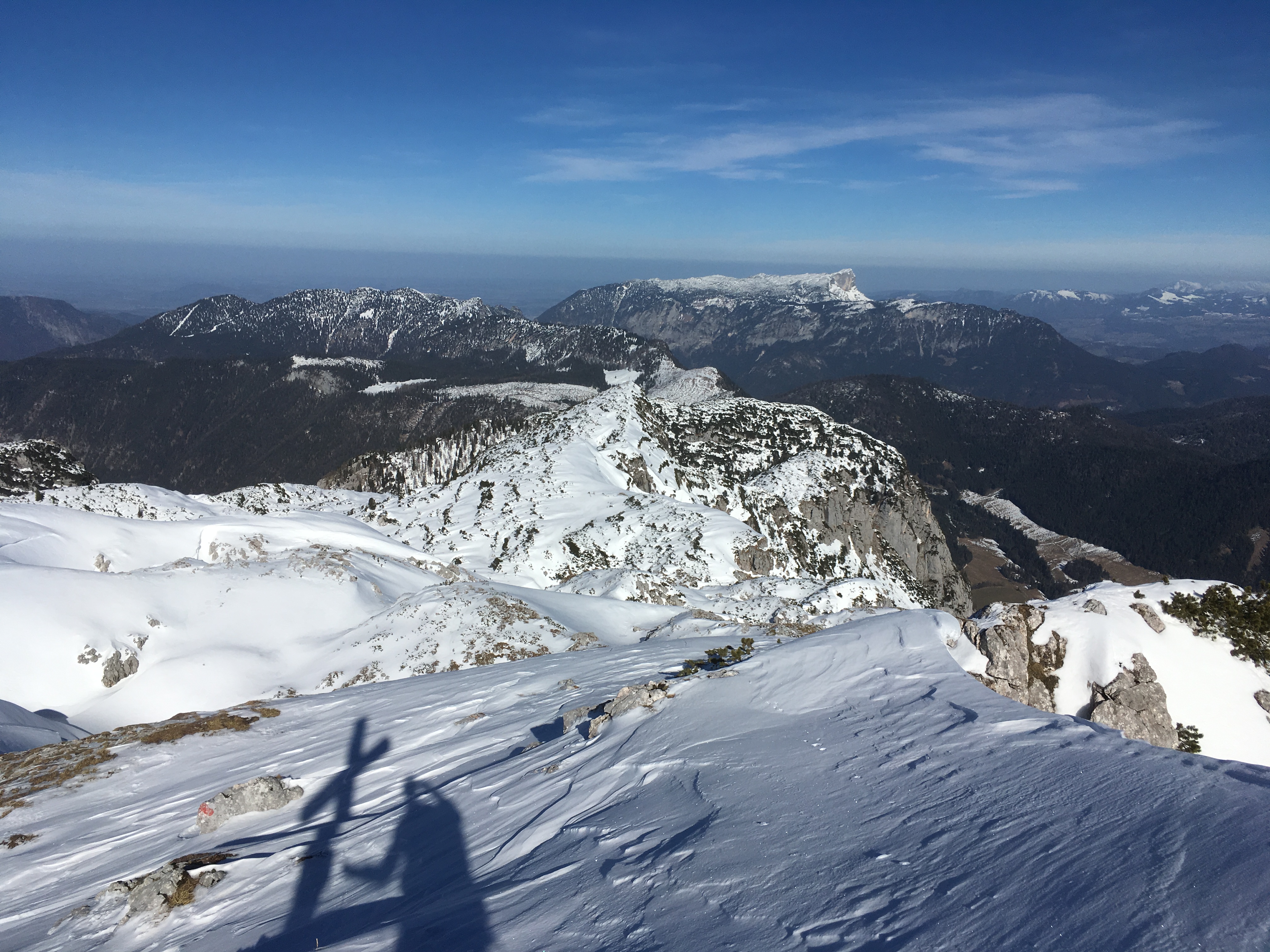 Die Abfahrt bis zur Neuen Traunsteiner Hütte bietet dann viele kleine Gegenanstiege - Reiter Alm halt. Also skifahrerisch sind auf der Reiter Alm die klassischen Touren sicher besser. Landschaftlich sind sie ohnehin alle ein Traum. Edelweißlahnerkopf und Schottmalhorn werden mit Skiern wohl eher im Rahmen der Überschreitung der Reiter Alm (also weiter Richtung Reiter Steinberg) gemacht. Trotzdem: Wieder eine Skilücke geschlossen.