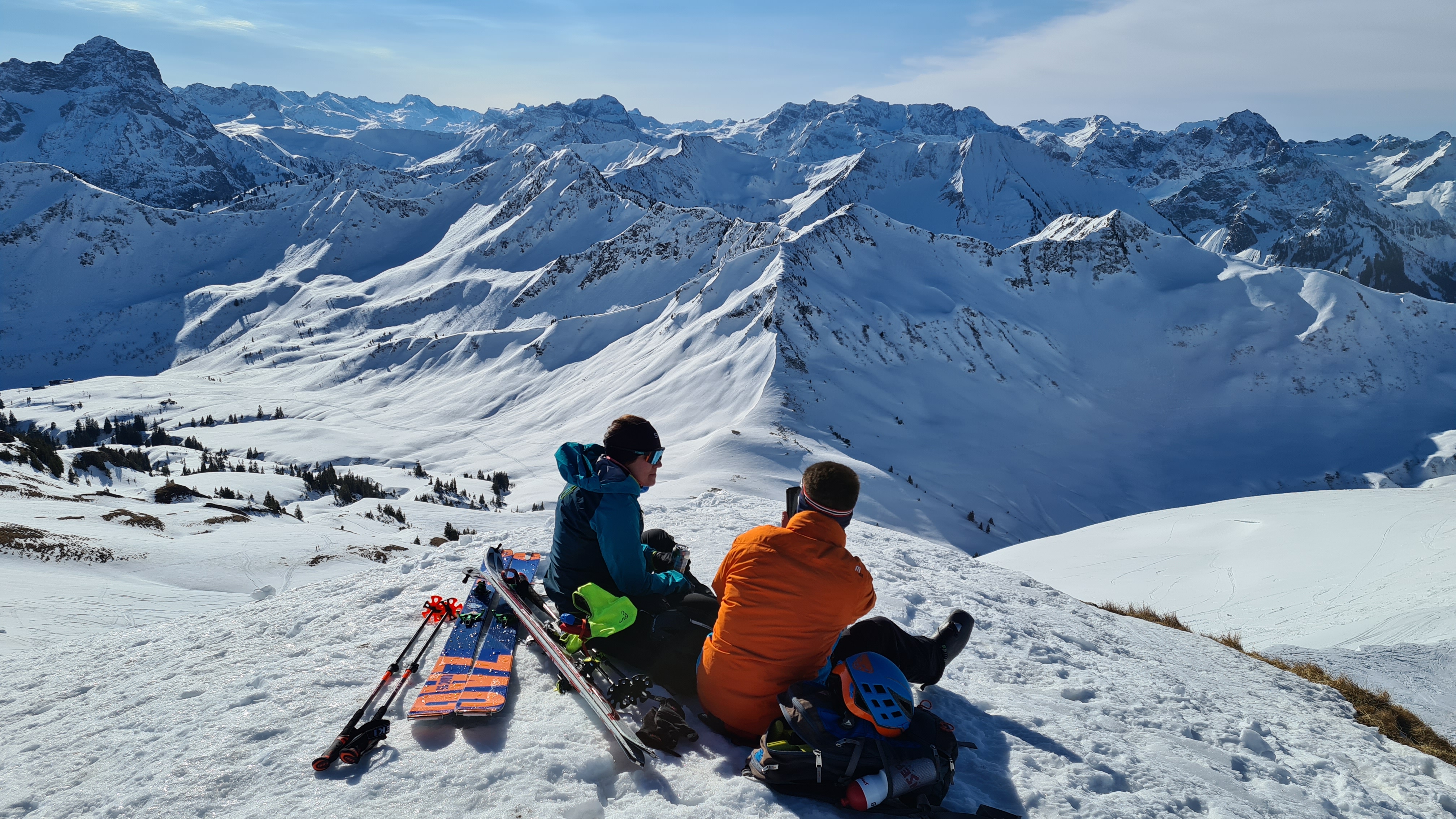 Sobald man auf den freien, weiten und sanften Hängen unter dem beeindruckenden Hohen Ifen und in Richtung Hehlekopf ist, alles wunderbar zu gehen. Da kommt man Skitourentrance ;-)