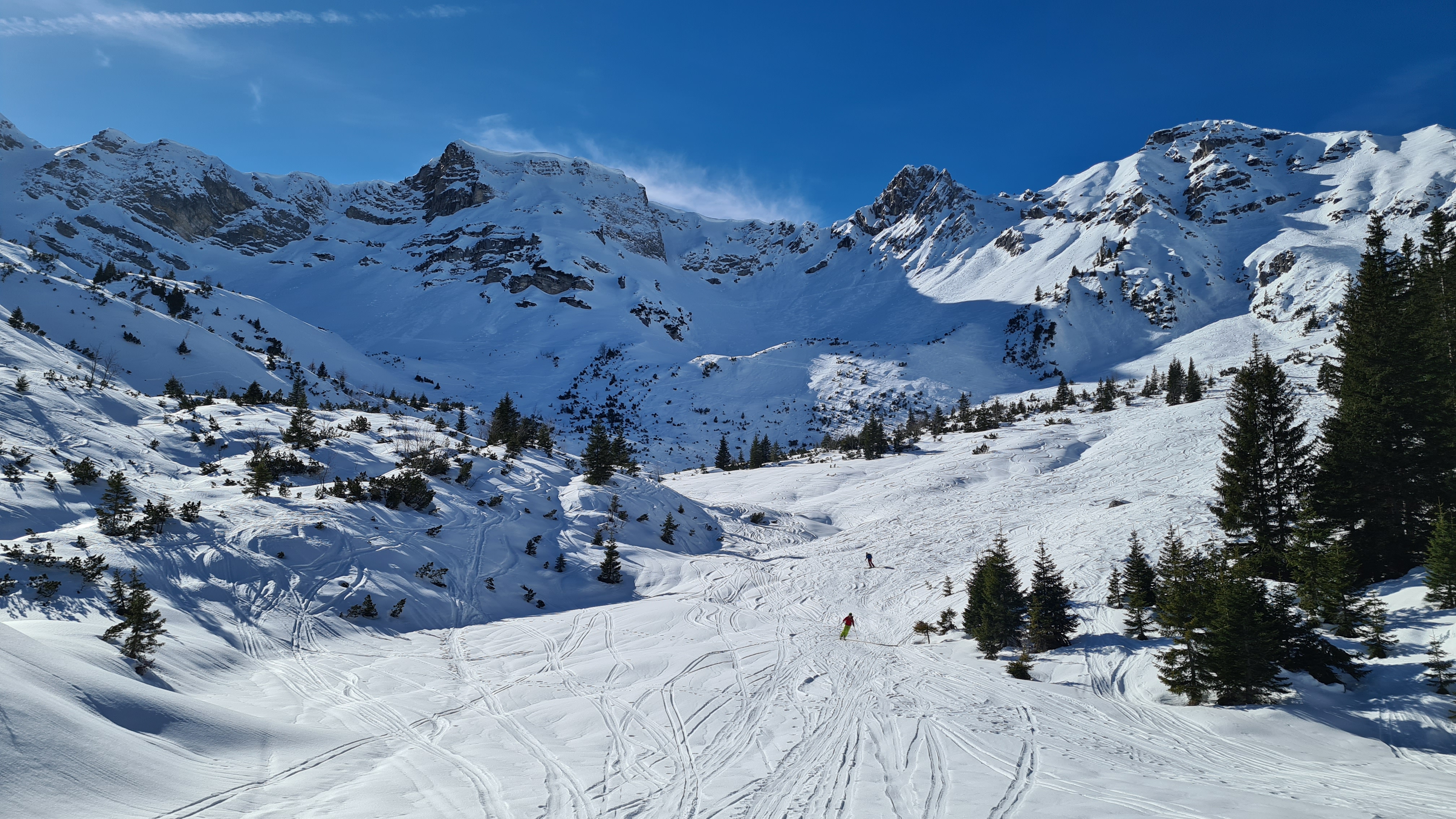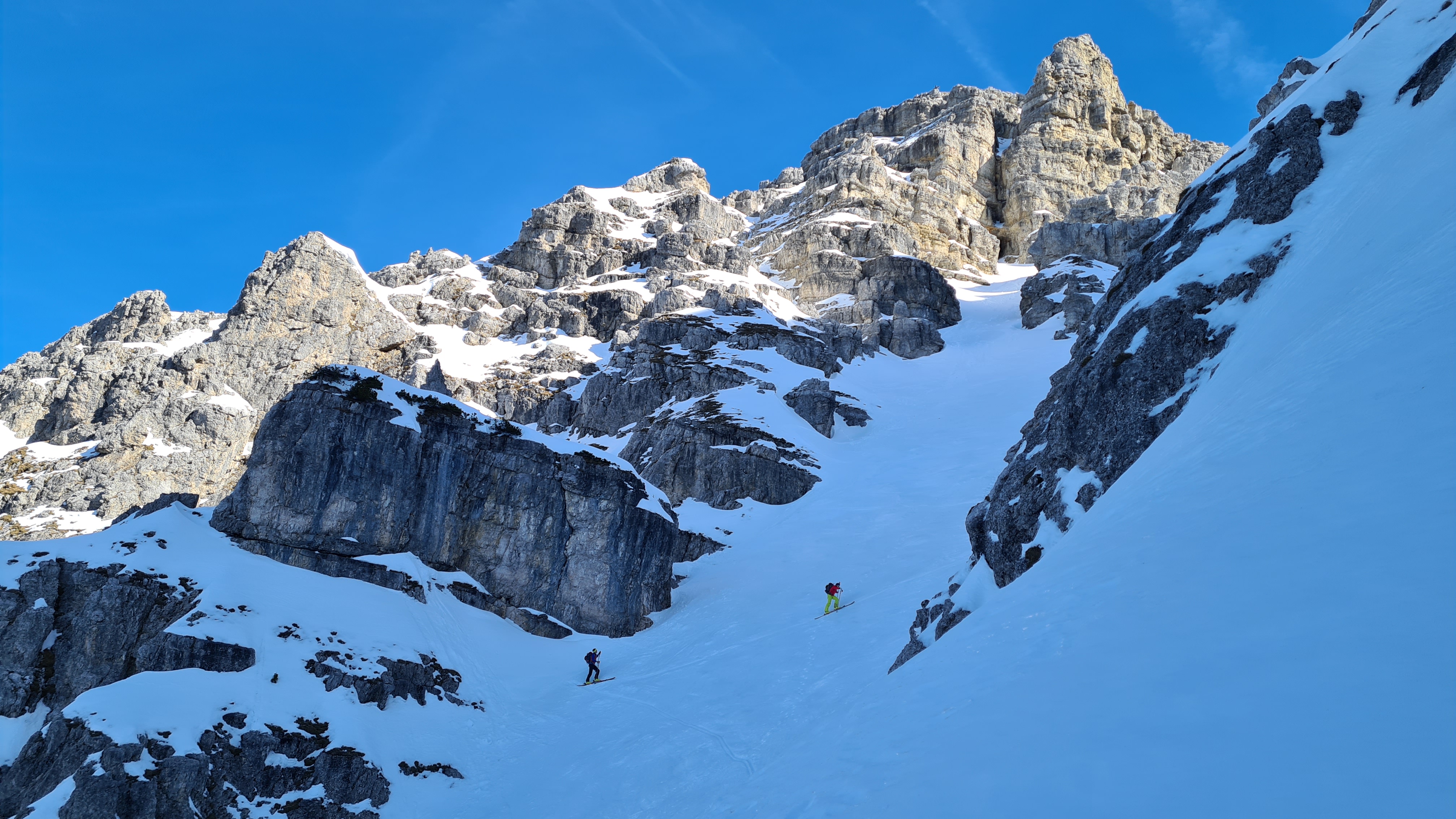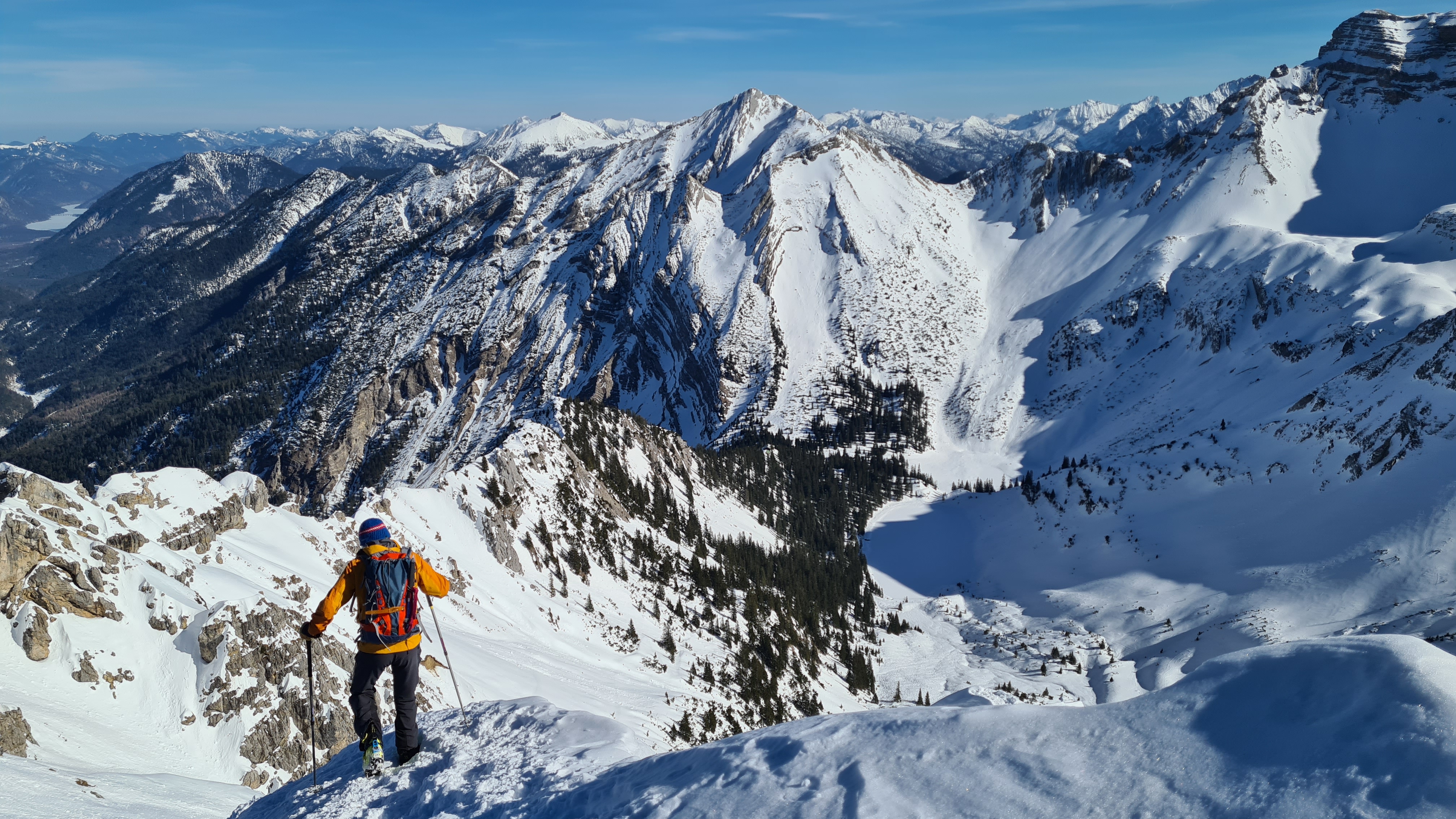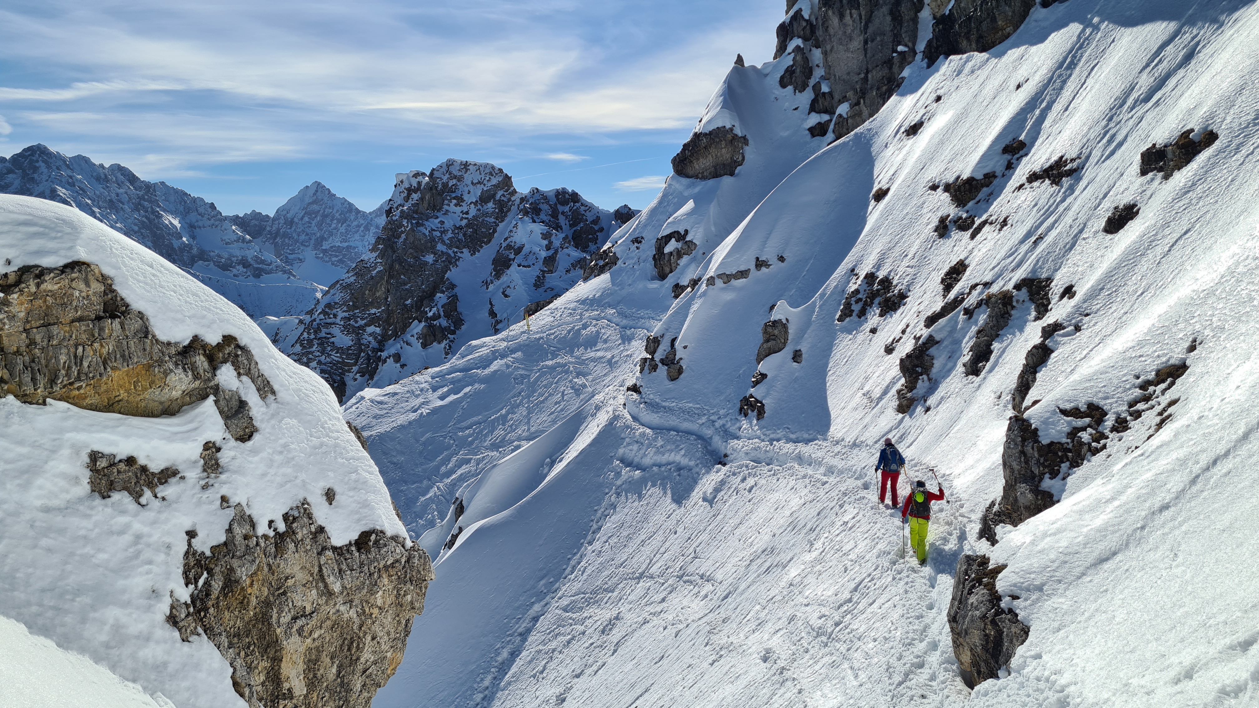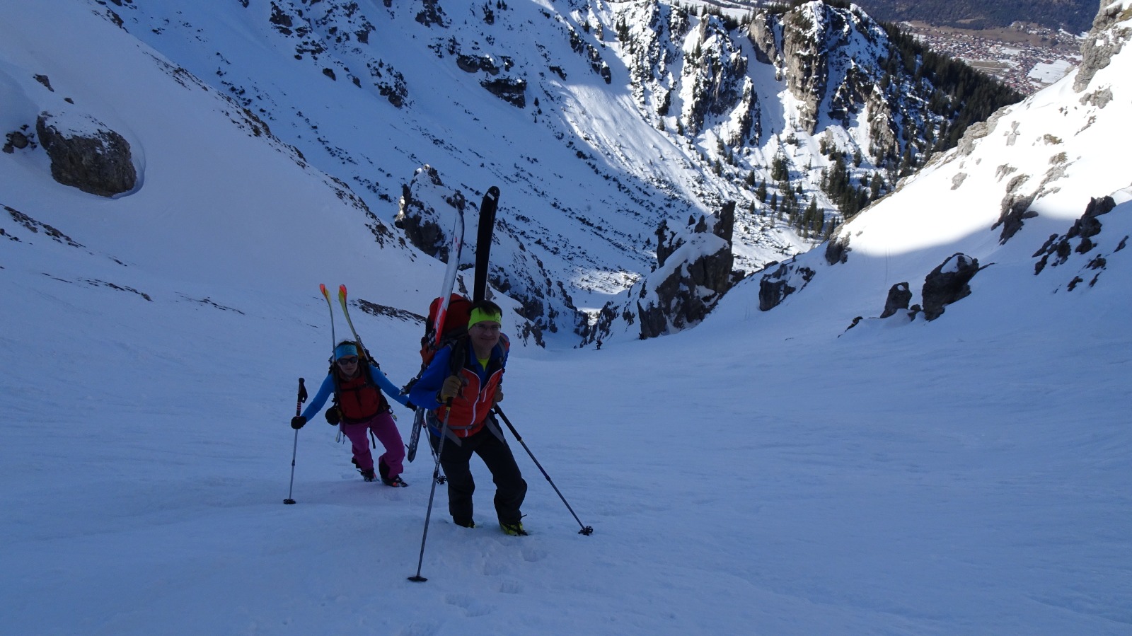 Tourenverhältnisse: unten ca. 15 min. Skitragen, dann gings gut mit Skiern (nur wenige kurze Unterbrechungen). Karrenweg, Schöttelkar und Rinne zur Scharte hart gefroren. Abfahrt durch Ostrinne ( Schnee sonnseitig weich, schattseitig hatte es schon wieder angezogen) zur Soiernhütte und mit einem Gegenanstieg über die Fischbachalm zurück nach Krün. Forstweg war trotz den aperen Stellen noch mit Ski lohnenswert.