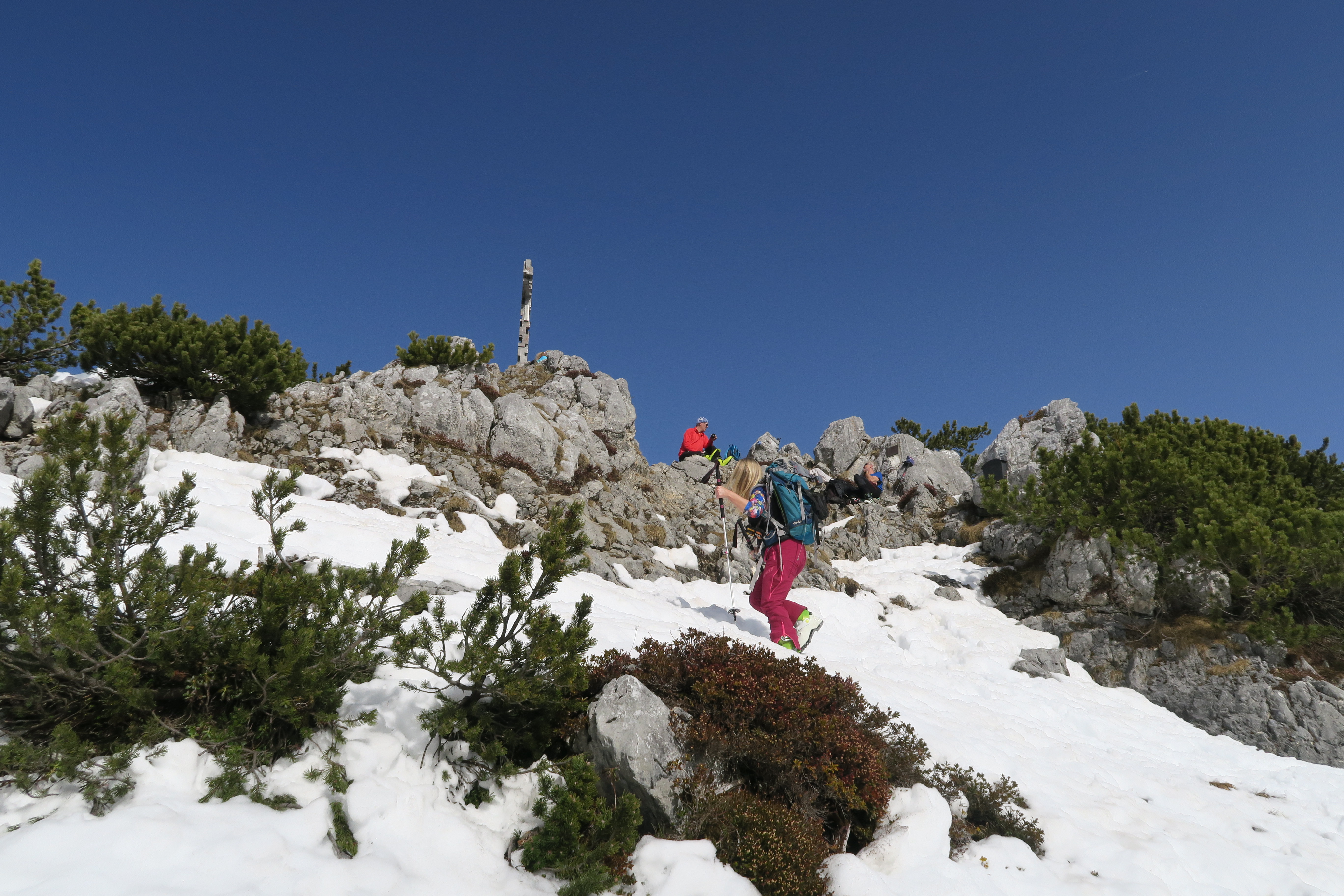 Tourenverhältnisse: Erstaunlich gut. Einzig die Forststraße apert zunehmend aus, da musste man auch heute schon die Ski immer wieder mal tragen.