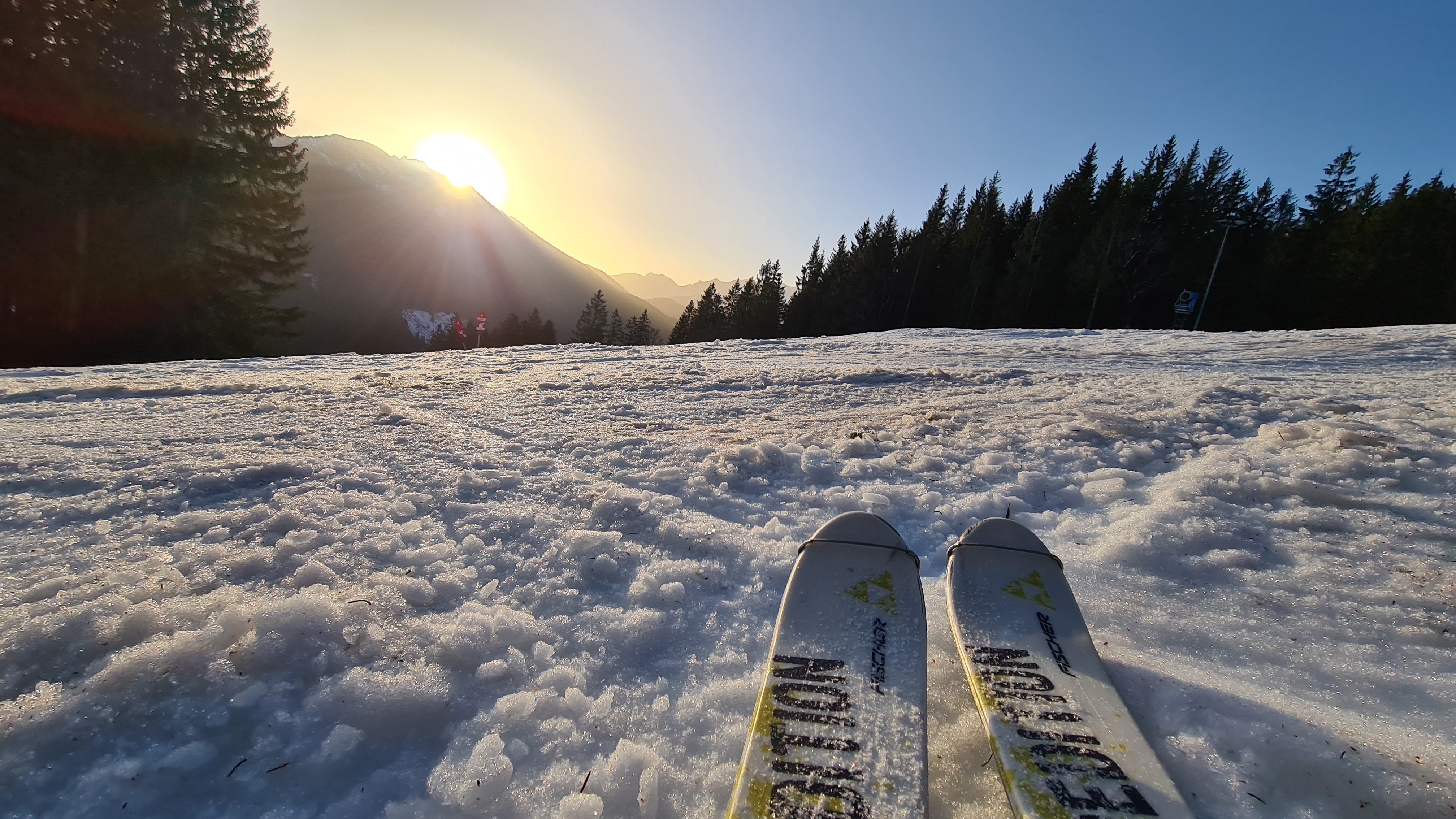 Für die total vereiste Kurve direkt unter der Stümpflingalm habe ich meine Ausklappharscheisen an den alten Steinski nochmal genutzt. Wäre aber wahrscheinlich auch ohne gegangen.