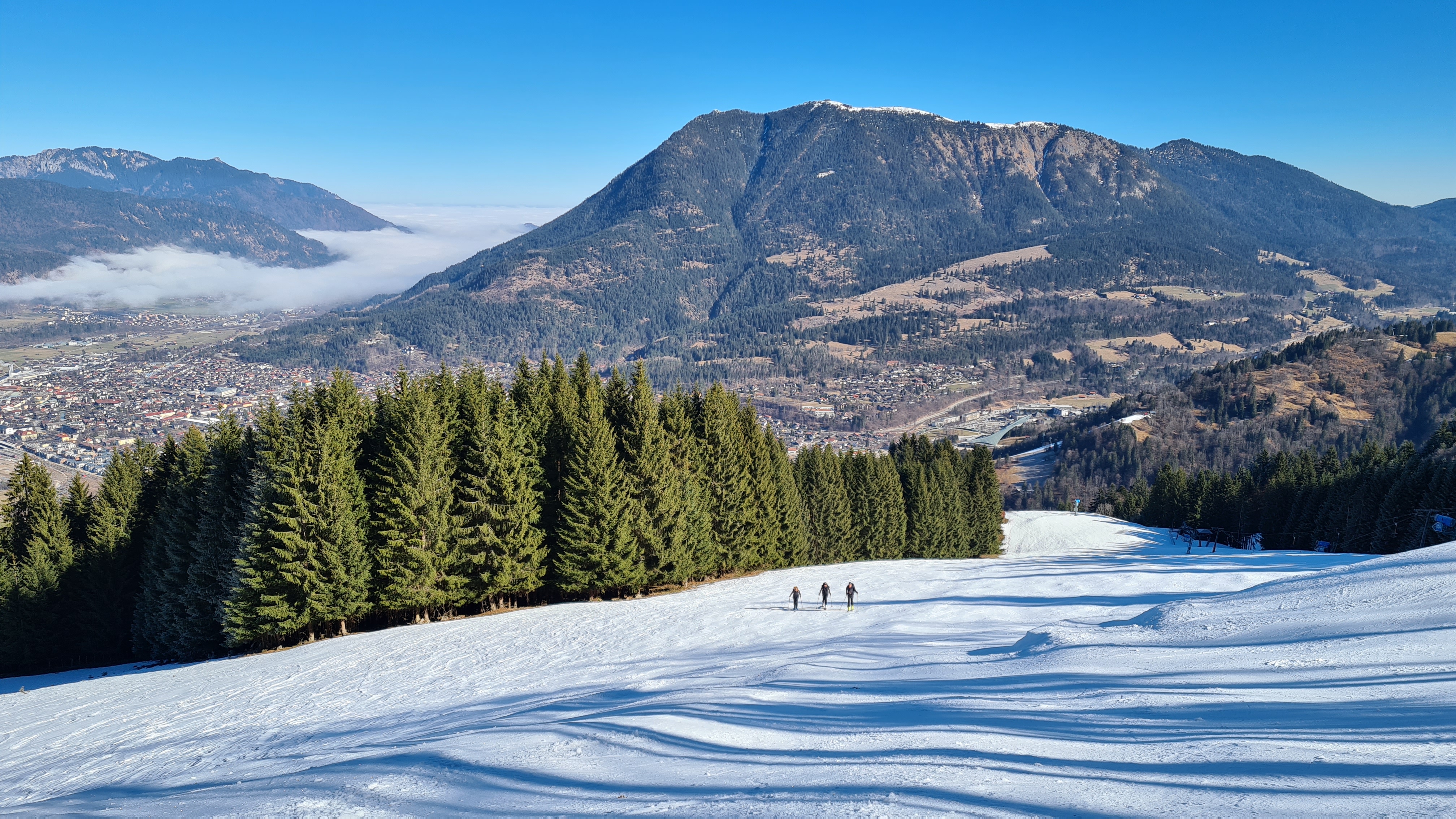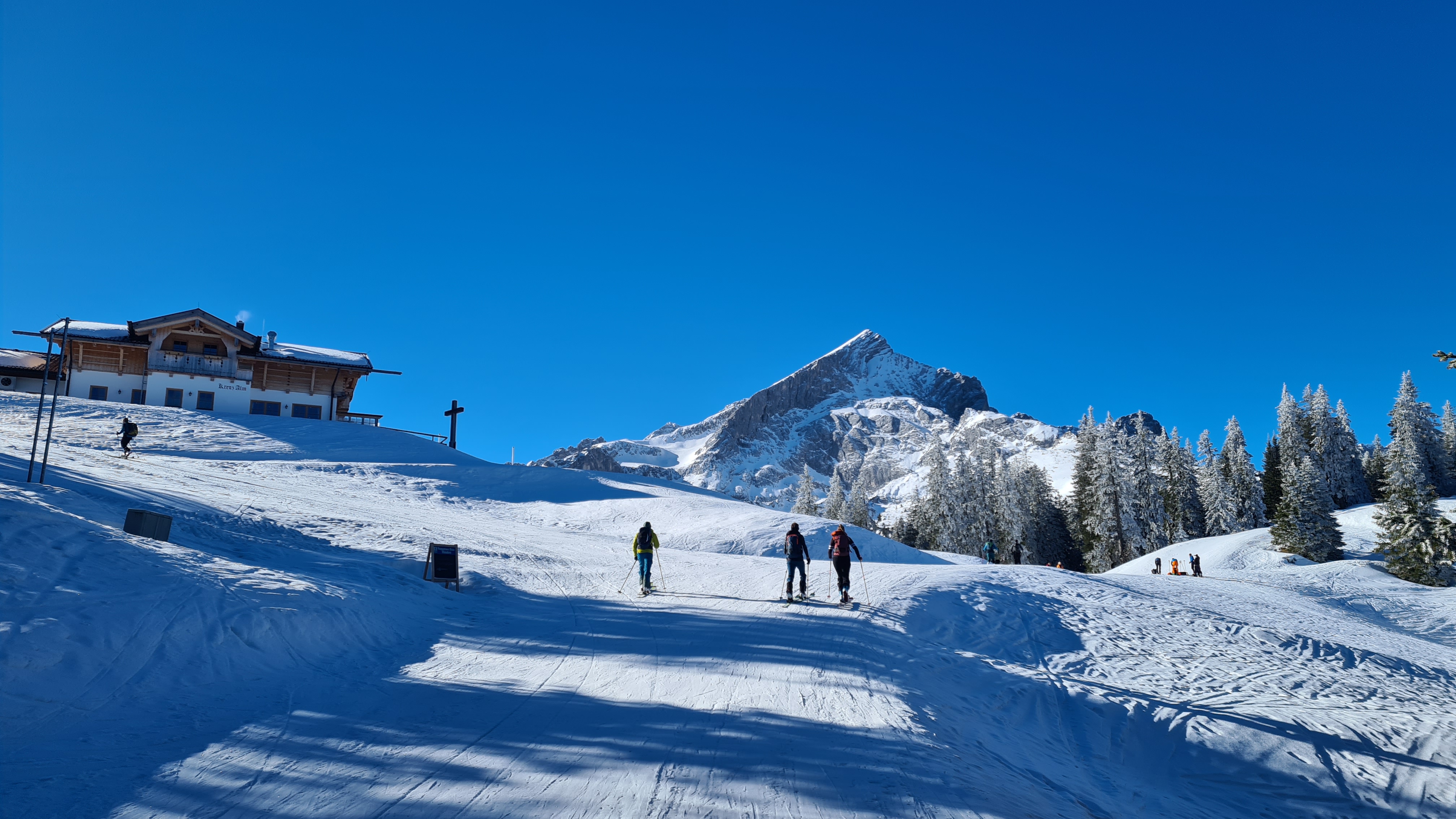 Der Blick von den verschiedenen Kreuzdingsen (alm/-joch/-eck) auf die Alpspitze und alles drumherum bei der gleißenden Sonne und dem zwar spärlichen, aber doch sichtbaren Neuschnee ist schon echt genial.