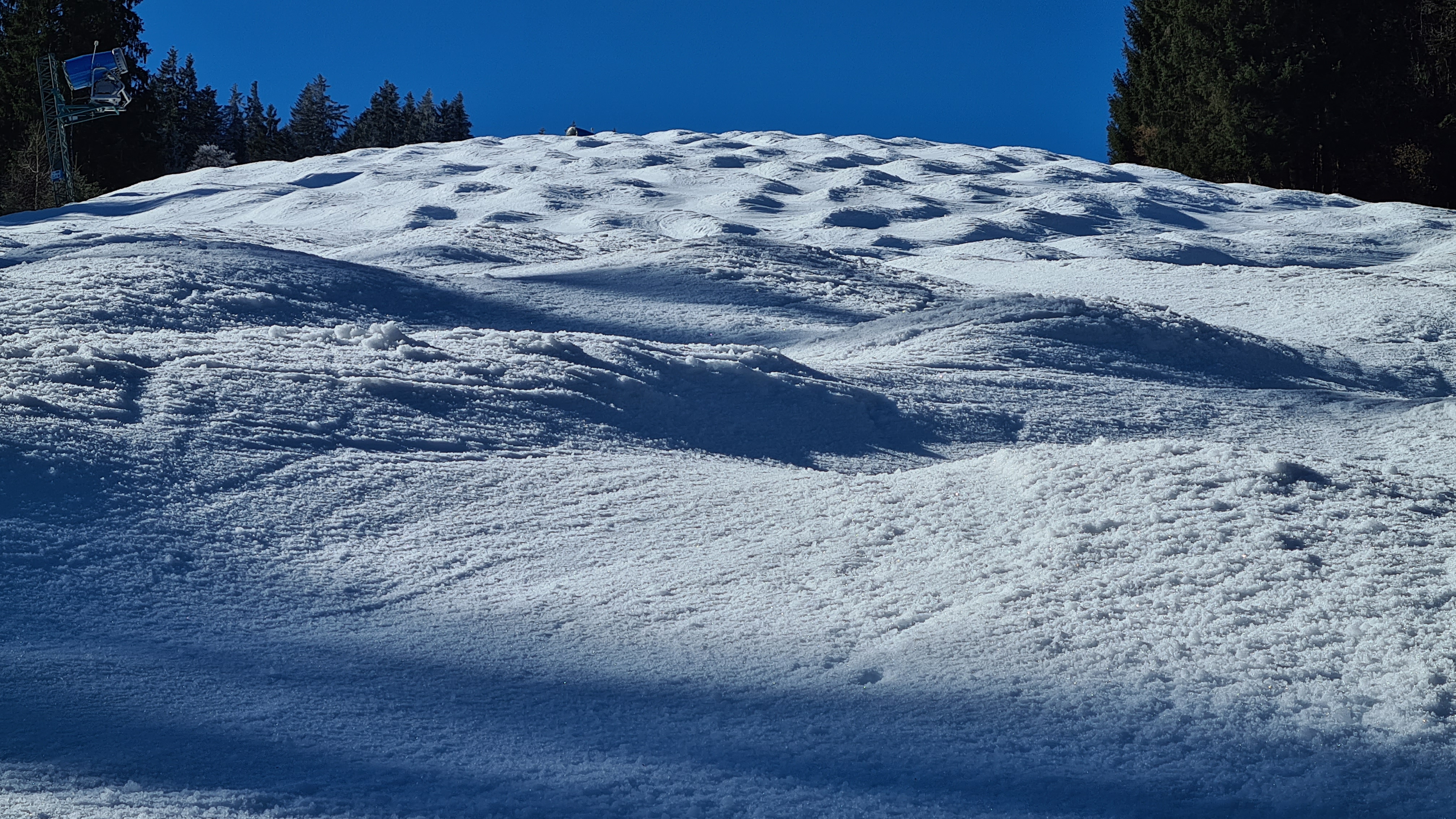 Ist sicher noch ein Weilchen nutzbar, aber unten werden die aperen Stellen immer größer. Oben bleibt es wahrscheinlich noch länger richtig schön.
