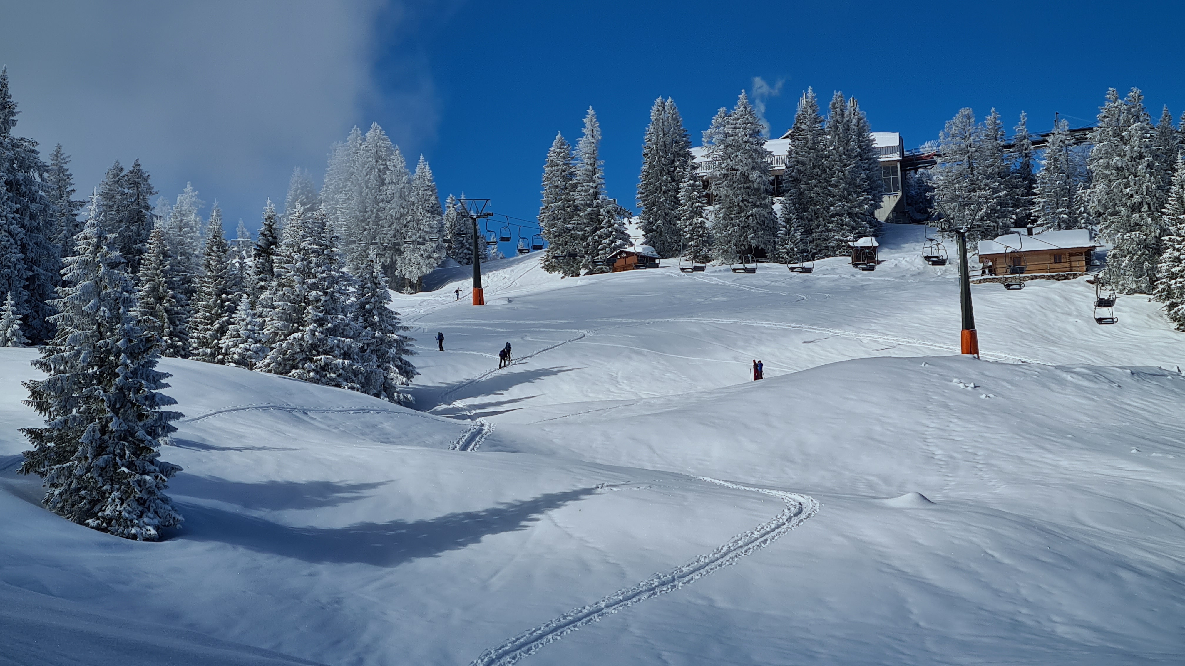 Bei der Hornabfahrt ist der erste Hang noch super zu fahren. Der flockige Neuschnee ein Genuss, der vereiste Untergrund ist aber immer wieder zu spüren. Das zweite, steile Hang ist buckelig und der frische Schnee staubt eigentlich nur auf dem vereisten Buckeln. Geht aber gut zum Abfahren (Für's Aufsteigen ungeeignet, da sind einige arg gerutscht). Das Stück ab Abzweig Tonihütte (ca. 980 m) hat viele apere Stellen und man muss sehr gut aufpassen, nicht über Gras/Erde/Steine zu fahren. Mit etwas Vorsicht aber möglich.