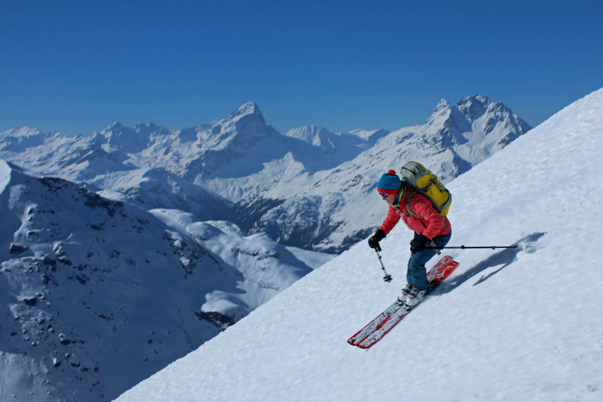 Ich habe eine genau so beeindruckende wie vollkommen unbekannte Ski-Durchquerung der Albula Alpen ausgetüftelt, bei der man sich an drei Tagen auf 40 Kiometer und 3500 Höhenmeter in grandioser Berglandschaft freuen darf. Die Durchquerung ist ideal mit Bus und Bahn zu erreichen und bietet mit der Ela Hütte eine wunderschöne Selbstversorgerhütte für den ersten Abend. Zum zweiten Stützpunkt, der Jennatsch Hütte muss man sein Essen dann nicht selber hochtragen. Und das ist auch gut so. Denn die Mitteletappe ist ziemlich lang. Krönender Abschluss ist am letzten Tag die Überschreitung des Piz Surgonda und eine endlose Abfahrt (nicht runter zum Julierpass - was die meisten machen) sondern nach Westen zur Bushaltestelle Marmorera.