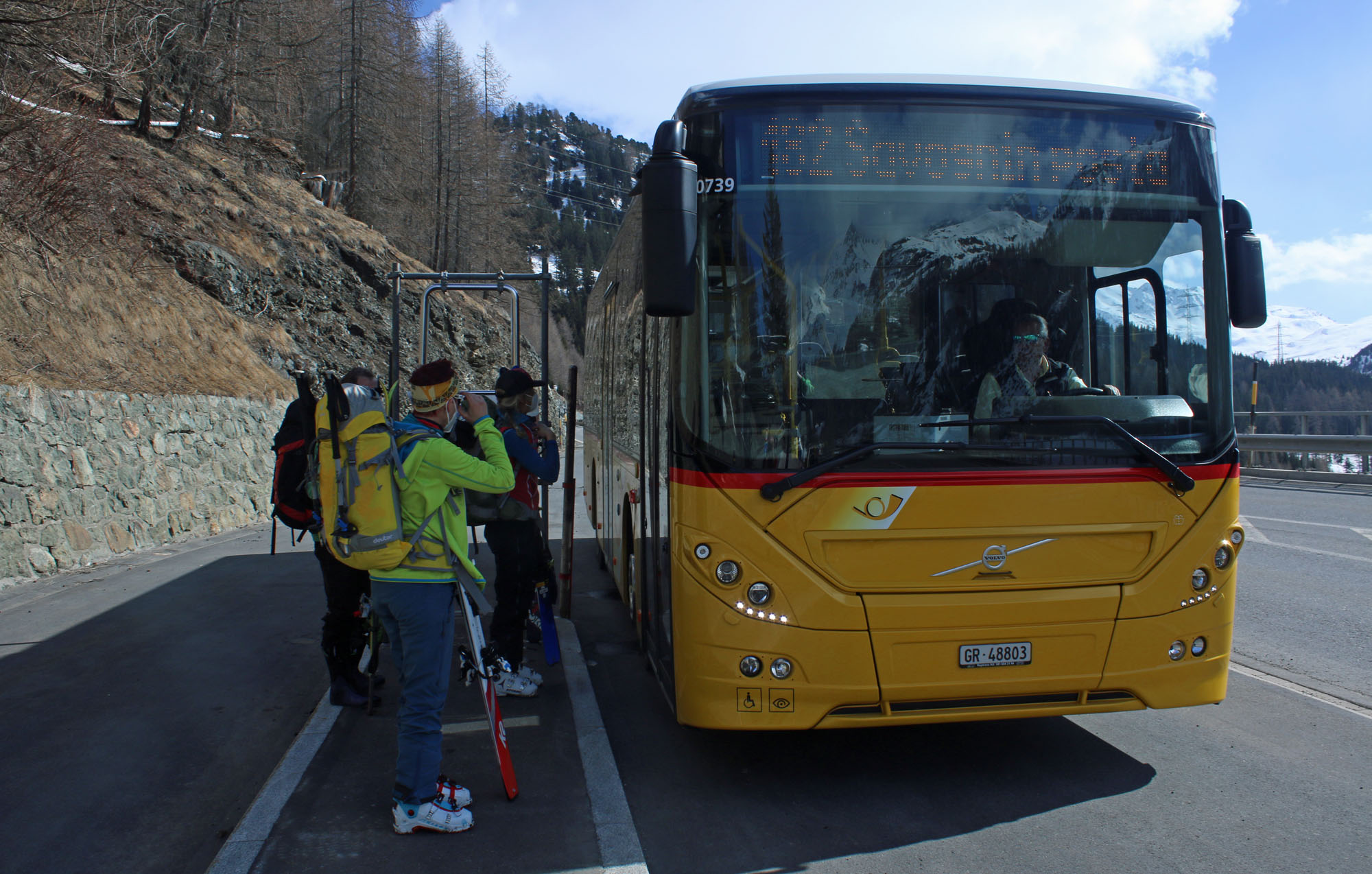 Tourenverhältnisse: Insgesamt genug Schnee im Gebiet. Nur beim Aufstieg von Filisur mussten wir die erste halbe Stunde Ski tragen. Die Altschneedecke ist sehr hart und hat eine dünne Neuschneeauflage.