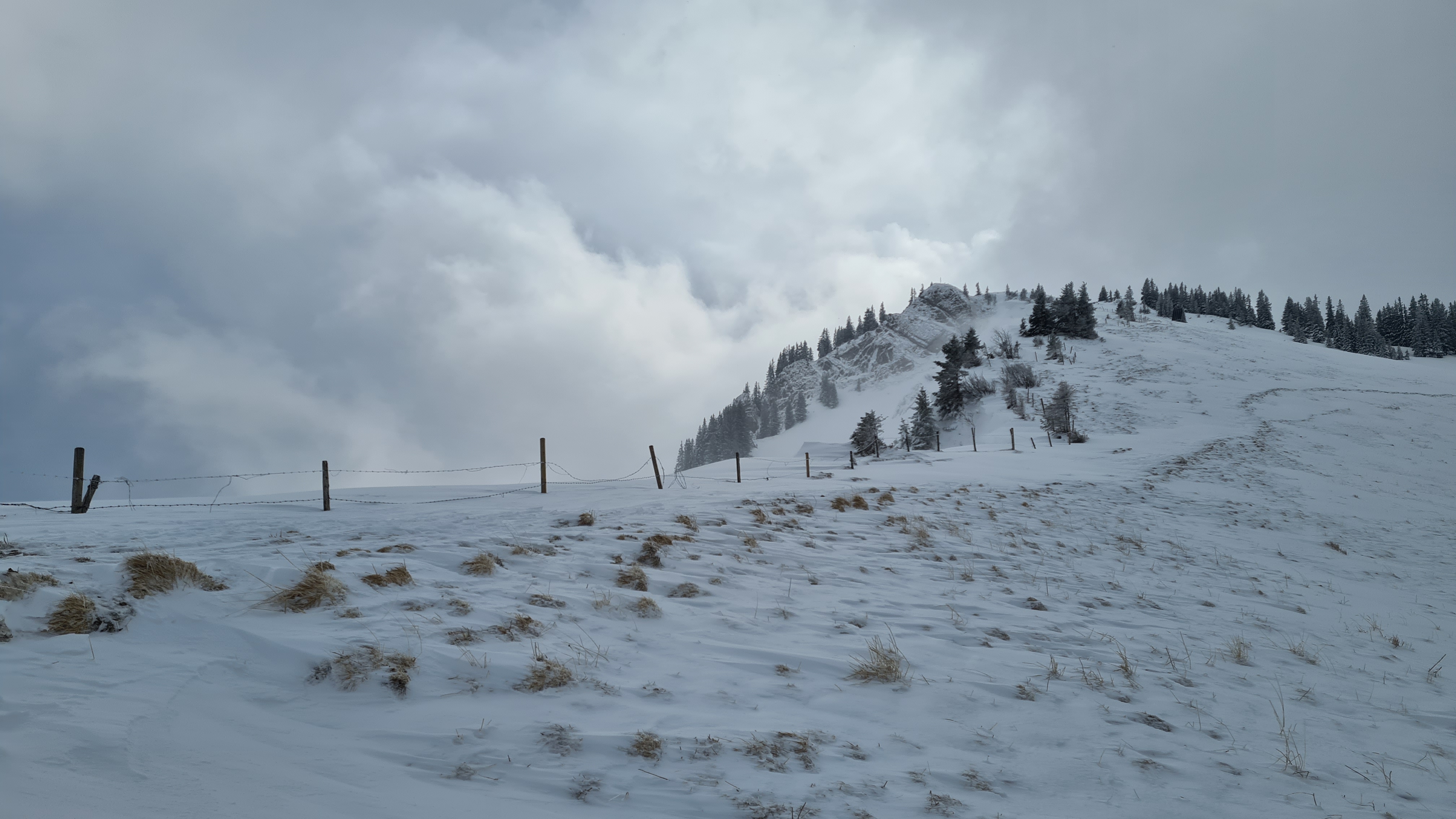 Da das Wetter aufzureißen schien, bin ich dann noch hoch Richtung Taubenstein. Oben jedoch wieder sehr starker Wind und schlechte Sicht, daher heute ohne Gipfelkreuz, nur bis zur Bergstation und dann durch schönen Pulver wieder runter.