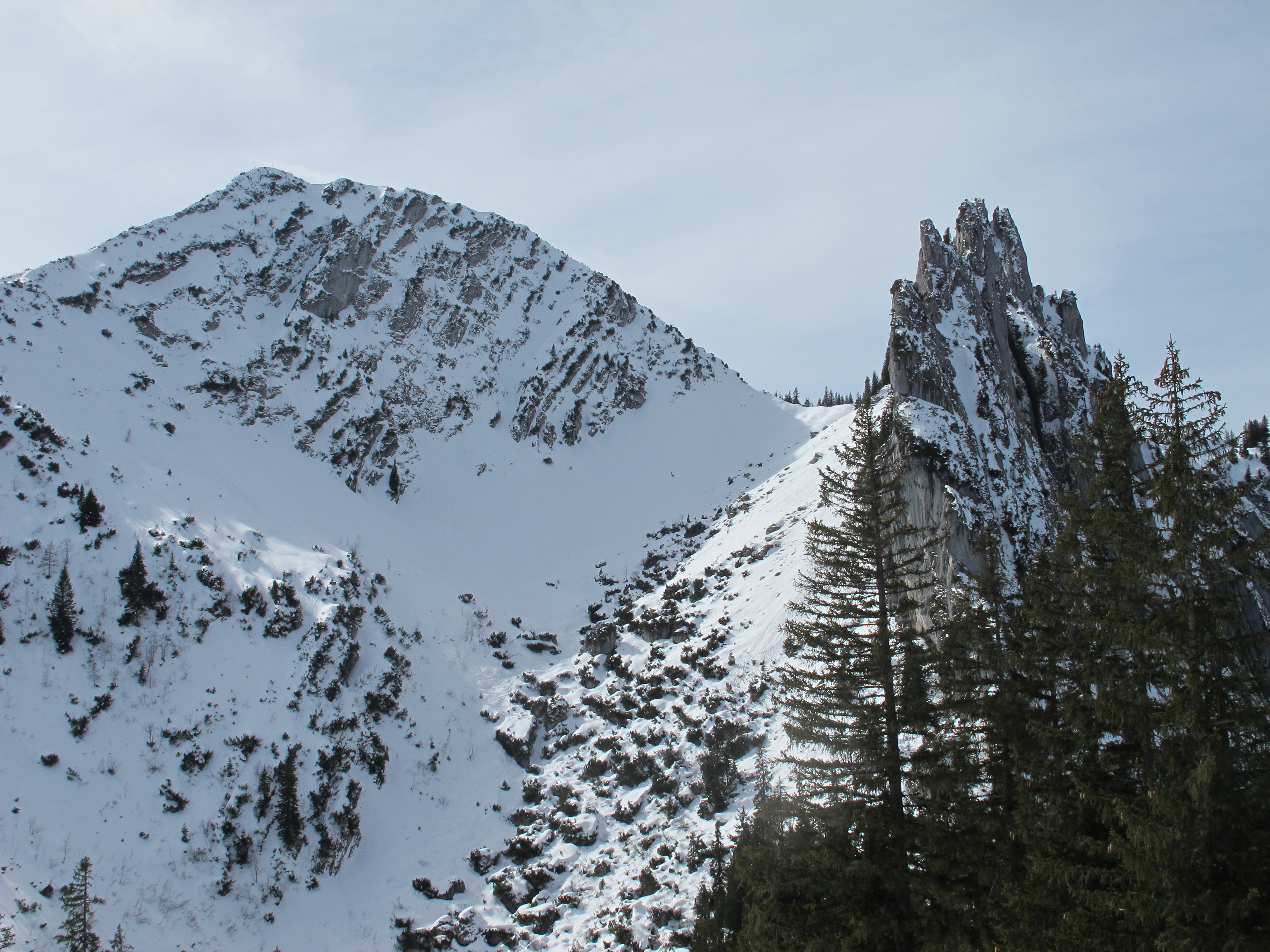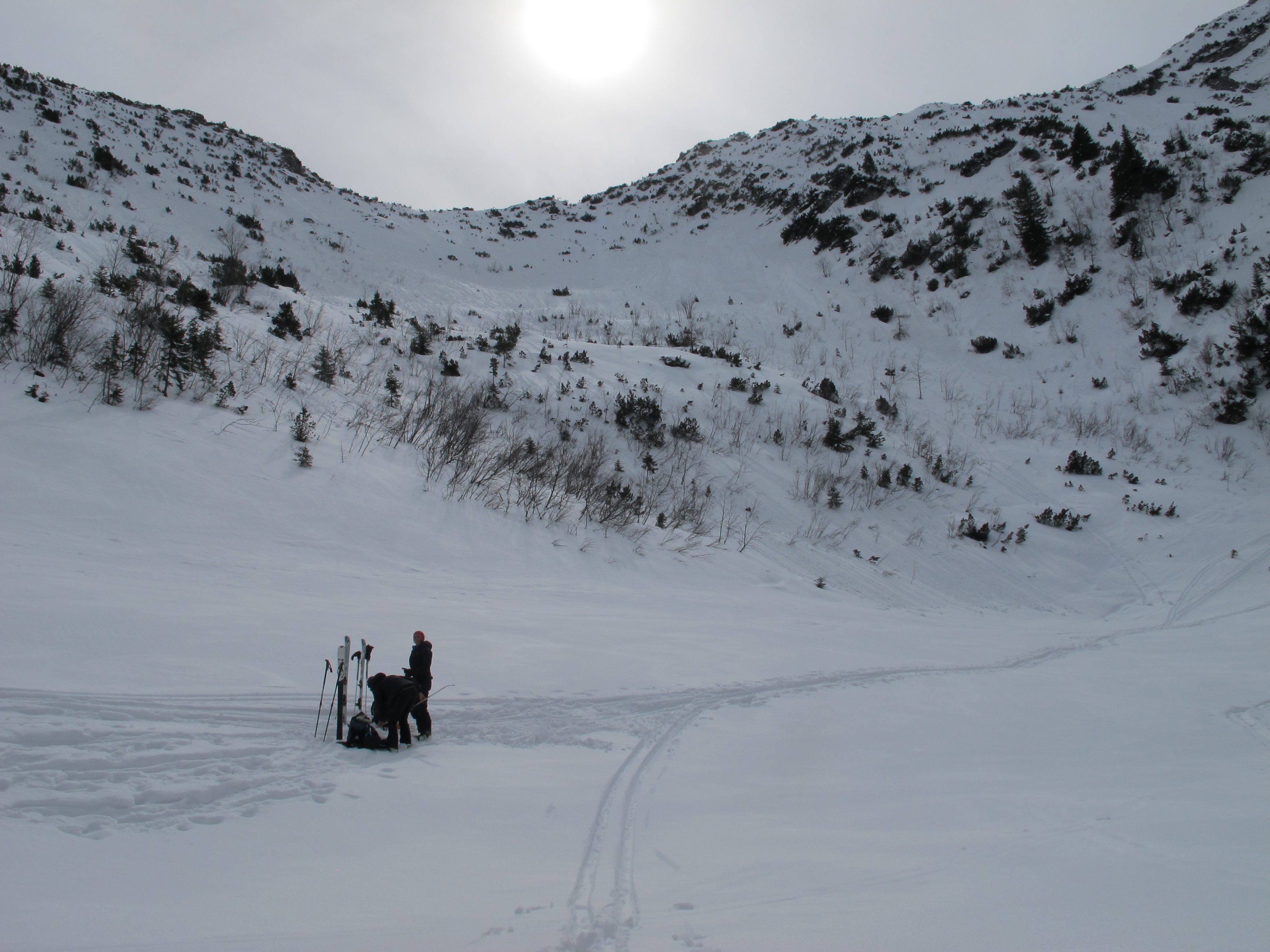 Tourenverhältnisse: passabel bei angepasster Fahrweise, der Pulverschnee vom Vortag war schon sehr schwer.