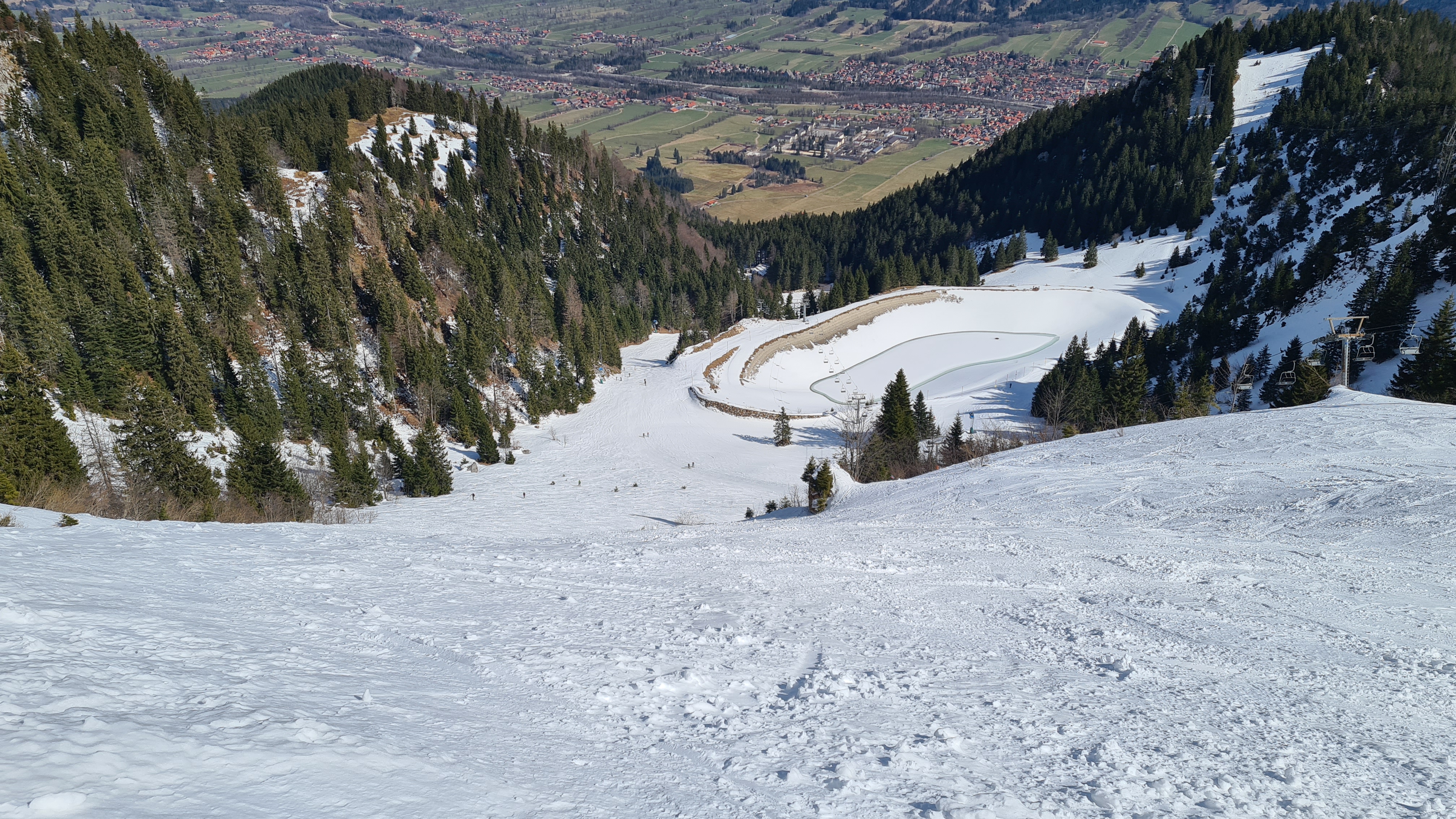 Noch gute Schneeunterlage von unten bis oben. Hart, aber kein Eis, natürlich alles eingefahren und die Buckel zum Teil abgefahren. Keine Gefahr von Steinkontakt bei der Abfahrt.